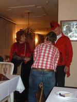 Die erste positive Überraschung erleben wir schon am Morgen beim Frühstück. Selten haben wir so eine Auswahl und Vielfältigkeit erlebt, ein Frühstück vom Feinsten. Wichtigstes Thema am Frühstückstisch war das Wetter... Was würde uns auf dem Brocken erwarten?! Wir sind also gemeinsam kurz nach 9 Uhr zum Bahnhof der Harzer Schmalspurbahn in Wernigerode gelaufen und waren immer POSITIV gestimmt. Fast pünktlich startete der Zug, standesgemäß mit einer Dampflokomotive. Die Wolken hingen tief und bereits nach wenigen Minuten einer an sich wunderschönen Fahrt verloren wir etwas den Optimismus auf klare Sicht auf dem 1142 Meter hohen Gipfel. Verschiedene Haltestellen und Pausen - wegen der Flüssigkeitsaufnahme für Maschine und Mensch - später, verhärtete sich dann die Wetterfront. Kaum Sicht, ein nasskaltes Wetter kurz über 0 Grad und leichter Nieselregen... Das Einzige was dagegen hilft, ist eine Verkostung! Und unserer Fahrtroute entsprechend hatten die Reisebegleiter einen Schierker Feuerstein parat, der die Laune im extra für uns reservierten Abteil auch gleich ein wenig hob. Auf dem Brocken hatten wir 1 Stunde Aufenthalt, die dem Kampf gegen Wind und Sprühregen gewidmet waren. Nur einige wenige Mutige kämpften sich zur Höhenmarlierung des Brockens durch, der Souvenirladen war auf alle Fälle die einladendere Variante. Nachdem wir auch auf dem Weg bergab ein Abteil für unsere Gruppe allein hatten, wurde ein "Wernigeröder Ratstropfen" als Aufwärmer verköstigt und beim Ausstieg in Drei Anne Hohne erwartete Andreas alle Gäste mit einem leckeren Schluck Sekt für die Weiterfahrt. Ein gut geheizter Bus, der Sekt, ein paar schöne Weihnachtslieder und ein paar der zahlreichen Märchen und Sagen der Harzregion führten bei einigen zu den ersten Ermüdungserscheinungen, dabei stand noch ein weiteres Highlight auf dem Programm. Bei einem kurzen Schlenker nach Niedersachsen besuchten wir die einzigartige Stabkirche von Hahnenklee. Ungewohnt für unsere Breitengrade wurde uns bei einer Führung alles Wissenswerte über das Bauwerk vermittelt und im Anschluss an die Führung konnte man noch einer Carillon-Vorführung lauschen. Noch schnell ein Gruppenbild geschossen, bevor die Dämmerung einbricht und dann ÜBERRASCHUNGS-KAFFEETRINKEN - mit Schlehen-Glühwein und erzgebirgischem Stollen!!! Die Rückfahrt nach Wernigerode ging dann sehr zügig und wer noch Lust hatte, ging vor oder nach dem leckeren Abendessen im Hotel zu einer weiteren Runde über den Wernigeröder Weihnachtsmarkt.