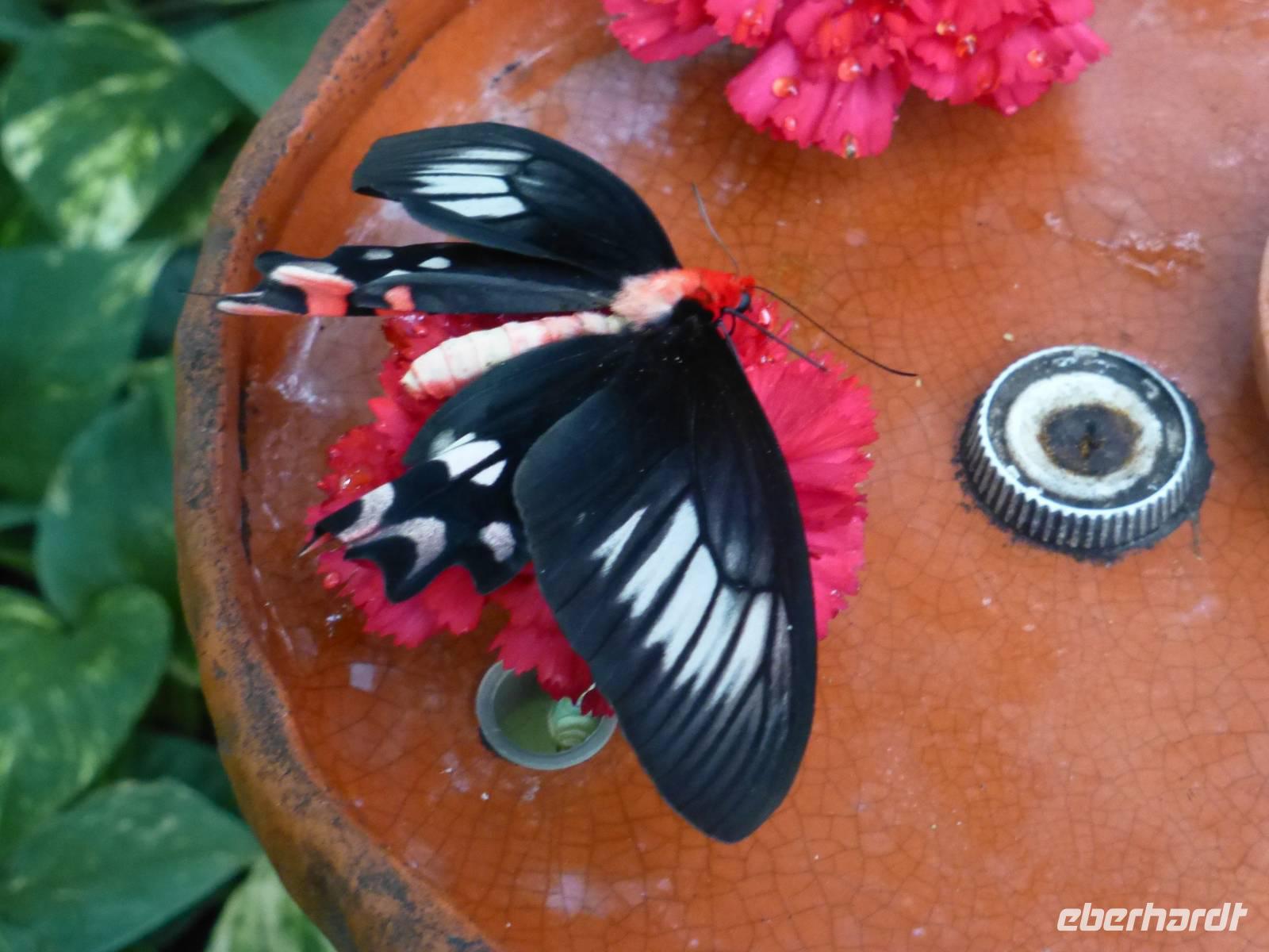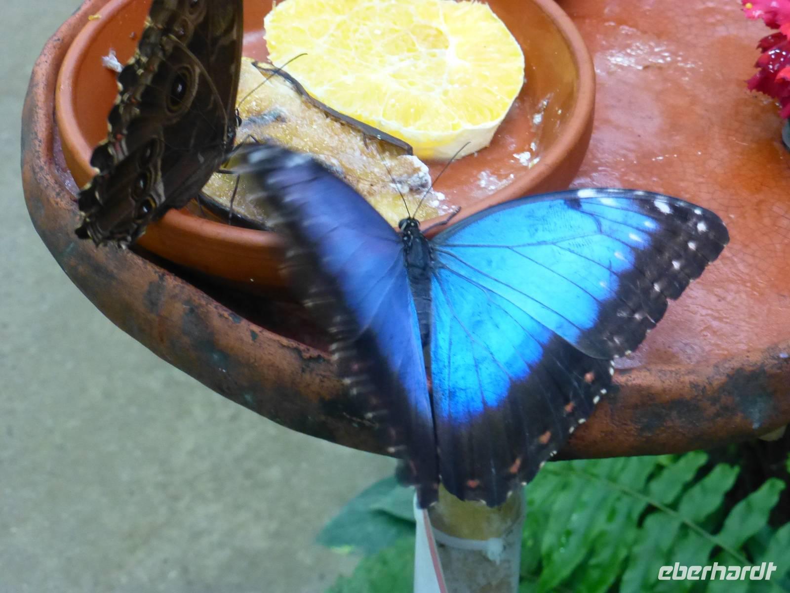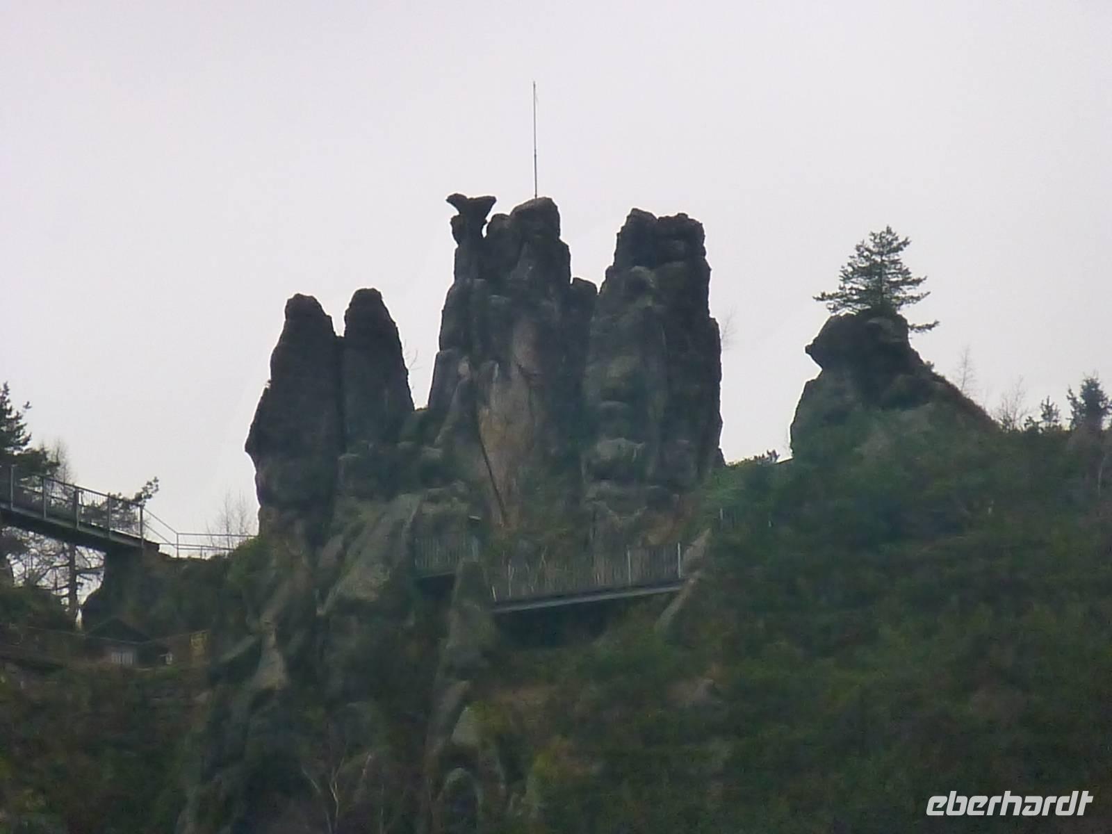 Nach einer ruhigen Nacht am Fuße des Oybins erwartete uns am Morgen... Nieselwetter. Doch zuerst ans leckere Frühstücksbuffet inklusive deftiger Spezialitäten aus der Region und den Kaffee kredenzte der Chef persönlich. So schön das Frühstück war, so schade war die Wettersituation, denn so entschied sich niemand der Gäste für unsere Aktiv-Variante, sondern alle wollten Andreas und mich begleiten auf einem kurzen Ausflug nach Jonsdorf. Uwe war sehr, sehr traurig, da er sich Bewegung am Morgen gewünscht hatte, aber so war es nun einmal. Also starteten wir alle gemeinsam nach Jonsdorf: ruhig und gemütlich. Den ersten verregneten Stopp legten wir am Kurpark ein, dann ging es zum Aussichtspunkt Gondelfahrt mit freiem Blick auf die Nonnenfelsen. Schließlich hatten wir uns dann für einen Besuch im Schmetterlingshaus zu Jonsdorf entschieden und wurden sehr positiv überrascht. Der Leiter des Hauses (ent)führte uns zu allerlei bunten Schmetterlingen und vermittelte uns wichtiges Grundwissen. Doch nicht nur die Flügeltiere, sondern auch Fische, Insekten und Reptilien gab es zu bestaunen. Nach diesem ausgefüllten Vormittag begann nun erst der eigentliche Teil des Programms. Dazu brachte uns Andreas zum Bahnhof von Oybin, wo wir in den vornehmen Mitropa-Speisewaggon der Zittauer Schmalspurbahn einstiegen und während der folgenden 40 Minuten die Lausitzer Landschaft auf dem Weg nach Zittau an uns vorbeiziehen ließen. Der Waggon war übermäßig gut geheizt und für die Wärme von innen sorgten die Eberhardt-Wichtel mit leckerem Wackerbarth-Sekt, so dass wir die eine oder andere Station verpassten. In Zittau angekommen wurde es dann hektisch, denn zwischen der vorbestellten Bordversorgung und dem Besuch der Fastentücher lagen nur einige Minuten. Trotzdem waren wir pünktlich vor Ort, um den kulturellen Teil des Tages zu absolvieren. Eine ausführliche, interessante Führung und Erklärung am Großen Fastentuch und eine etwas schwerer zu verstehende Führung am Kleinen Fastentuch und Stadtmodell informierten uns über Entstehung, Sinn und Bedeutung dieser äußerst seltenen Kulturgüter. Langsam begann es bereits zu dämmern und schon waren die Eberhardt-Wichtel wieder aktiv und schenkten Glühwein aus und es gab den leckeren erzgebirgischen Stollen, den uns Doreen immer aus der Heimat mitbringt. So verging die Zeit schnell bis wir in der Manufaktur der Herrnhuter Sterne ankamen und Uwe verkürzte uns die Zeit mit allerlei Wissenswertem. In der Manufaktur konnten wir in einer kleinen Ausstellung und bei einem Filmchen die Geschichte, Ideen und Entwicklung des Unternehmens kennenlernen. Anschließend blieb Zeit, den Produzenten über die Schulter zu schauen. Vor allem ruhige Hände sind bei der Herstellung der weihnachtlichen Dekoration gefragt. Nachdem der Kaufrausch gestillt war, war noch lange nicht Schluss für heute und nun ging es auf zu Uwes persönlichem Highlight - der Besuch in der Privatbrauerei von Eibau! Nachdem wir zuerst vor verschlossener Tür standen, durften wir dann doch auf's Gelände. Es war bereits vollkommen dunkel und da die Brauerei am Wochenende stillsteht, konnten wir unsere Führung mit Frau Schulz exklusiv für unsere Gruppe genießen. Eine Brauerei zum Anfassen, mit sehr interessanten Hintergrundinformationen, Maschinen hautnah und am Ende der Höhepunkt mit der Verkostung einer der 14 in Eibau produzierten Biere rundeten so den ziemlich alkoholträchtigen Tag ab. Anschließend ging es zurück ins Hotel, wo uns wieder ein leckeres 3-Gänge-Menü erwartete. Doch soviel Zeit hatten wir nicht, schließlich war heute der Tag des Oybiner Weihnachtsmarktes direkt in der Straße vor unserem Hotel. Leider kamen wir nach einem Besucheransturm tagsüber doch etwas zu spät und so waren die Händler schon verschwunden. Eine Bude blieb übrig, dafür gab es da einen leckeren Glühwein und ein paar Weihnachtslieder konnten wir auch noch singen. So endete dieser anstrengende Tag statt auf dem Weihnachtsmarkt an der Hotelbar...