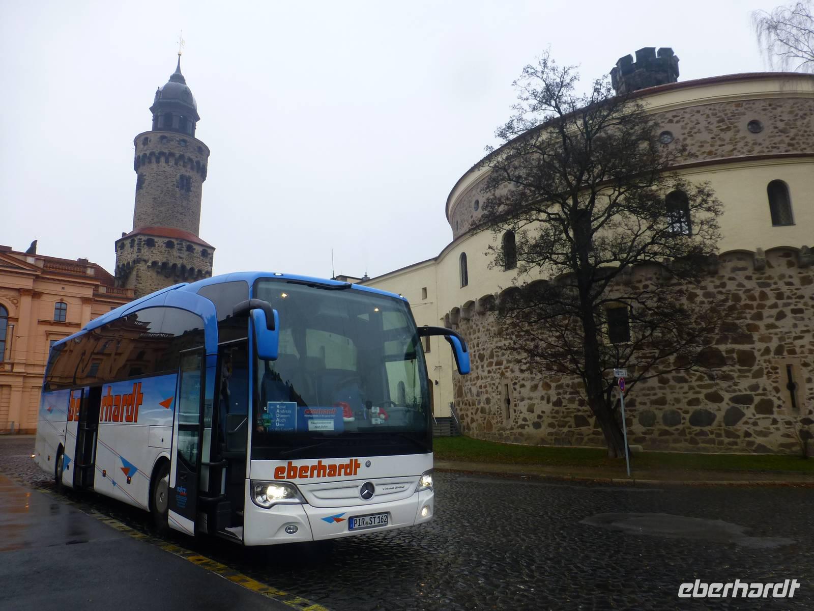 Voller Vorfreude fuhren wir am Morgen vom Betriebshof in Kesselsdorf in Richtung Bautzen, wo uns unser erster Programmpunkt erwartete. In Bautzen angekommen, begrüßte uns die Türmerin der Stadt herzlich. Bei einem interessanten Stadtrundgang erzählte sie uns einige Anekdoten der tausendjährigen Stadt mit ihren kleinen, verwinkelten Gassen. Der Höhepunkt war die Besteigung des Matthiasturm, denn dieser bleibt sonst dem Tagestouristen der Stadt verwehrt, nur zum Tag des offenen Denkmals ist solch eine Besteigung möglich. Aber für unsere treuen Kunden haben wir es möglich gemacht! Nach 135 Treppenstufen waren wir oben angekommen und hatten einen fantastischen Blick über die Stadt. Unsere Türmerin erklärte uns die schönen Bautz´ner Türme und andere bekannte Gebäude. Nach einem Mittagsbummel auf dem Weihnachtsmarkt, machten wir uns schließlich auf die Weiterreise nach Wilthen. Dort wollten wir sehen, wie der bekannte Wilthener Kräuterlikör hergestellt wird. Die Wilthener Weinbrennerei ist eine der ältesten Brennereien in Deutschland und zählt heute zu den modernsten Spirituosenbetrieben. Wir wurden in zwei Gruppen durch die Hallen geführt und bekamen erklärt welche Stationen die hier hergestellten Spirituosen durchlaufen müssen. Als Abschluss durfte natürlich eine Verkostung der edlen Tropfen nicht fehlen! Wir stießen an auf die kommenden gemeinsamen Adventstage!