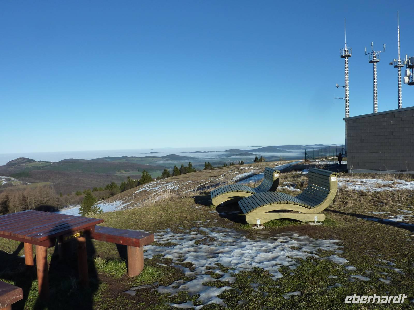 Heute ging es zur Rundfahrt durch die Rhön. Frau Bachmann, die örtliche Reiseführerin, begrüßte uns im neblichen Fulda. Sie versprach uns bei der außergewöhnlichen Wetterlage beste Aussichten auf der Wasserkuppe. So war es auch, je höher wir fuhren, um so klarer wurde die Sicht und der Nebel blieb im Tal. Auf der Wasserkuppe bekamen wir eine Einführung im Informationszentrum des Biosphärenreservat über dessen Zweck und Aufgaben und erfuhren zur Namensgebung des Landes der offenen Ferne. Bei einem Spaziergang bestaunten wir die wirklich tolle Fernsicht (außergewöhnlich, bis zum Brocken) und begriffen den „Berg der Segelflieger". Nun fuhren wir nur ein kleines Stück zu Krenzers Rhön, einer Schaukelterei. Hier genossen wir das Mittagessen, zur Auswahl standen auch eine Hirtenpfanne mit Rhönschaf und Rhönforellenfilet. Dann schauten wir bei einer Führung hinter die Kulissen und verkosteten den Apfelwein und drei Sorten Apfelsherry. Eine Flasche Apfelsherry bekamen wir als Geschenk und im Spezialitäten-Shop wurde kräftig eingekauft.