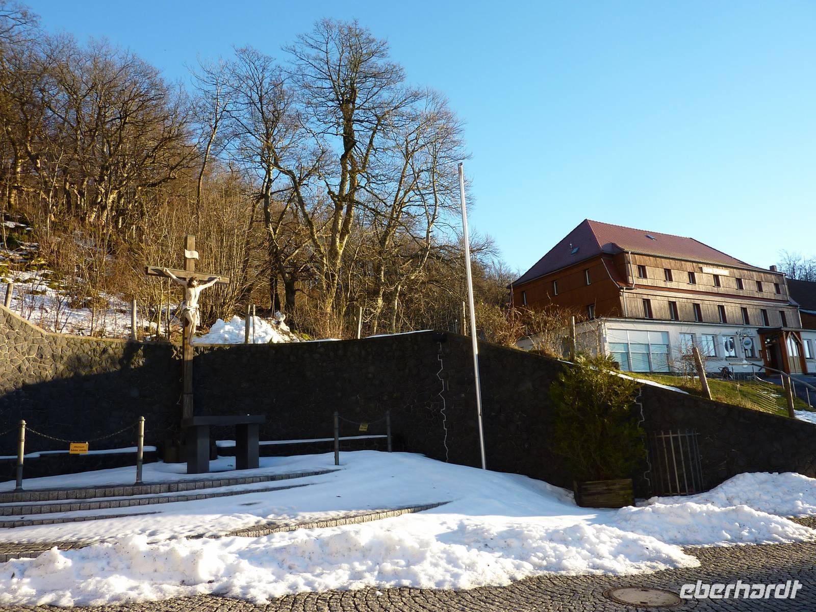 Aufgrund der Wetterlage fuhren wir nun nach Bayern auf den Kreuzberg. Hier hatten wir die Möglichkeit, uns über das Kloster zu informieren oder auch einen Kaffee zu geniessen. Auf der Rückfahrt ins Hotel fuhren wir durch das beleuchtete Zentrum von Fulda. Im Hotel wurde für uns ein Rhönbufett zum Abendessen vorbereitet und ein Musikante überraschte uns mit Volksliedern zum Mitsingen, was auch trotz des langen Tages eifrig angenommen wurde.