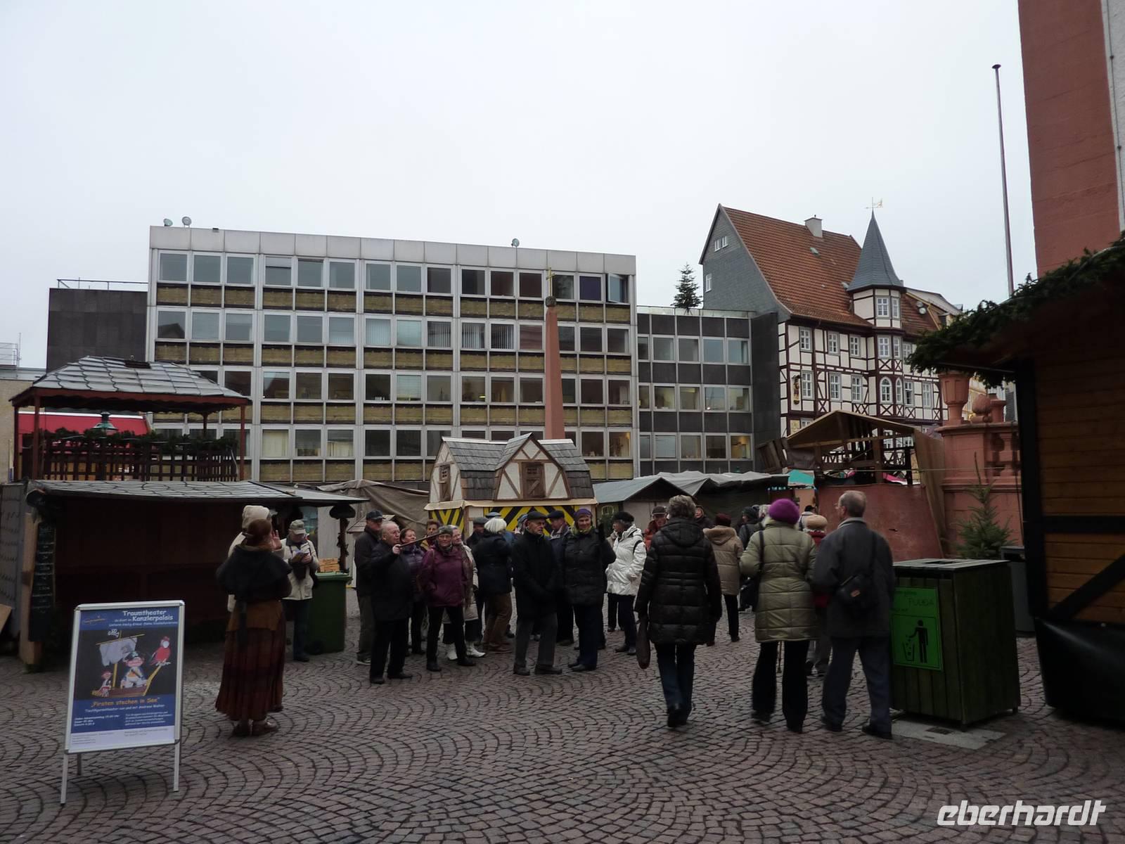 Zum "Verdauungsspaziergang" mit zwei nordhessischen Trachtenfrauen, aufgeteilt in Gruppen, erfuhren wir einiges Wissenswertes über die 750-jährige Geschichte und die Sehenswürdigkeiten Rotenburgs wie Hexenturm, das Rathaus und dessen interessanten Neubau. Wir entdeckten viele Bronzefiguren und zu einigen hörten wir kleine Geschichten. Auf dem Weihnachtsmarkt fanden wir genügend Zeit für einen Glühwein und konnten noch die Krippenausstellung in der Jakobikirche bestaunen. Nun fuhren wir weiter nach Fulda zu unserer Unterkunft, dem Hotel „Lenz", wo wir auch gemütlich zum Abendessen den Tag ausklingen ließen.