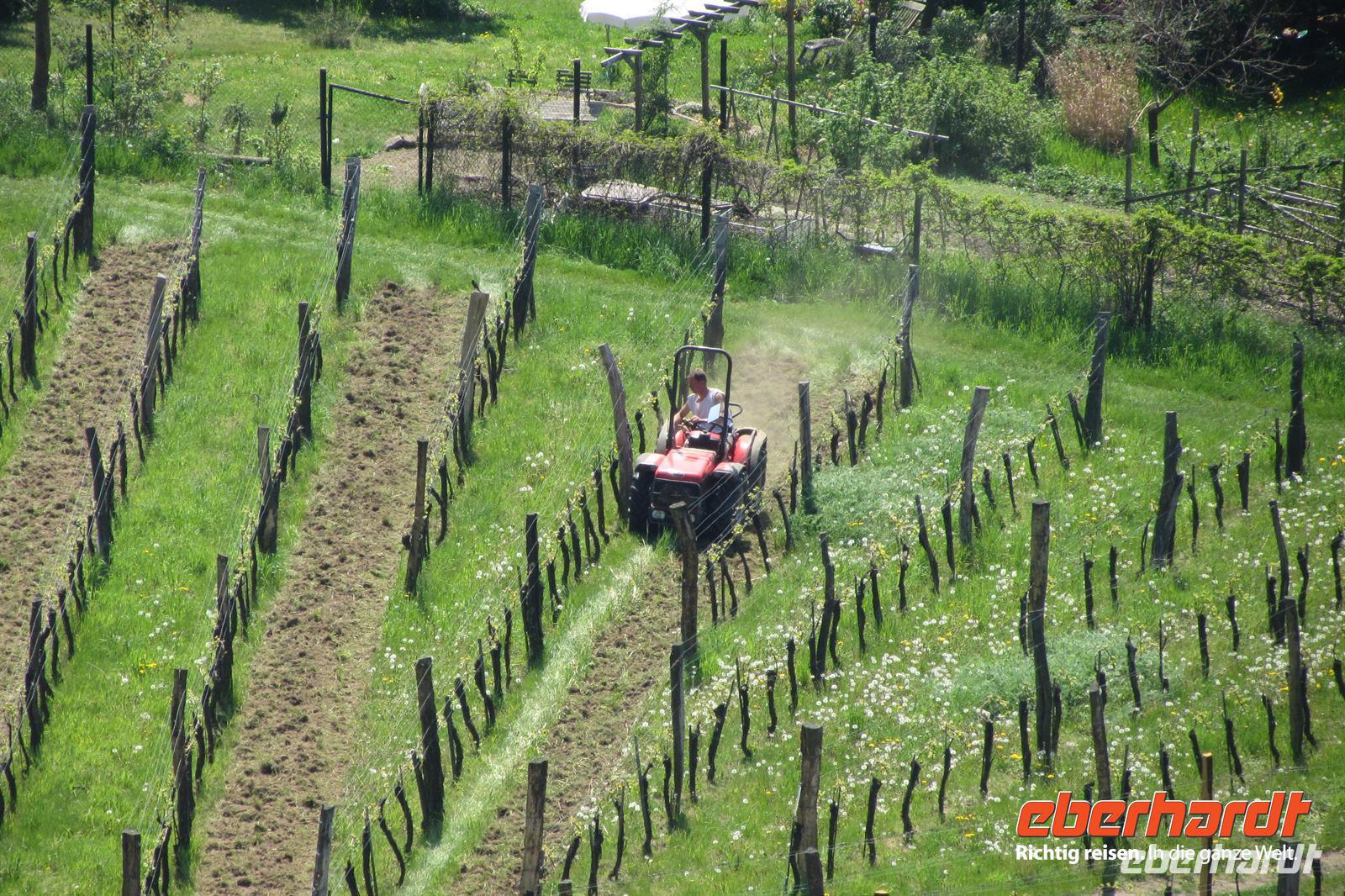 Weiter ging es nun Richtung Weinberg. Herr Winn erzählte uns in anregend-heiterer Form die Geschichte seines Weinberges, viel über die Arbeit eines Weinbergbesitzer und erklärte uns den Weg von der Traube bis zum edlen Tropfen. Zwischendurch gab es immer mal wieder ein gutes Schlückchen zum Probieren.