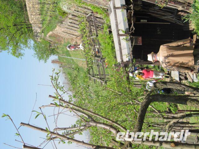 Bei herrlichem Wetter machten sich ca. 20 wanderlustige Eberhardt-Gäste auf, um die Region Pillnitz und speziell alles zum Thema Weinbau zu erfahren. Unser Wanderführer ist heute der Winzer Winn, der uns von Graupa bis in seinen Weinberg nach Pillnitz führt. Der Startpunkt ist in Graupa und unsere Wanderung steht unter dem Motto "Von Weber zu Wagner", ganz im Sinne der Musik. Der Wettergott meint es sehr gut mit uns, es ist sehr heiß und gerade gegen Ende der Wanderung macht uns die Sonne zu schaffen, weil der Weinberg wenig Schatten spendet. Nachdem sich jeder "Wein-Wanderfreund" ein eigenes Verkostungs-Gläschen um den Hals gehängt hatte, gab es auch gleich das erste Schlückchen!