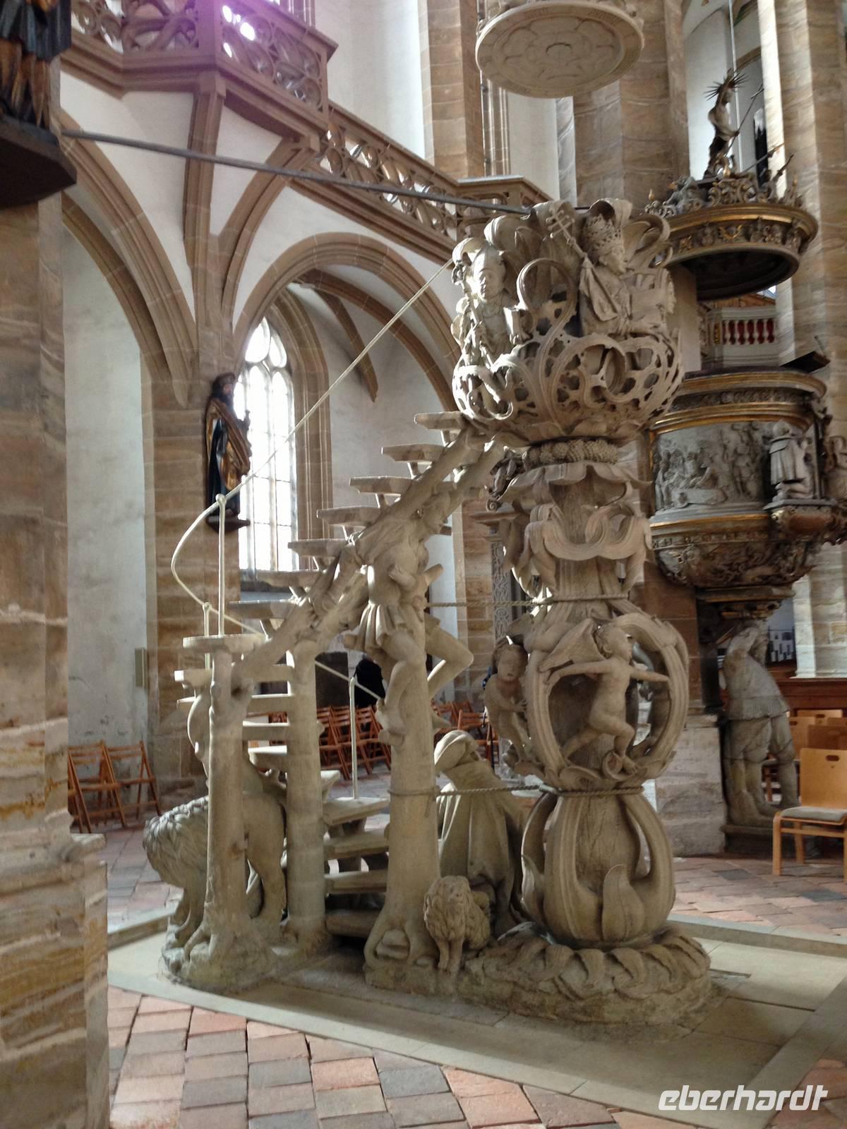 Heute erwartet uns endlich herrliches Wetter mit Sonnenschein und moderaten Temperaturen. In der Silberstadt Freiberg machen wir einen keinen Spaziergang durch den historischen Stadtkern zum Schloss Freudenstein, wo seit einigen Jahren die weltgrößte Mineraliensammlung beherbergt ist. Im Dom St. Marien kommen wir in den Genuss eines Orgelvorspiels auf der berühmten Silbermannorgel. Anschließend gibt es interessante Ausführungen zu Geschichte und Ausstattung des Domes. Die außergewöhnliche Tulpenkanzel aus der Spätgotik, die wie ein Blütenkelch aus dem Stein gemeißelt ist erweckt unsere Aufmerksamkeit genau wie die sehr bekannte Goldene Pforte, ein spätromanisches Sandsteinportal an der Südseite des Domes, welches das erste vollständige deutsche Statuenportal darstellt. Nun geht die Reise ins Weihnachtsland Erzgebirge, auf 650 Metern Höhe wird es endlich winterlich! Die schneebedeckte Landschaft lässt weihnachtliche Stimmung aufkommen. Im Spielzeugdorf Seiffen herrscht reger Betrieb. Wir besuchen das Spielzeugmuseum mit zahllosen Zeugnissen der längjährigen Holzkunst-Tradition. Die Kunst des Reifendrehens wird uns sehr anschaulich in einer Werkstatt erklärt, wo auch einige spezielle Techniken an der Drechselmaschine gezeigt werden. Wir bestaunen Weihnachtspyramiden in allen Größen, dann gönnen wir uns Kaffee und Apfelkuchen und fahren durch das beleuchtete Erzgebirge in Richtung Dresden. Schwibbögen und Lichtleitern stehen in allen Fenstern und sorgen für weihnachtliches Flair. Der Rückweg führt über Neuhausen, wo im Nussknackermuseum der weltgrößte Nussknacker zu bewundern ist. Heute kommen wir erschöpft und recht spät in die Fuchsbergklause und viele genießen gleich nach dem Abendessen die Ruhe auf ihren Zimmern.