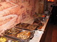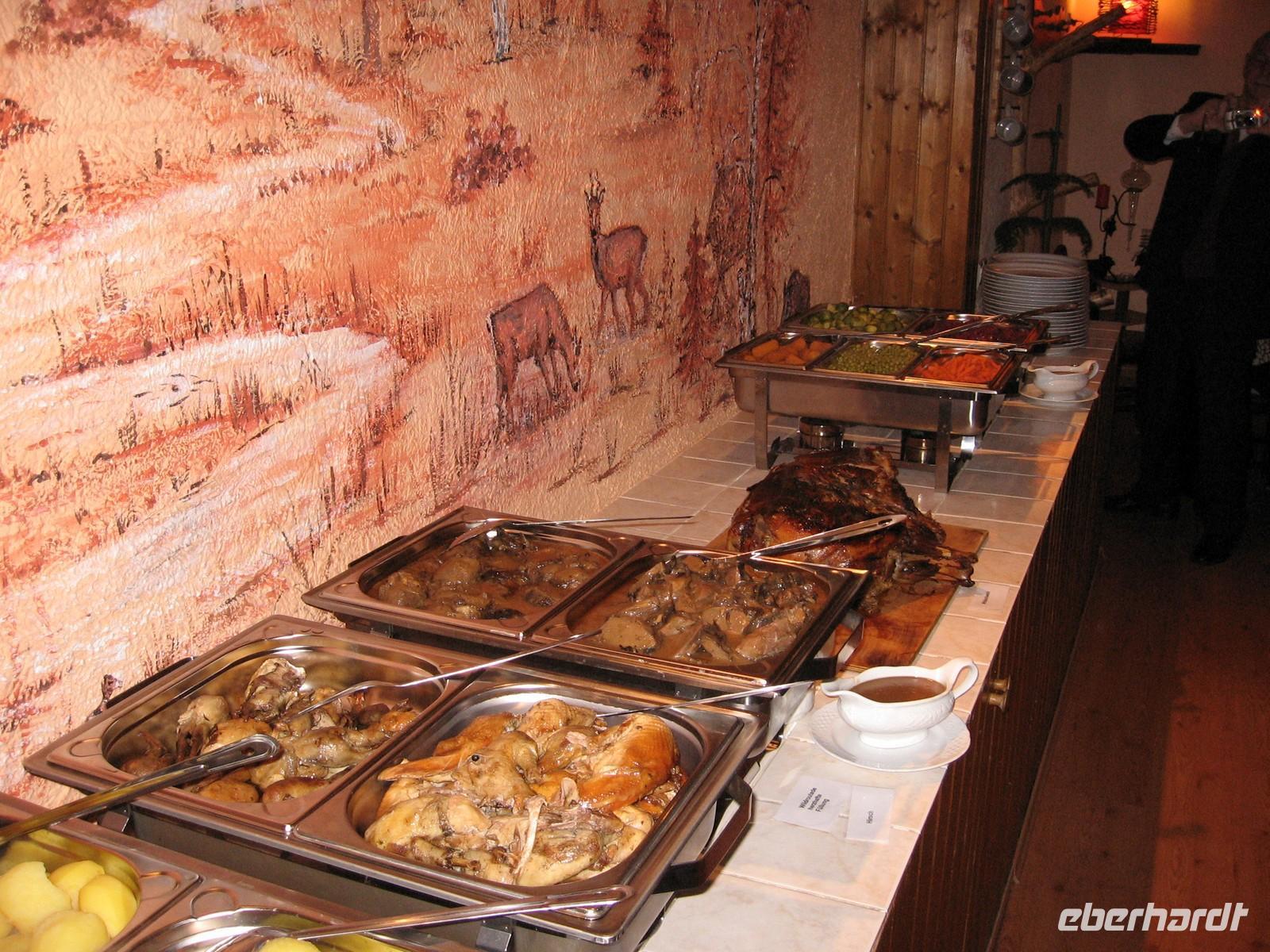 Familie Schade hat das Restaurant für den heutigen Abend geschmückt und verwöhnt uns mit einem üppigen warmen Wildbuffet. Wir alle genießen das Mahl, welches uns später noch durch eine Auswahl leckeren Eises versüßt wird. Bis Mitternacht bleibt dann Zeit zum tanzen, erzählen und lachen. Ein Kuchenrätsel und die Aufführung des Theaterstücks „Die Verhaftung der Gräfin Cosel" unter der Regie von Frau Schulze sorgten für Kurzweiligkeit. Punkt Mitternacht stoßen wir alle mit einem Glas Sekt auf das Neue Jahr an und vor allem der Wunsch nach Gesundheit macht die Runde. So gegen ein Uhr am Morgen zieht es dann die meisten von uns Richtung Bett.