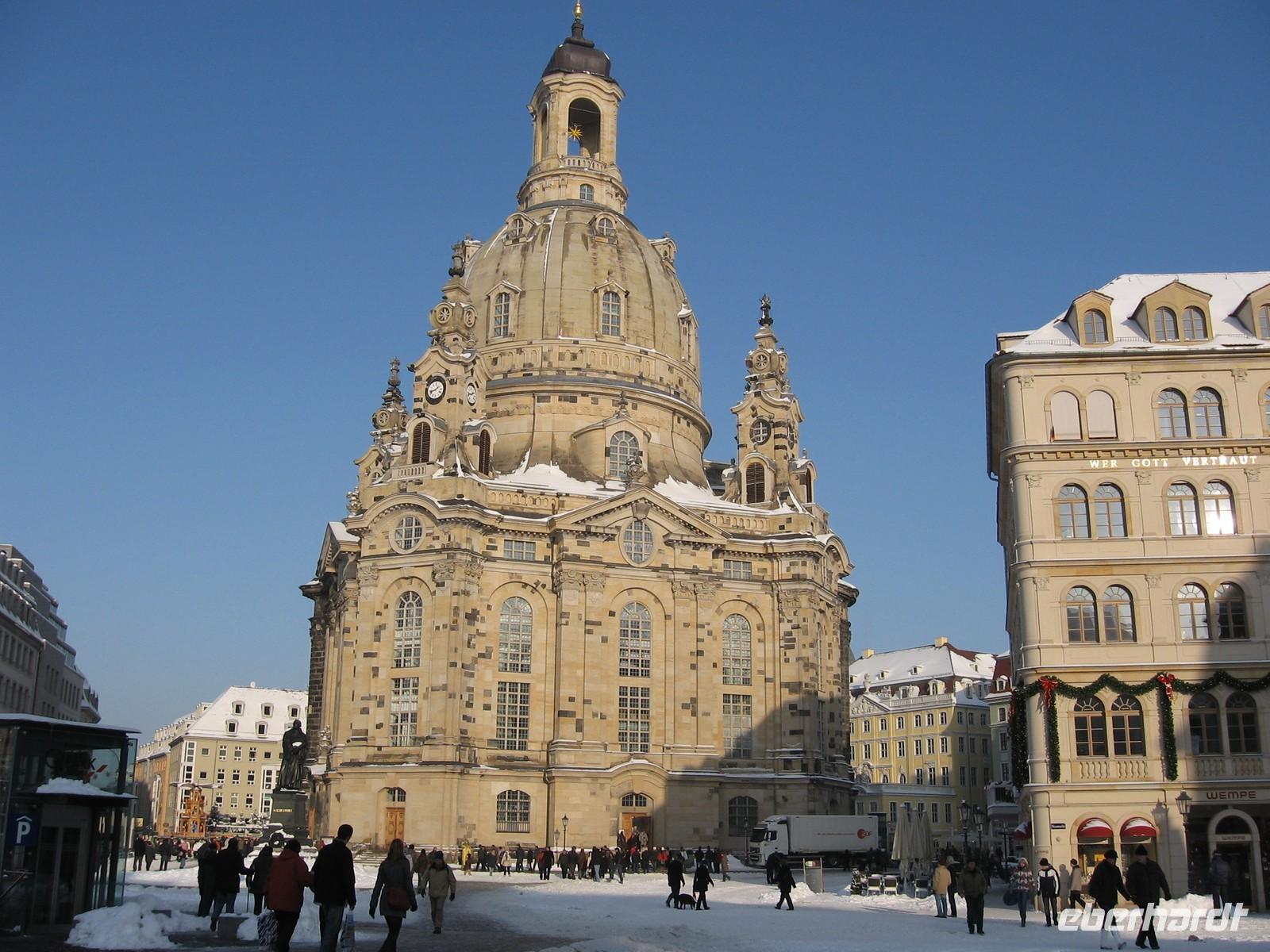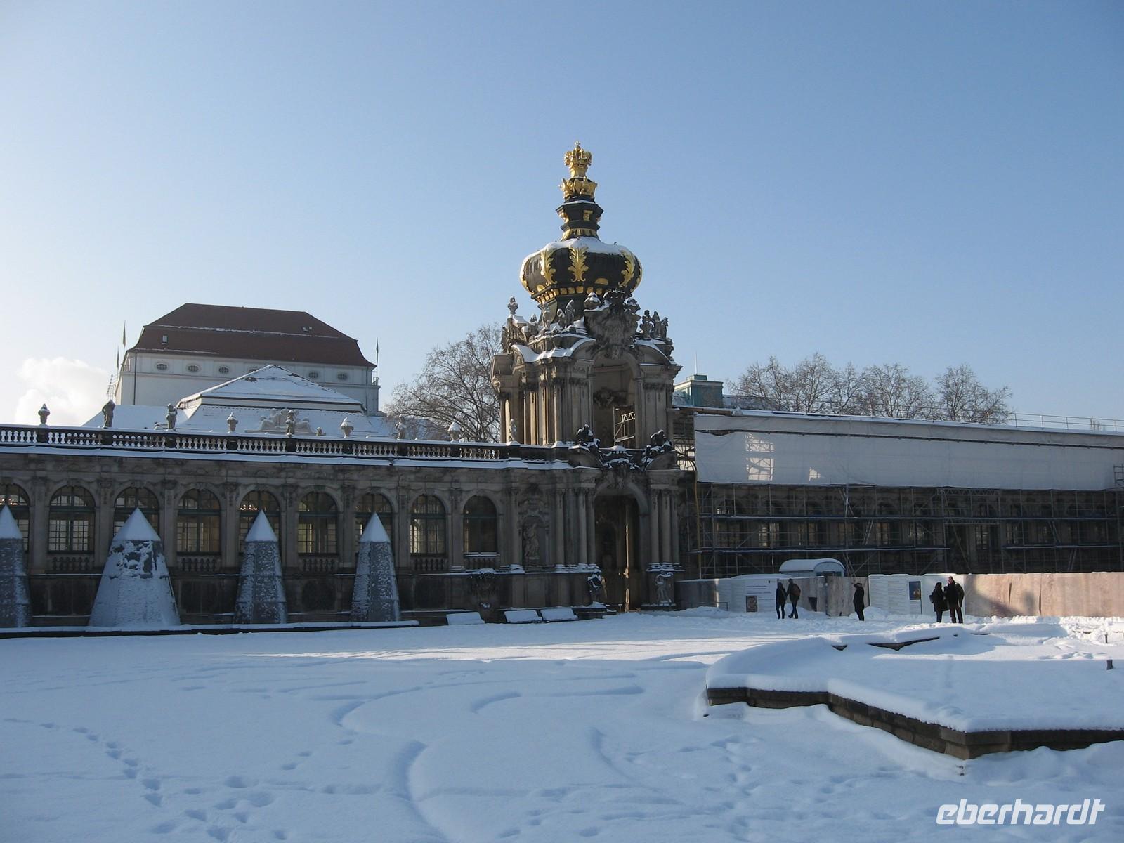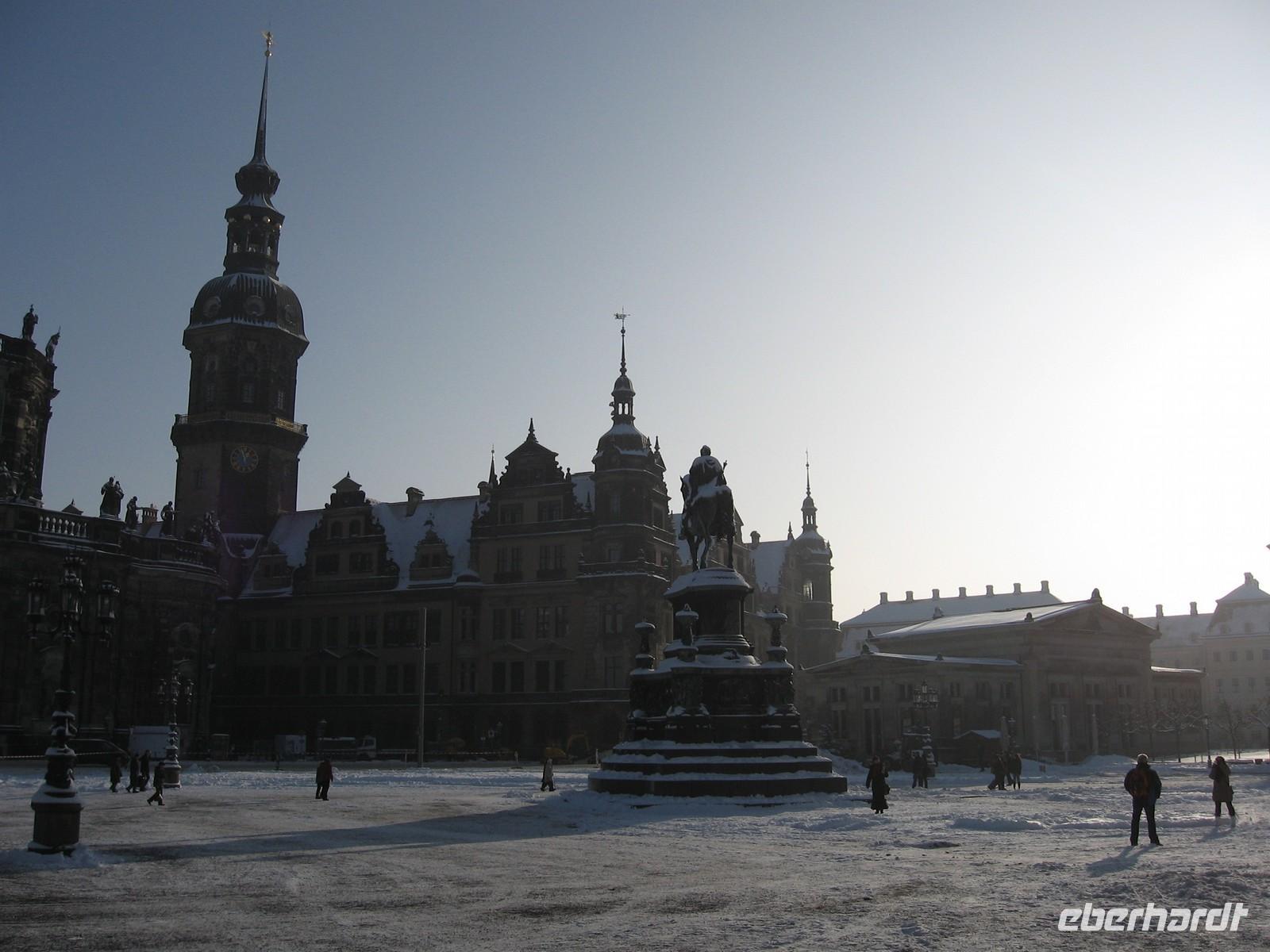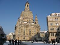 Es ist Winter, die Landschaft sieht wunderschön aus, still, sauber. Alles wirkt beruhigend. Für den Straßenverkehr ist diese Jahreszeit allerdings nicht die Beste Zeit. Ich kann an dieser Stelle aber sagen das alles reibungslos verlief. Die Haustürtransfers waren pünktlich und mein Bus kam in Chemnitz auf die Minute mit den ersten Gästen an. Nach weiteren Zustiegen in Siebenlehn und Dresden Flughafen fahren wir in das Stadtzentrum von Dresden. Hier werden wir bereits von unserer Stadtführerin Tess Schubert erwartet, welche uns in den nächsten zwei Stunden Dresden zeigen wird. Vom Zwinger aus fahren wir vorbei am Altmarkt, dem Hygienemuseum, dann zur VW-Manufaktur und weiter durch die Stadtteile Johannstadt und Striesen nach Blasewitz. Unterwegs bestaunen wir vom Elbufer aus die drei Schlösser am Elbhang, das Schloss Albrechtsberg, das Lingnerschloss und das Schloss Eckberg. Über die berühmte Brücke „Blaues Wunder" erreichen wir den Körnerplatz und damit auch Loschwitz. Die Grundstrasse führt uns dann hinaus aus dem Elbtal auf die Höhe und in die Stadtteile Bühlau und Weißer Hirsch. Letzterer war früher ein angesehener Kurort und heute ist es das Wohnviertel der Prominenten. Wieder bergab fahren wir zurück in das Stadtzentrum und machen noch einen Halt an dem Geschäft von „Pfund's Molkerei", dem schönsten Milchladen der Welt. Er ist durch seine Ausgestaltung mit Fließen ein besonderes Kleinod. Käse kann man heute dort immer noch kaufen, über 200 Sorten gibt es. Gleich nebenan befindet sich ein Senfladen, welcher bei unseren Gästen auch einen großen Anklang fand. Nach einigen Minuten erreichen wir dann wieder den Theaterplatz und machen noch einen kleinen Rundgang durch den Zwinger. Die Stadtrundfahrt endet, allerdings zu Fuß, dann im kleinen Schlosshof. Hier bekommen unsere Gäste noch einige Informationen zum Dresdner Schloss und den dort ansässigen Museen. In der nachmittäglichen Freizeit bietet sich auf jeden Fall ein Besuch eines der Museen an. Und natürlich steht auch die Frauenkirche auf dem Plan, am Nachmittag ist offene Kirche und so kann man das Innere ungehindert besichtigen. Am späten Nachmittag, es beginnt schon langsam zu dämmern, fahren wir in unser Hotel „Fuchsbergklause". Es liegt etwas außerhalb des Zentrums, in Weixdorf. Von unseren freundlichen Wirtsleuten, der Famile Schade, werden wir schon erwartet. Das Abendessen, ein kalt-warmes Buffet, lässt uns die Kälte des Tages vergessen.