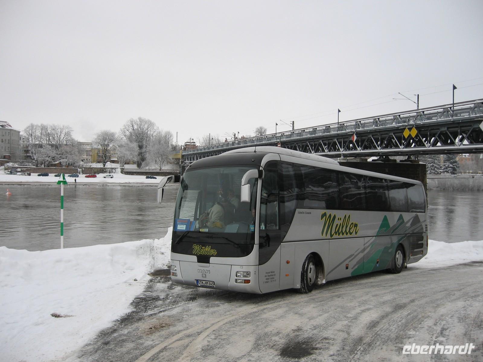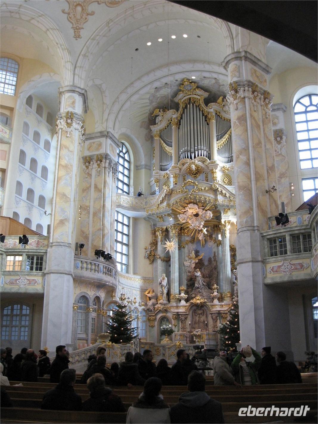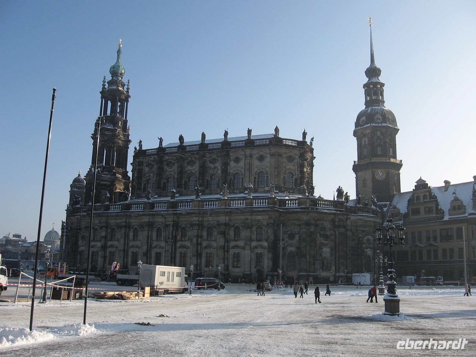 Es ist Winter, die Landschaft sieht wunderschön aus, still, sauber. Alles wirkt beruhigend. Für den Straßenverkehr ist diese Jahreszeit allerdings nicht die Beste Zeit. Ich kann an dieser Stelle aber sagen das alles reibungslos verlief. Die Haustürtransfers waren pünktlich und mein Bus kam in Chemnitz auf die Minute mit den ersten Gästen an. Nach weiteren Zustiegen in Siebenlehn und Dresden Flughafen fahren wir in das Stadtzentrum von Dresden. Hier werden wir bereits von unserer Stadtführerin Tess Schubert erwartet, welche uns in den nächsten zwei Stunden Dresden zeigen wird. Vom Zwinger aus fahren wir vorbei am Altmarkt, dem Hygienemuseum, dann zur VW-Manufaktur und weiter durch die Stadtteile Johannstadt und Striesen nach Blasewitz. Unterwegs bestaunen wir vom Elbufer aus die drei Schlösser am Elbhang, das Schloss Albrechtsberg, das Lingnerschloss und das Schloss Eckberg. Über die berühmte Brücke „Blaues Wunder" erreichen wir den Körnerplatz und damit auch Loschwitz. Die Grundstrasse führt uns dann hinaus aus dem Elbtal auf die Höhe und in die Stadtteile Bühlau und Weißer Hirsch. Letzterer war früher ein angesehener Kurort und heute ist es das Wohnviertel der Prominenten. Wieder bergab fahren wir zurück in das Stadtzentrum und machen noch einen Halt an dem Geschäft von „Pfund's Molkerei", dem schönsten Milchladen der Welt. Er ist durch seine Ausgestaltung mit Fließen ein besonderes Kleinod. Käse kann man heute dort immer noch kaufen, über 200 Sorten gibt es. Gleich nebenan befindet sich ein Senfladen, welcher bei unseren Gästen auch einen großen Anklang fand. Nach einigen Minuten erreichen wir dann wieder den Theaterplatz und machen noch einen kleinen Rundgang durch den Zwinger. Die Stadtrundfahrt endet, allerdings zu Fuß, dann im kleinen Schlosshof. Hier bekommen unsere Gäste noch einige Informationen zum Dresdner Schloss und den dort ansässigen Museen. In der nachmittäglichen Freizeit bietet sich auf jeden Fall ein Besuch eines der Museen an. Und natürlich steht auch die Frauenkirche auf dem Plan, am Nachmittag ist offene Kirche und so kann man das Innere ungehindert besichtigen. Am späten Nachmittag, es beginnt schon langsam zu dämmern, fahren wir in unser Hotel „Fuchsbergklause". Es liegt etwas außerhalb des Zentrums, in Weixdorf. Von unseren freundlichen Wirtsleuten, der Famile Schade, werden wir schon erwartet. Das Abendessen, ein kalt-warmes Buffet, lässt uns die Kälte des Tages vergessen.