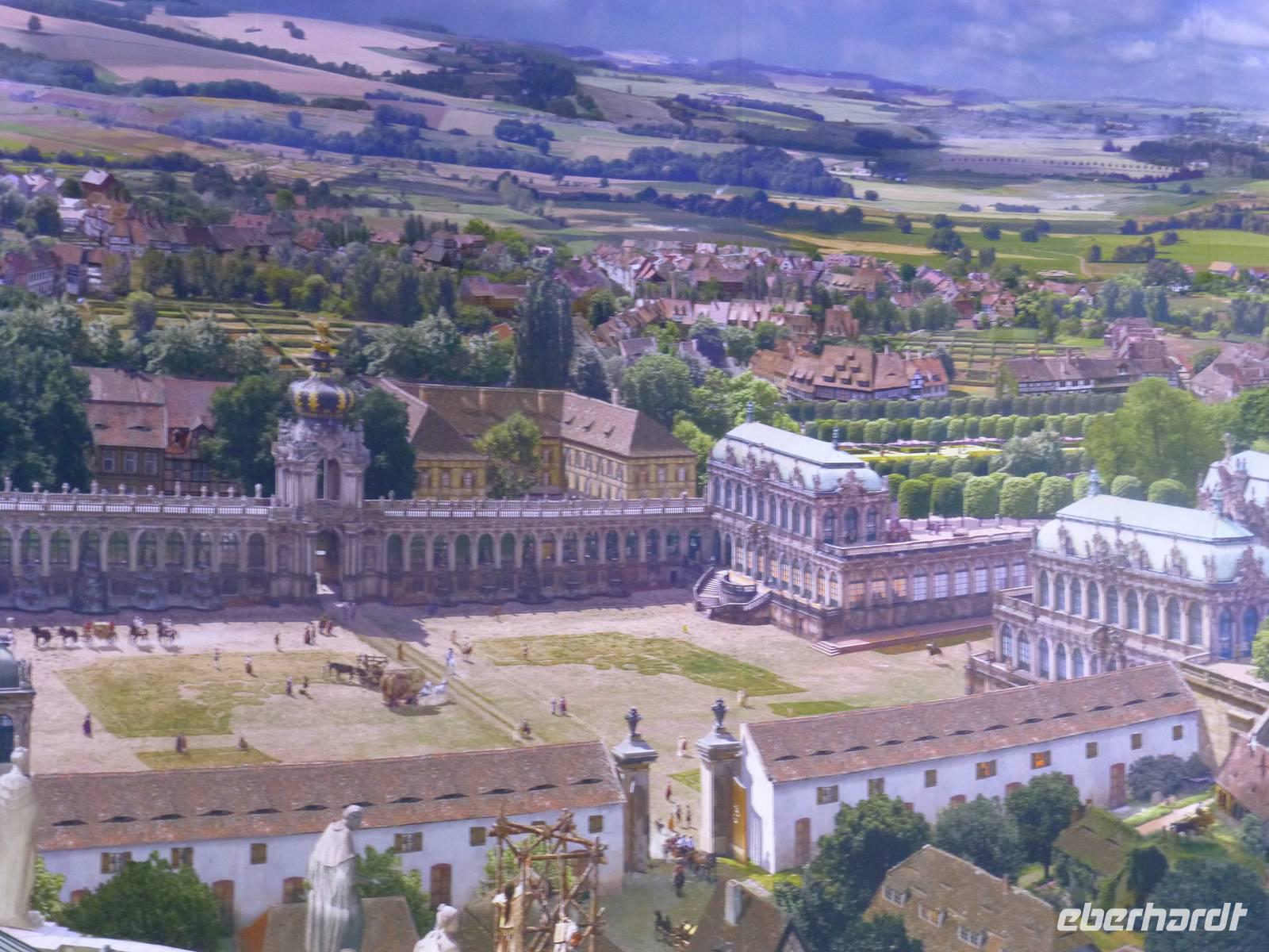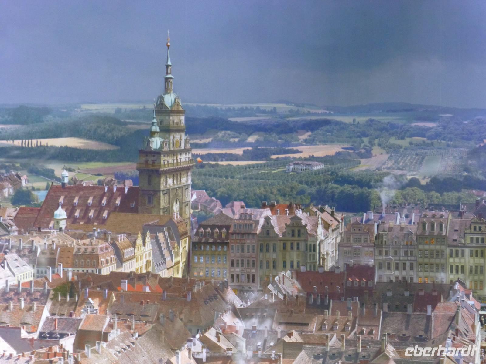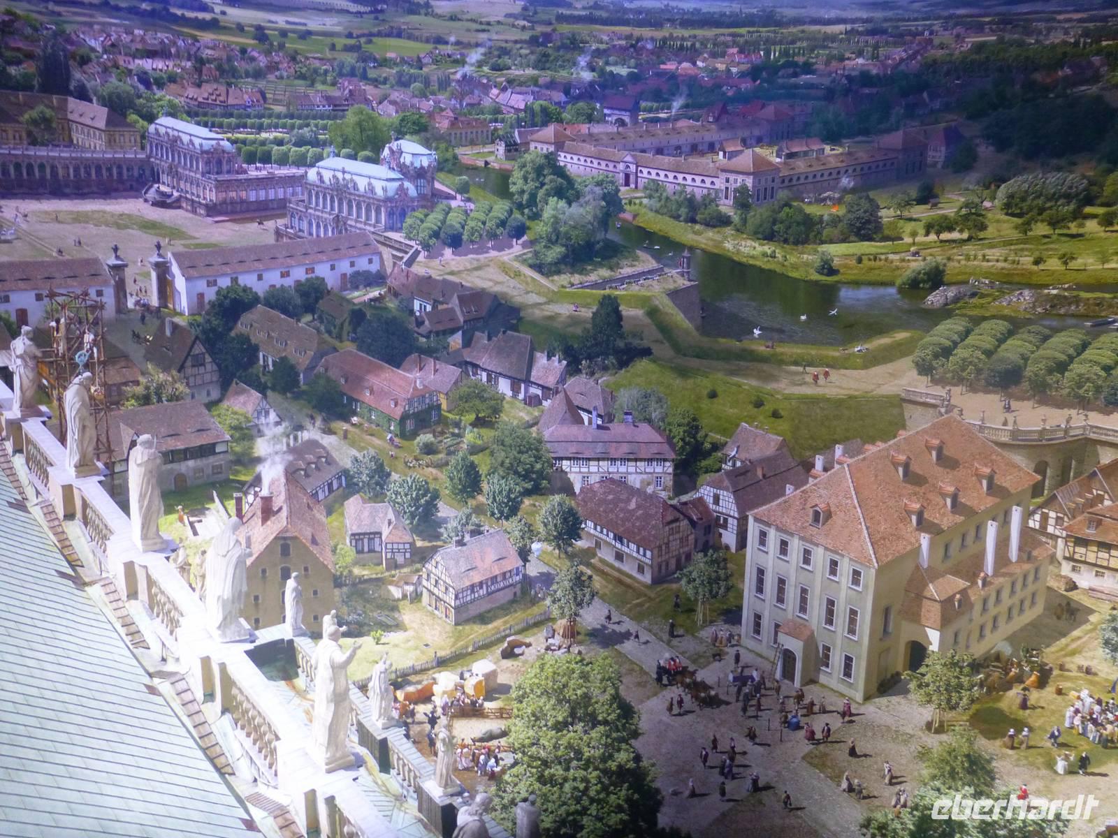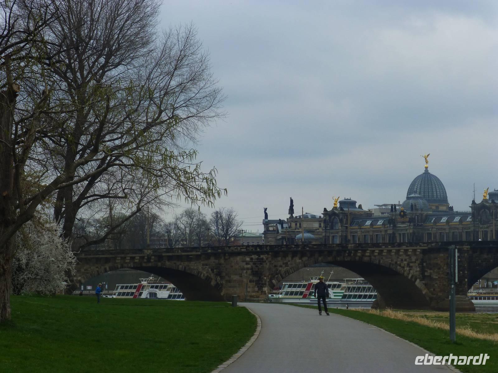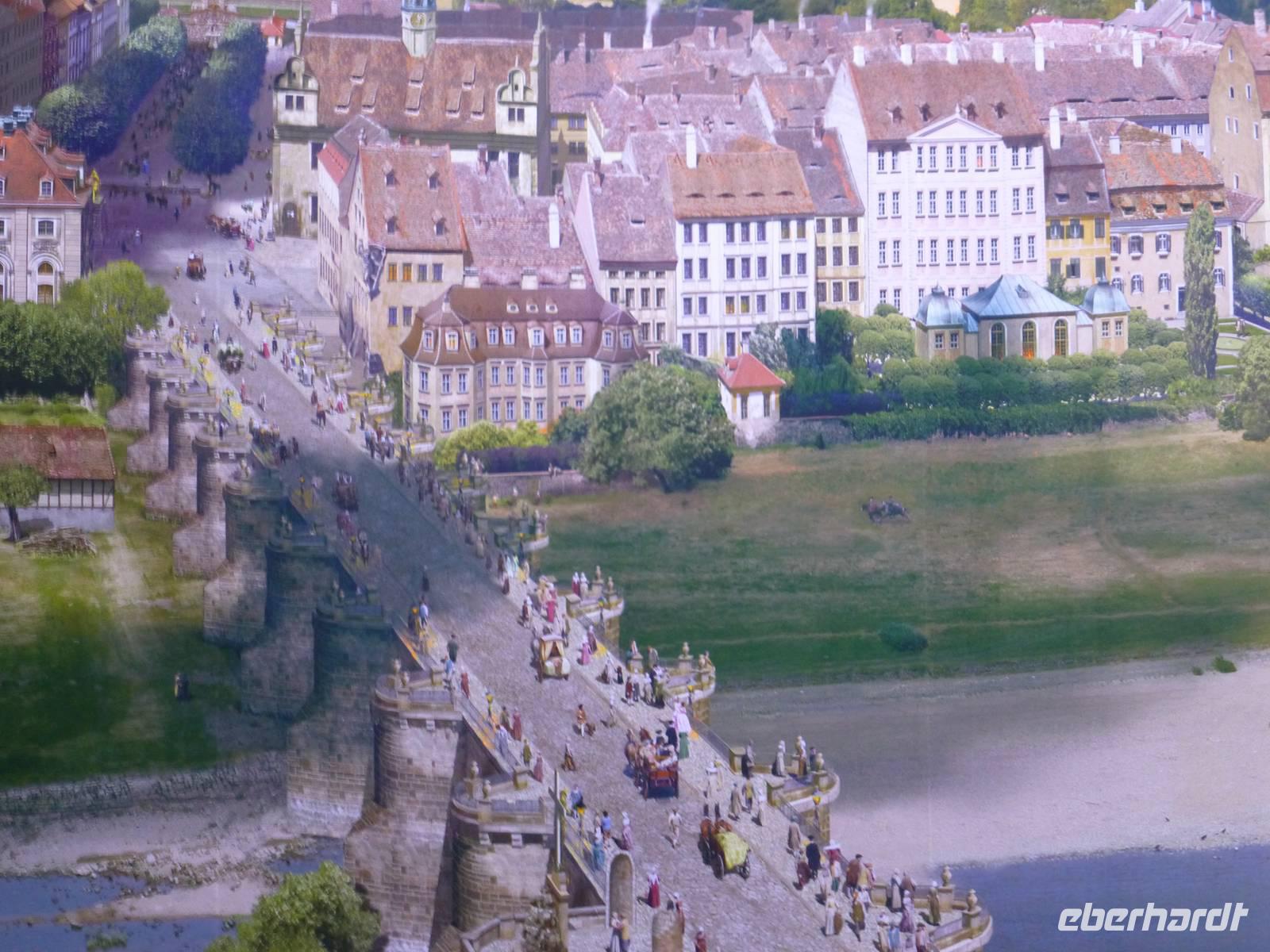 Am Vormittag erwartete ich als Reiseleiterin die Gruppe in Chemnitz. Das Wetter war schön und wir fuhren zum Hotel Bellevue. Vom Parkplatz ging es direkt an das Elbufer zum Glockenspiel Pavllion. Wir konnten nicht nur das Glockenspiel, sondern auch die Farbenpracht der blühenden Japanischen Wildkirchen genießen. Auch der Blick auf das Panorama der Altstadt, der sogenannte Canaletto Blick konnte uns begeistern. Damit hatten wir auch einen Eindruck was uns für ein Bild im Panometer erwarten wird. Kurz darauf