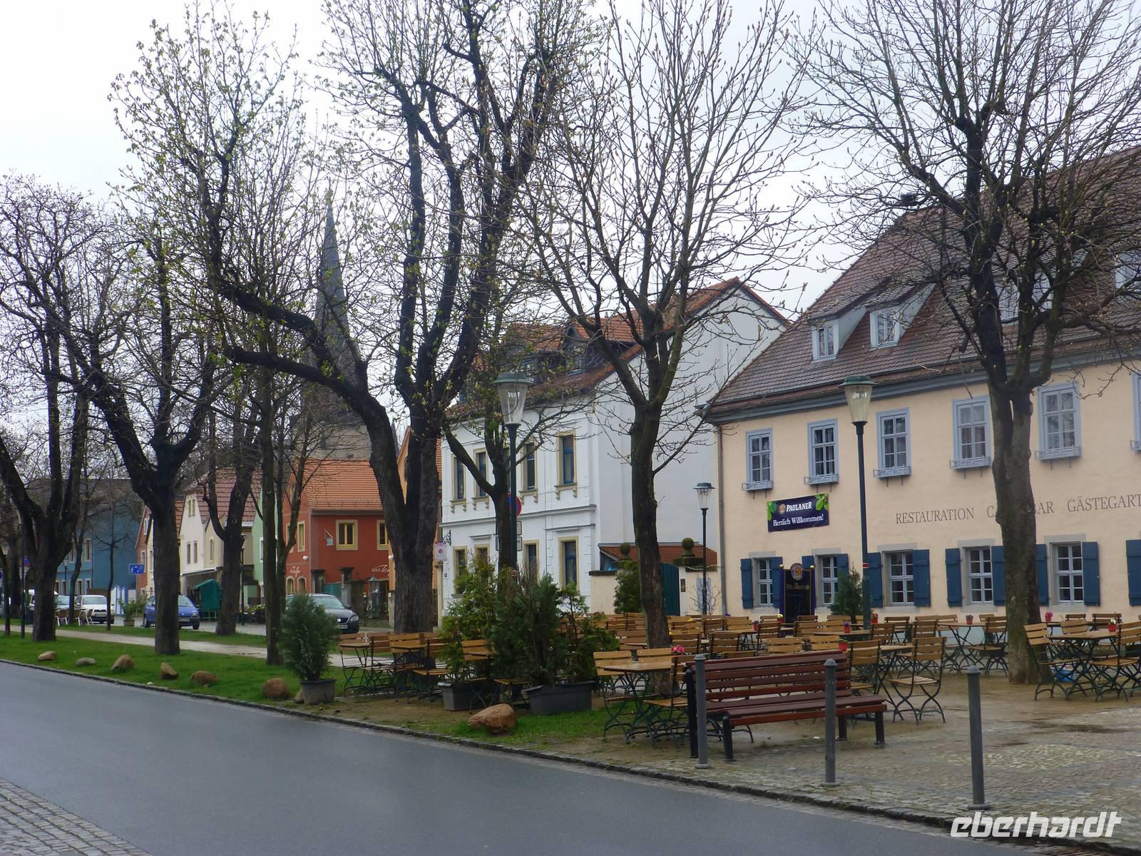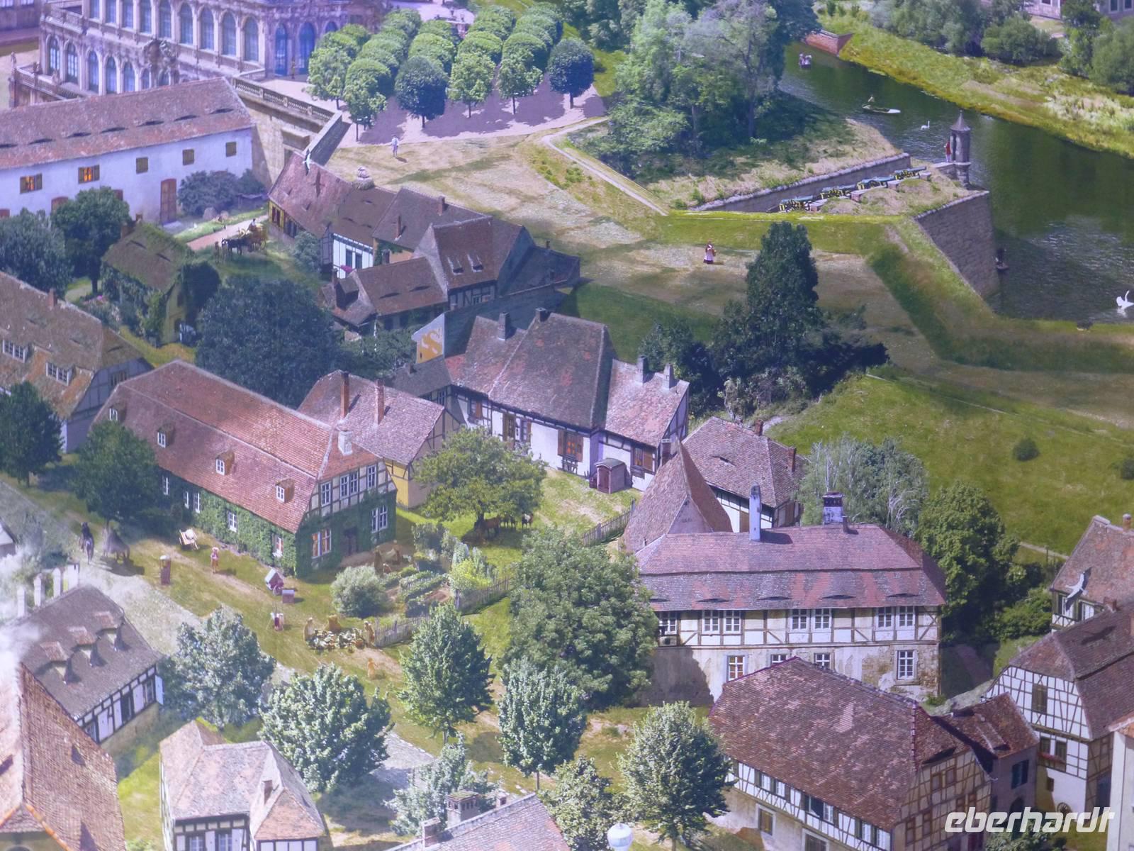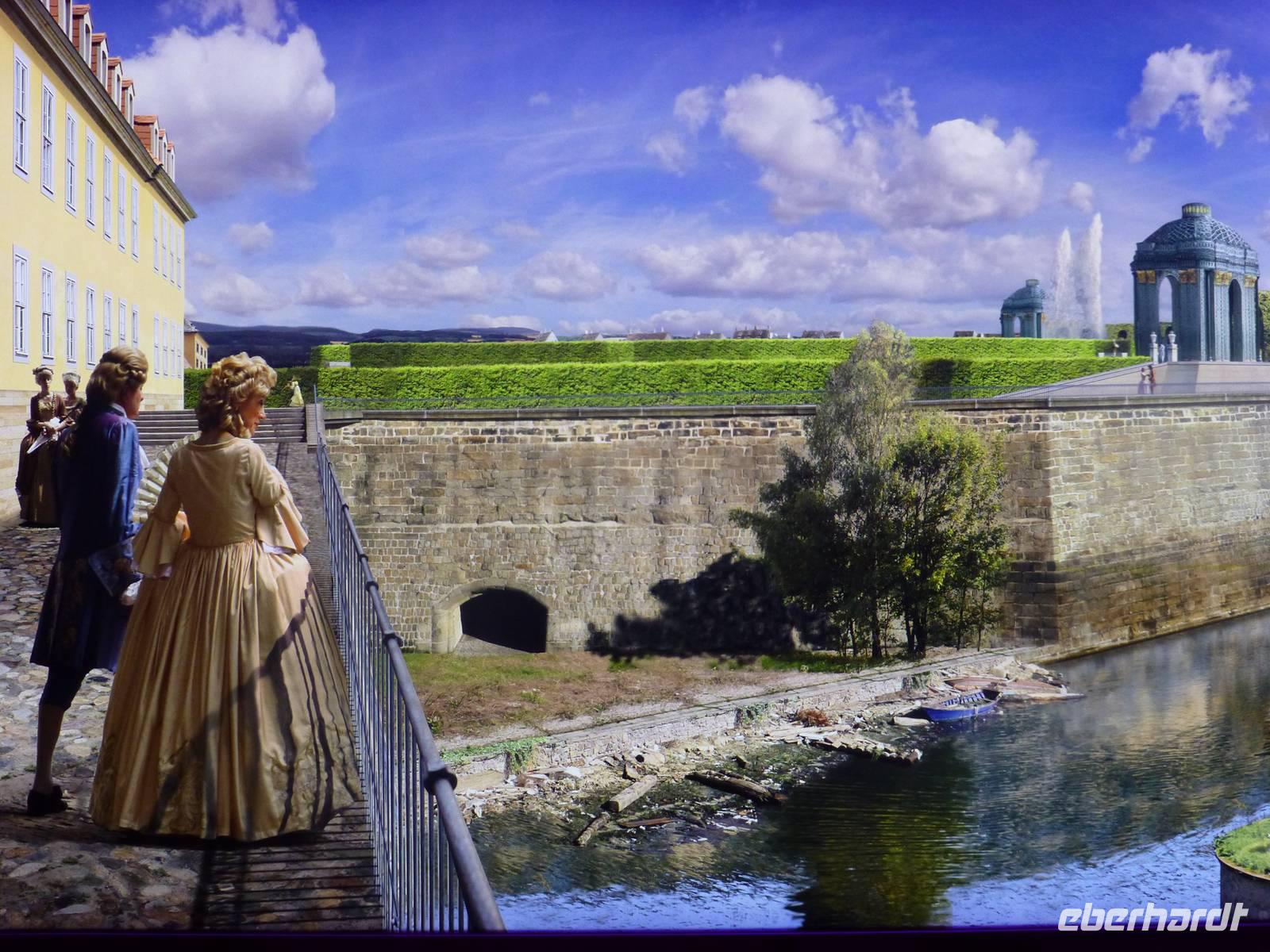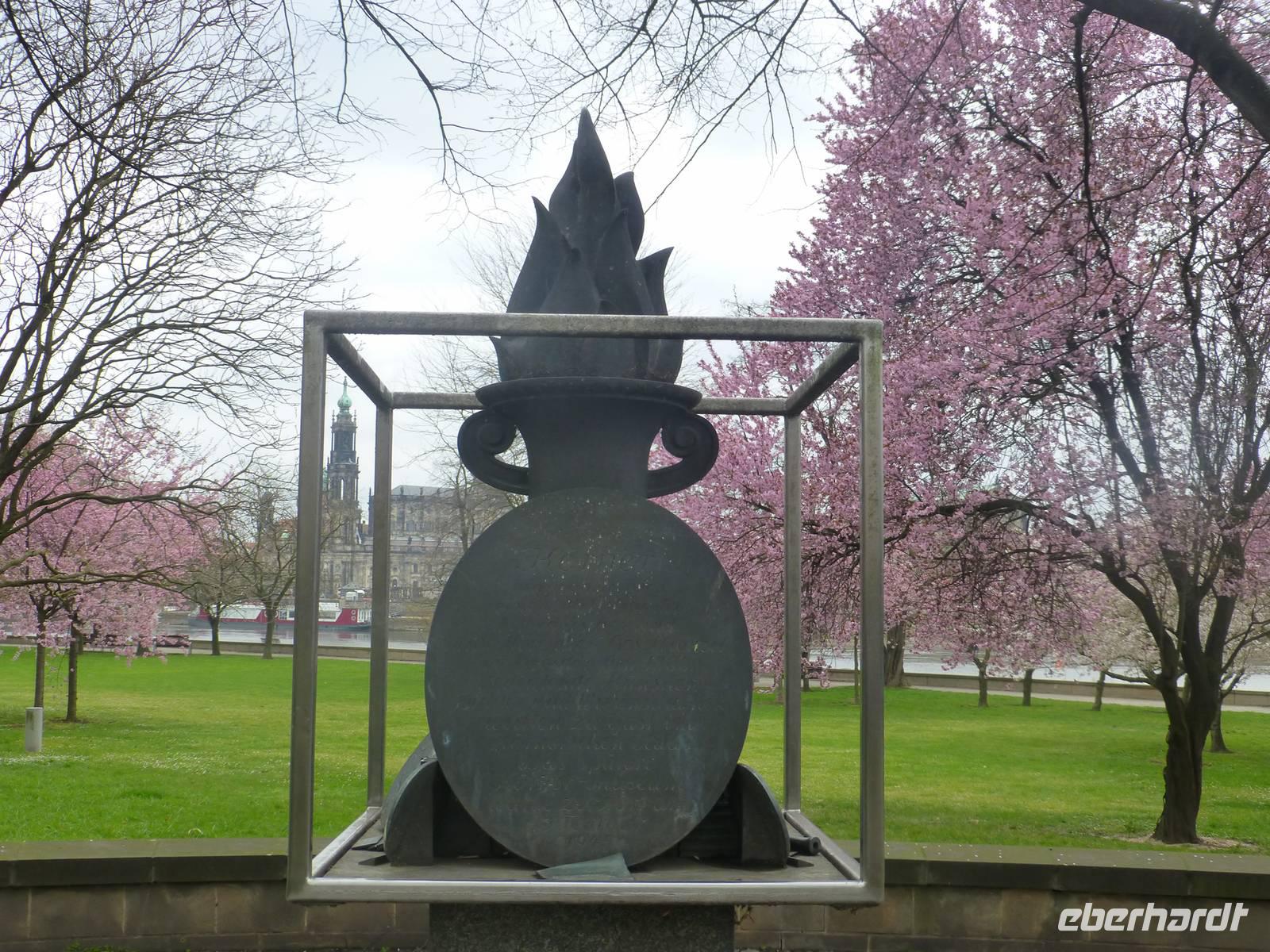 Am Vormittag erwartete ich als Reiseleiterin die Gruppe in Chemnitz. Das Wetter war schön und wir fuhren zum Hotel Bellevue. Vom Parkplatz ging es direkt an das Elbufer zum Glockenspiel Pavllion. Wir konnten nicht nur das Glockenspiel, sondern auch die Farbenpracht der blühenden Japanischen Wildkirchen genießen. Auch der Blick auf das Panorama der Altstadt, der sogenannte Canaletto Blick konnte uns begeistern. Damit hatten wir auch einen Eindruck was uns für ein Bild im Panometer erwarten wird. Kurz darauf