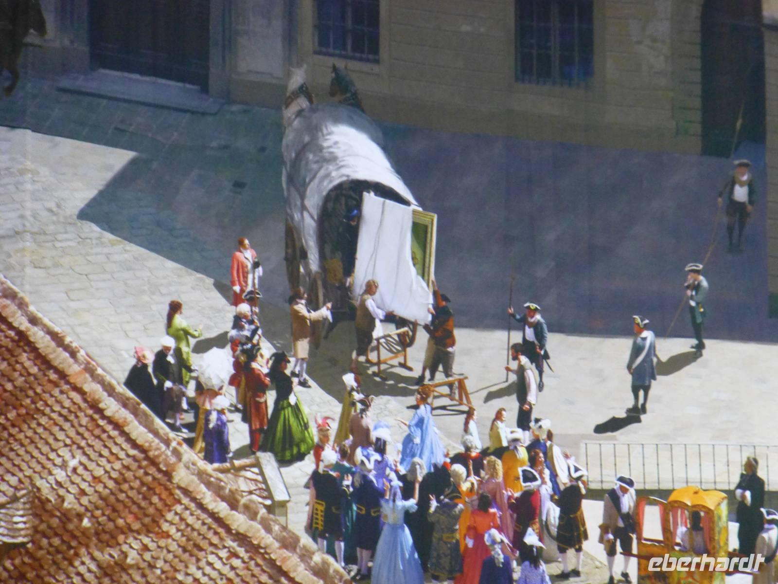 fuhren wir weiter zum Asisi-Panometer in den Ortsteil Dresden-Reick. Wir erlebten hier eine Zeitreise in das barocke Dresden. Es ist schon das zweite Bild vom barocken Dresden. Dabei legte Yadegar Asisi in seinem 360°-Panorama über die barocke Glanzzeit Dresdens den Fokus auf das Leben am sächsischen Hofe und das Alltagsleben der Bürger, Krämer, Fischer, Dienstboten und Handwerker. Er verdichtet die Zeit von etwa 1695 bis 1760 zu einer künstlerischen Momentaufnahme des Dresdner Barocks. Viele Szenen mit den historischen Personen im Rundbild zu sehen. So sieht man Zar Peter I., den Erfinder des Porzellans Böttger, Casanova und den Hofnarr Joseph Fröhlich mit seinem Schweinekarren. Zu sehen ist auch die Ankunft der Sixtinischen Madonna im Jahr 1754 im Dresdner Stallhof. Vergessene Alltagsepisoden mit Holztreidlern und Waschfrauen an der Elbe, Sänftenträgern und Komödianten auf den Plätzen und vielem mehr, machen das Panorama zu einem erlebbaren Kunstraum dieser Epoche. Auch die Nachtvariante mit den beleuchteten Fenstern und einem Feuerwerk hält besondere Eindrücke bereit - ein einmaliges Erlebnis. Anschließend unternahmen wir einen Spaziergang zur Frauenkirche. Der Gottesdienst war gerade zu Ende und so konnten wir die Frauenkirche besuchen oder gemütlich Mittagessen gehen. Auch der Besuch im Grünen Gewölbe hat die Gäste begeistert. Am Nachmittag fuhren wir gut gelaunt weiter zur Pension "Fuchsbergklause" im Ortsteil Dresden-Weixdorf. Dort wurden wir herzlichst durch unsere Gastgeberfamilie Schade begrüßt und es folgte ein leckeres Abendessen, Wildschweinbraten mit Rotkohl und Klößen. Gut gestärkt ging es mit unserem Bus zurück in die Dresdner Innenstadt, denn dort erwartete uns heute Abend noch ein ganz besonderes Highlight. Wir genossen das einmalige Ambiente der Semperoper! Bereits von außen gibt sich die Oper mit geschwungener Fassade als klassischer Theaterbau zu erkennen. Die Innenräume sind mit Bildern und Deckengemälden geschmückt. Reich verzierte Leuchter erhellen das Opernhaus. Diese Atmosphäre ist einmalig schön. Wir erlebten heute die Oper "Carmen".
