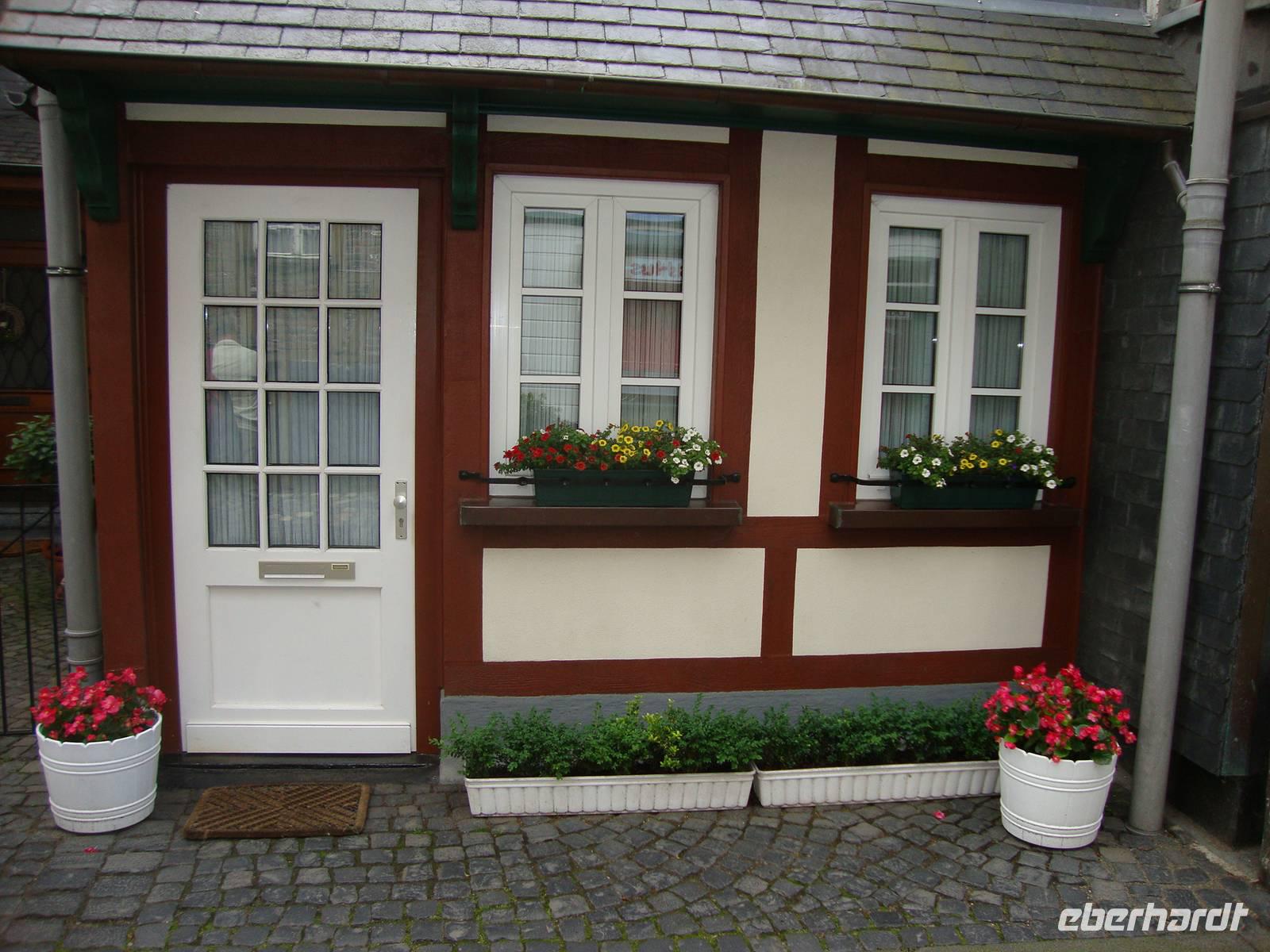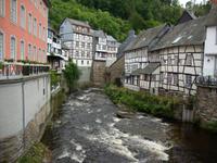 Nach einem ausgiebigem Frühstück besuchten wir das kleine Städtchen Monschau in der nördlichen Eifel, nahe der Grenze zu Belgien. Die Altstadt ist ein harmonisches Ensemble aus stattlichen Bürgerhäusern, die sie der Blüte der Textilindustrie, im 16. bis 19.Jh. verdankt. Leider hatte das "Rote Haus" vom 07. - 22.07.14 geschlossen, so das wir es nur von außen in Augenschein nehmen konnten. Am Flüsschen Rur präsentieren sich die schönsten Fassaden.