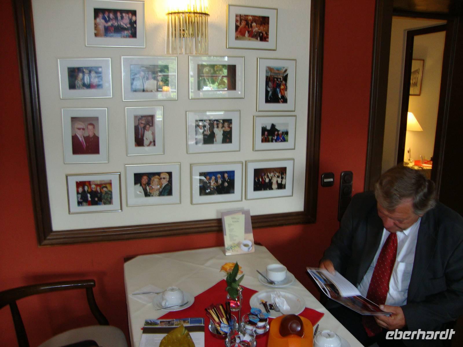Am Nachmittag besuchten wir Bad Münstereifel, dessen mittelalterlicher Stadtkern vollständig von einer Mauer mit 18 Wehrtürmen und 4 Toren umgeben ist. Die Erft fließt mitten durch den Ort, der sich um die mächtige Stiftskirche St.Chrysanthus und Daria (11.Jh.) herum gruppiert. Natürlich durfte auch ein Besuch im historischen Kurhaus, dem Wohnsitz von Heino, nicht fehlen. Bei einer Tasse Kaffee und Kuchen sahen wir die vielen Auszeichnungen und Bilder von Prominenten, welche schon zu Gast waren. Bei Temperaturen um die 30°C und herrlichem Sonnenschein fuhren wir zurück nach Einruhr.