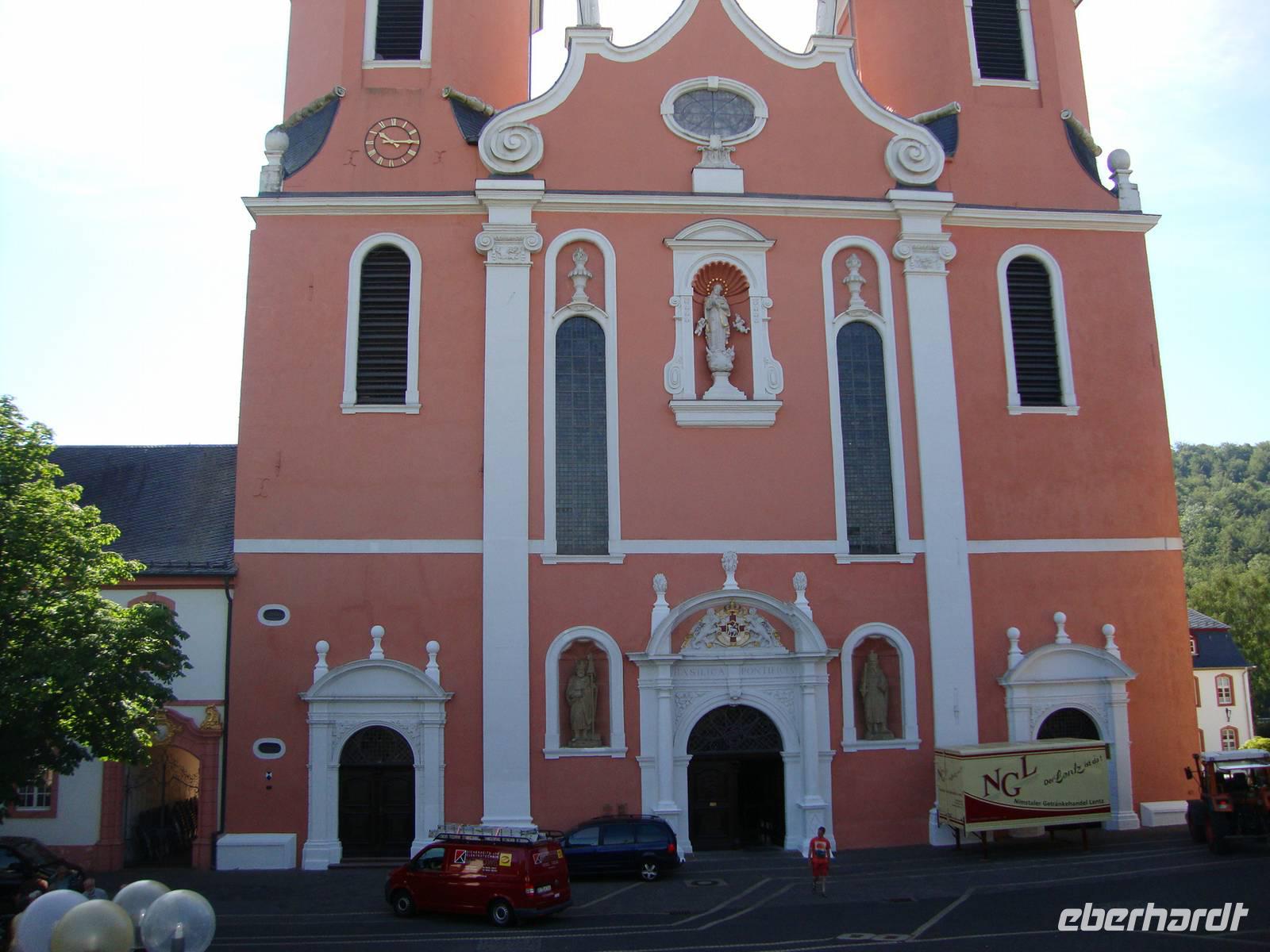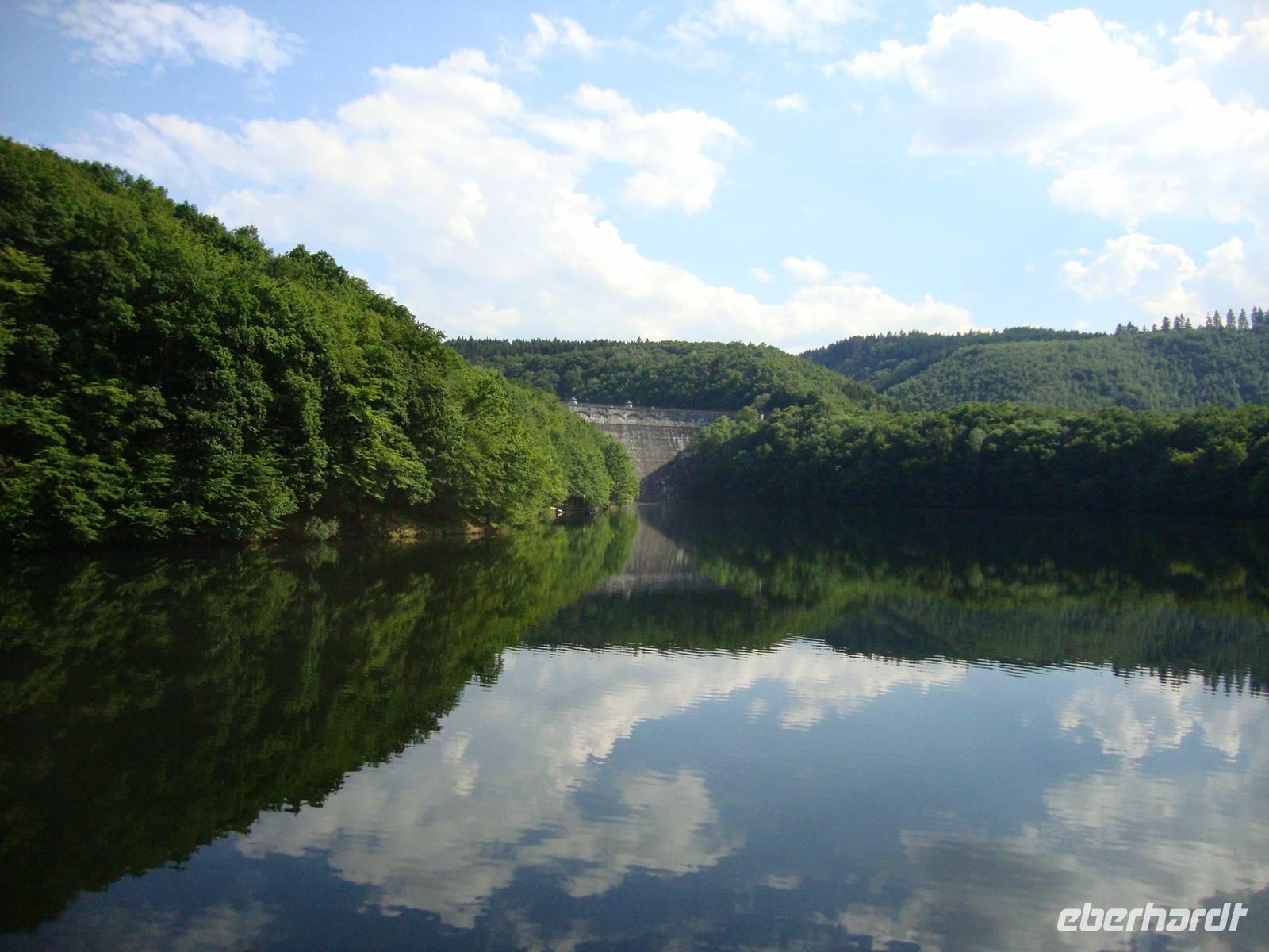 Der letzte Ausflug führte uns zunächst nach Prüm. Vorbei an Blankenheim, das rustikale Bergdorf schmiegt sich an einen Hang unterhalb der mächtigen Burg, die im 20.Jh. aus Ruinen wieder aufgebaut wurde, erreichen wir den bekannten Wallfahrtsort. Frau Rolef empfing uns an der Basilika ganz herzlich und erzählte uns Wissenswertes und auch manche Anekdote. In der Kirche liegt Karls Enkel begraben, Kaiser Lothar I. Ein Stück der Sandale, welche Jesus Christus getragen haben soll und von Pippin dem Kurzen der Kirche geschenkt wurde, konnten wir leider nicht sehen. Sie befindet sich wiedermal zu einer Untersuchung in einem Labor. In der Basilika waren schon viele Prominente zu Gast, u. a. auch die Bundeskanzlerin Angela Merkel, im vergangenen Jahr. Am Nachmittag besuchten wir die Mineralwasserfabrik in Gerolstein, die größte Anlage ihrer Art in Deutschland. Hier werden in der Stunde ca. 19.000 - 20.000 Flaschen Mineralwasser abgefüllt, welches aus der Tiefe des Vulkangestein gewonnen wird. Grundwasser vermischt sich in den Erdspalten mit den verbliebenen Resten von Kohlesäure und löst dann Mineralien wie Magnesium, Kalium oder Kalzium aus dem Gestein, bevor es an die Oberfläche dringt. Bei eine interessanten Führung und einem Film lernten wir die bekannte Firma kennen, auch eine Verkostung der verschiedensten Produkte war dabei. Zum Abschluß unserer Reise besuchten wir am Nachmittag die Oleftalsperre, deren mächtige Staumauer in Pfeilerbauweise errichtet wurde. Von der Staumauer hat man einen wunderbaren Blick über die Wälder des Nationalparkes und bei dem herrlichen Wetter eine wgahre Freude.