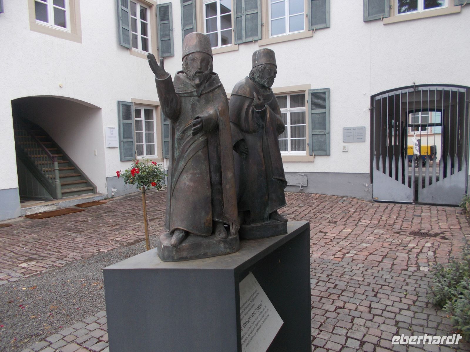 Unser erster Ausflug führte uns in die Domstadt Speyer am Rhein. Dort, im mächtigen Dom, wo, seit dem Mittelalter, Kaiser,Kaiserinnen, Könige und Prinzessinnen ruhen ,trafen wir unsere Stadtführer. Bei einem Rundgang lernten wir die verschiedensten Sehenswürdigkeiten der Stadt ,angefangen vom jüdischen Viertel ,über Dreifaltigkeitskirche ,bis zum Altpörtel ,kennen. Zum Abschluß probierten wir die berühmten Berzel - Brezeln.Sie sollen in der Fastenzeit erfunden worden sein. Unser Ausflug führte uns weiter in die Pfalz zum Rebenhof nach Neustadt an der Weinstraße. Mit einem kühlen Schluck "Auxerrois" wurden wir begrüßt. Die Rebsorte, aus dem Elsas stammend, schmeckte hervorragend frisch. Mit dem Planwagen fuhren wir vorbei an den zahlreichen Weinstöcken, immer im Blick das Hambacher Schloss. Nach der ausgiebigen Weinprobe , mit interessanten Erörterungen rund um den Wein, ließen wir uns den Spießbraten gut schmecken. So manche Flasche ,dieser guten Tropfen, trat die Heimreise mit an.