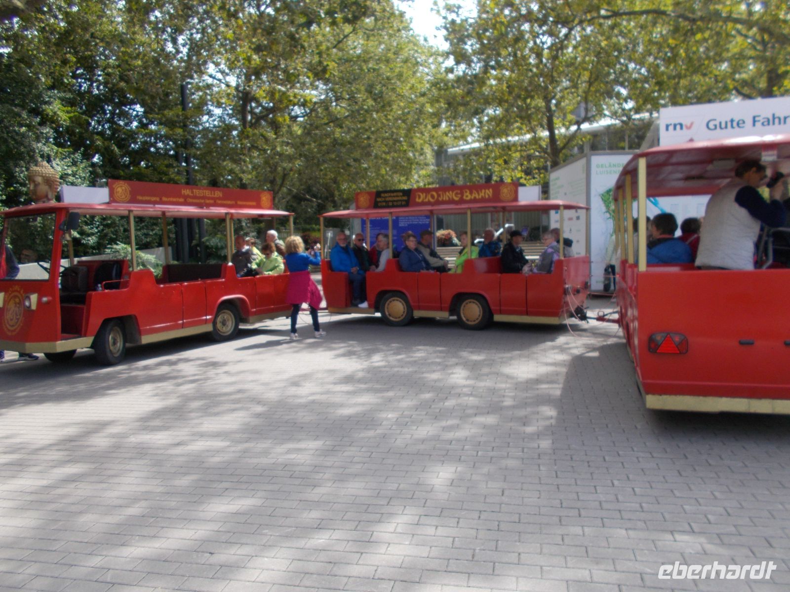 Der heutige Tag stand ganz im Zeichen der BUGA Mannheim. Wir mußten nur die Straße überqueren und waren schon im Luisenpark. Von dort spazierten wir ,zur extra errichteten Seilbahn, die uns über den Neckar zum Spinelli Park brachte. Dieses neu angelegte Areal soll nach der BUGA erhalten bleiben und als öffentlicher Park weiter geführt werden. Am Nachmittag trafen wir uns, um den Luisenpark mit der Duojing - Bahn zu erkunden. Am größten chinesischen Teehaus Europas endete unsere Fahrt. Dort wurden wir schon zu einer Teezeremonie erwartet. Die Teemeisterin führte uns in die hohe Kunst der Teezubereitung ein. Im Anschluß konnten wir grünen Tee und Röllchen vom grünen Tee mit Kokos und Nüssen probieren. Da sich nun endlich auch die Sonne zeigte, nutzten wir die Zeit zu einem ausgiebigen Bummel über das BUGA Gelände. Die Ausstellungshallen und das gesamte Angebot von Bepflanzungen, Tiergehegen, Gondelfahrten war so abwechslungsreich und vielfältig das es keine Wünsche offen ließ.