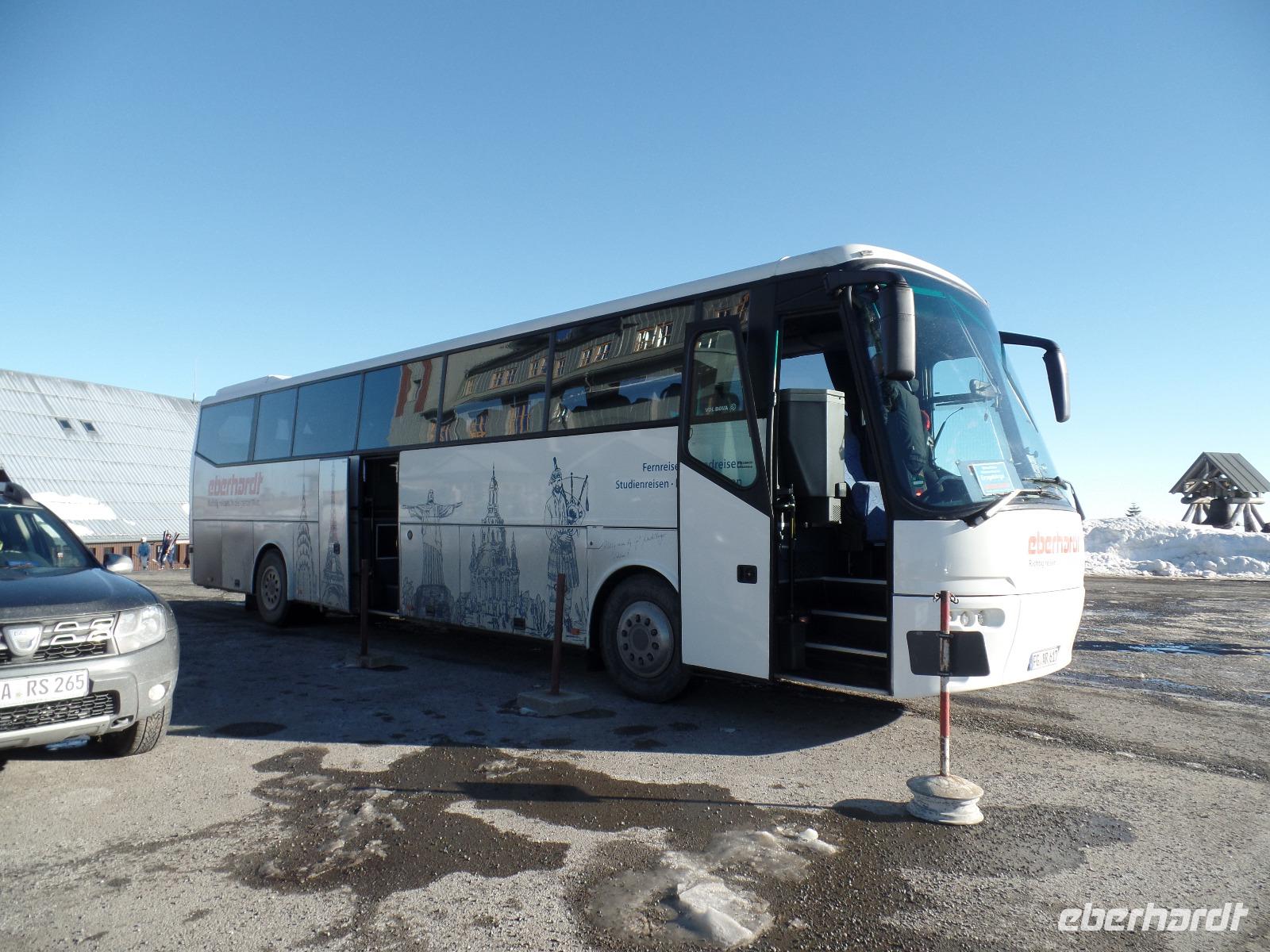 Der Tag startete mit einem leckeren Frühstück mit vielen frischen Zutaten! Danach ging es los zu unserer romantisch-gemütlichen Rundfahrt durch das winterliche Erzgebirge und seine urigen Städtchen. Bei bestem Sonnenstein fuhren wir, wieder begleitet durch Herrn Güttler, durchs Gebirge nach Wolkenstein, wo wir die Burg bei einem kleinen Spaziergang besuchten. Weiter fuhren wir in die alte Bergstadt Annaberg-Buchholz. Peter ließ uns an der St. Annen-Kirche raus - der wohl schönsten gotischen Hallenkirche des Erzgebirges. Wir spazierten dann zum Erlebnisgasthof "Ratskeller zum Neunerlaa" - wo wir uns ein typisch erzgebirgisches Neinerlaa vom Schwein schmecken ließen. Wir genossen dieses erstklassige Essen bestehend aus neun verschiedenen Speisen wie in guten alten Zeiten. Gut gestärkt ging es mit dem Bus weiter zur höchstgelegenen Stadt Deutschlands, nach Oberwiesenthal. Peter brachte uns mit dem Bus hinauf auf den höchsten Berg Sachsens, den Fichtelberg mit seinen 1214 Metern. Wir genossen das traumhafte Wetter, den unglaublichen Blick in die verschneite Umgebung mit einem Lächeln im Gesicht - was für ein Glück wir doch mit dem Wetter hatten!