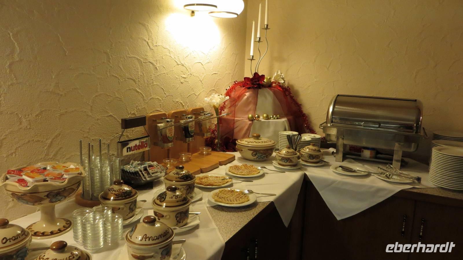 Heute ist es endlich soweit - der Heilige Abend ist da. Nach einem ausgezeichneten Frühstück im Hotel beginnen wir unseren Tag mit einem Besuch in Bretschneider's Weihnachtsland in Stützengrün. Diese große Erlebniswelt ist eine der größten Verkaufsausstellungen von erzgebirgischer Volkskunst in Deutschland. Bei einem Rundgang durch das von außen wirkende Märchenschloss bewundern wir die vielen schönen Weihnachtsfiguren, lauschen wir dem Weihnachtsmann beim Singen und Märchen erzählen und schauen wir dem Rupperich beim Baden zu . Wieder im Bus genießen wir einen köstlichen Glühwein und fahren anschließend zu einer kleinen Raststelle in der Nähe der Talsperre Eibenstock, der größten Trinkwassertalsperre Sachsens. Hier legen wir eine kurze Mittagspause ein. Nachdem sich alle gestärkt und ihre Füße etwas vertreten haben, fahren wir weiter zum Stickereimuseum in Eibenstock, wo wir bereits erwartet werden. Während einer Führung werden uns die historischen Maschinen, wie eine Handstickmaschine und eine Pantographenstickmaschine, vorgeführt. Beeindruckt von diesen riesigen Geräten und ihren Erzeugnissen, wird uns schnell bewusst, wie mühsam das sticken früher doch war. Im Anschluss an die Vorführung haben wir noch genügend Zeit, um uns die Ausstellung zur Stadtgeschichte sowie die Trumpold'sche Sammlung, ein Lebenswerk von Gisela und Karl Trumpold, das ca. 15.000 Einzelstücke der erzgebirgischen Volkskunst umfasst, anzuschauen. Dann ist es Zeit zurück zum Hotel in Rittersgrün zu fahren. Am Nachmittag nutzen einige Gäste die Gelegenheit um am Heiligen Abend zur Kinderchristmette in die Dorfkirche in Rittergrün zu gehen. Der Rest genießt den leckeren hausgemachten Stollen im Hotelrestaurant. Pünktlich um 17:30 Uhr treffen wir uns dann alle zu unserem weihnachtlichen 4-Gänge-Menü, das an das typische erzgebirgische Neunerlei angelehnt ist, wieder. Wie es der Brauch so will, findet jeder Gast etwas Kleingeld unter seinem „Teller", damit auch genügend Geld für die bevorstehenden Reisen im kommenden Jahr vorhanden ist. Bei weihnachtlicher Musik von Armin Schmidt lassen wir uns das köstliche Menü schmecken und verbringen wir einen tollen Abend, welcher mit dem Besuch von gleich 2 Weihnachtsmännern versüßt wird.