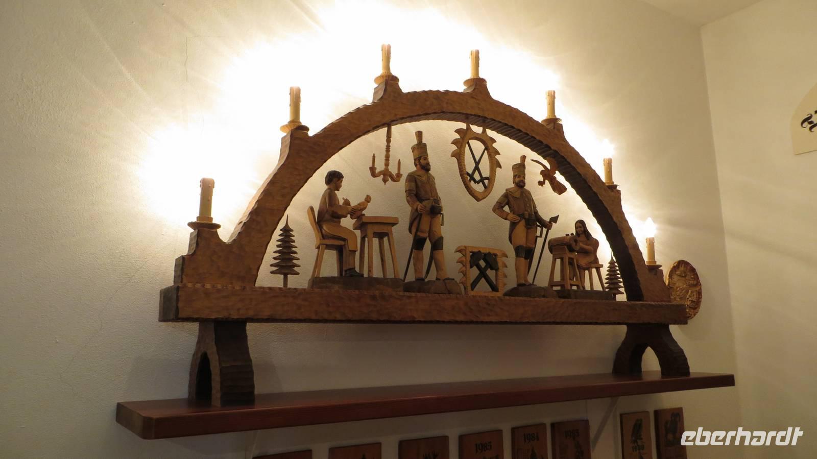 Der heutige Ausflug nach Schwarzenberg und in den Musikwinkel nach Markneukirchen ist fakultativ. Einige Gäste wollen sich nach unseren gemeinsamen 3 Tagen etwas erholen und bleiben in Rittersgrün. Der Rest nimmt an dem Ausflug teil und verlässt gegen 09:30 Uhr das Hotel. Gemeinsam fahren wir in die „Perle des Erzgebirges" - nach Schwarzenberg, wo wir schon von unserem örtlichen Reiseleiter empfangen werden. Von dem Parkplatz aus führt ein Schrägaufzug von der Vor- in die Altstadt. In diesem Aufzug überwinden wir in kürzester Zeit 30 Höhenmeter und gelangen bei einem herrlichen Ausblick auf die Vorstadt schnell hinauf in die Altstadt. Hier beginnen wir auch gleich mit unserer heutigen Stadtführung. Wir erfahren allerhand interessante Informationen über die Stadt, ihre Sehenswürdigkeiten und Geschichte. So erzählt uns der örtliche Reiseleiter z.B. auch die Legende von der Freien Republik Schwarzenberg, wo die Stadt in der Nachkriegszeit insgesamt 6 Wochen unbesetzt von alliierten Truppen war und sogar über eigenes Geld und Briefmarken verfügte. Von dem Schloss und der Kirche laufen wir vorbei am Rathaus, der prachtvollen Ortspyramide, dem Marktplatz zum Meissner Glockenspiel. Hier lauschen wir um 11:00 Uhr den herrlichen Weihnachtsliedern zu, die heute zufällig und glücklicherweise von dem Türmer von Schwarzenberg, Gerd Schlesinger, persönlich gespielt werden. Anschließend gehen wir in die St. Georgenkirche, wo uns der bei einer halbstündigen Führung der Aufbau der Kirche genau erläutert wird. Wir erfahren beispielsweise, dass die Himmelsdecke dieser einschiffigen Kirche komplett aus Holz besteht. Nach diesem Wissenszuwachs knurrt uns nun allen der Bauch und wir kehren in dem ältesten Gasthaus Schwarzenbergs, dem „Gasthof zur Sonne", ein. Das Essen schmeckt köstlich und mit gefüllten Bäuchen setzen wir unseren heutigen Ausflug in Richtung dem Musikwinkel im Vogtland fort. Über Eibenstock, Morgenröthe-Rautenkranz und Schöneck gelangen wir nach Wohlhausen, wo der Besuch von Hüttel's Musikwerkausstellung auf dem Programm steht. In nur einem Zimmer befindet sich hier eine prächtige Sammlung einzigartiger Musikinstrumente. Voller Freude führt uns der Sohn der Familie Hüttel diese Musikinstrumente vor, welche von selbstspielenden Instrumenten, Glockenspielen, Saloninstrumenten, Grammophonen, Drehorgeln bis hin zu Jahrmarktinstrumenten reichen. Selbst ein Christbaumständer macht hier Musik. Wir sind begeistert von der Vielfalt der Instrumente und singen gemeinsam mit unserem Vorführer das ein oder andere Lied. Noch mit den Liedern im Ohr fahren wir zurück nach Rittersgrün. Es wird langsam dunkel, so dass unsere heutige „Heimfahrt" zu einer kleinen Lichterfahrt wird. Alles funkelt und in fast jedem Fenster erstrahlt ein Schwibbogen. Zurück im Hotel treffen wir uns mit den zurückgebliebenen Gästen zum Abendessen und beenden den Tag mit einer Runde Bowling auf der hoteleigenen Bowlingbahn.