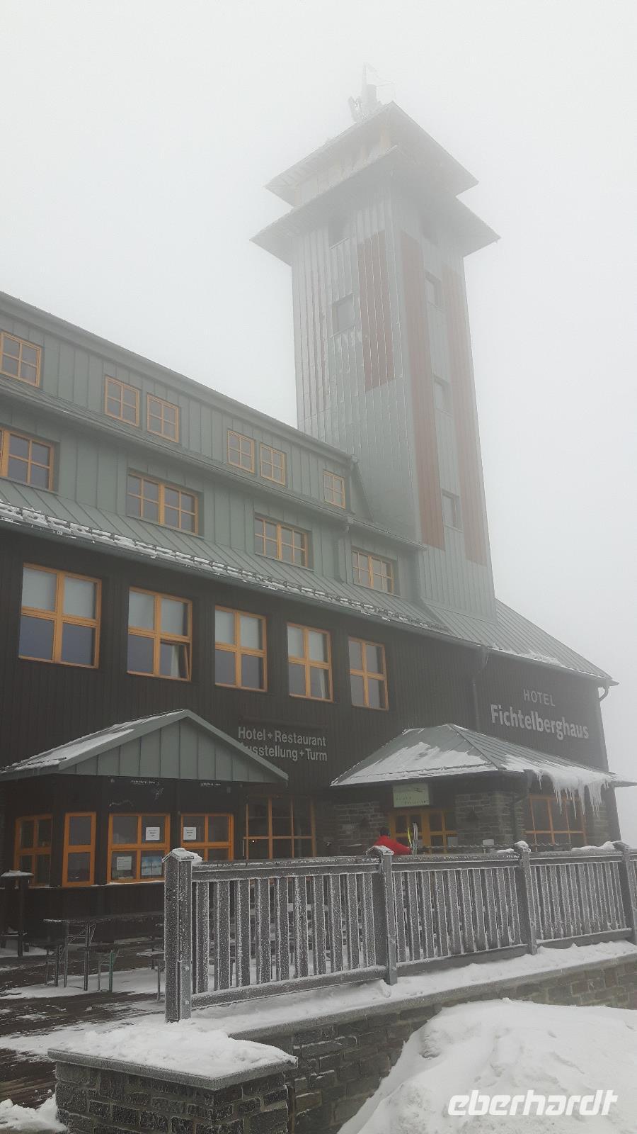 Nach einem stärkenden Frühstück brachen wir mit einem komfortablen Reisebus und dem sympathischen Buschauffeur Dieter zu einer Erzgebirgs-Rundfahrt auf. Am Morgen beherrschte Nebel die komplette Landschaft, aber es konnte nur besser werden... Zunächst erreichten wir Annaberg-Buchholz, wo wir im traditionellen Ratskeller "Zum Neinerlaa" eine typische erzgebirgische Spezialität probierten - das "Neunerlei". Dieses eigentliche Weihnachtsessen der Erzgebirgler besteht aus neun verschiedenen Köstlichkeiten und diese Gerichte (u. a. Bratwurst, Sauerkraut, Linsen, Pilzen und Sellerie) wurden alle auf einem Teller serviert! Schon allein diese Tatsache war ein absolutes Erlebnis! Nach diesem kulinarischen Hochgenuss fuhren wir in das benachbarte Cranzahl weiter, von wo aus uns die Fichtelbergbahn hinauf nach Oberwiesenthal brachte. Dort angekommen, erwartete uns Dieter mit dem Bus und weiter ging es hinauf auf den Fichtelberg! Leider hatten wir keine Sicht, aber immerhin die Tatsache, wieder mal oben gewesen zu sein, zählte für uns. Die Rückfahrt führte uns dann über Mauersberg, Großrückerswalde, Olbernhau und Seiffen.