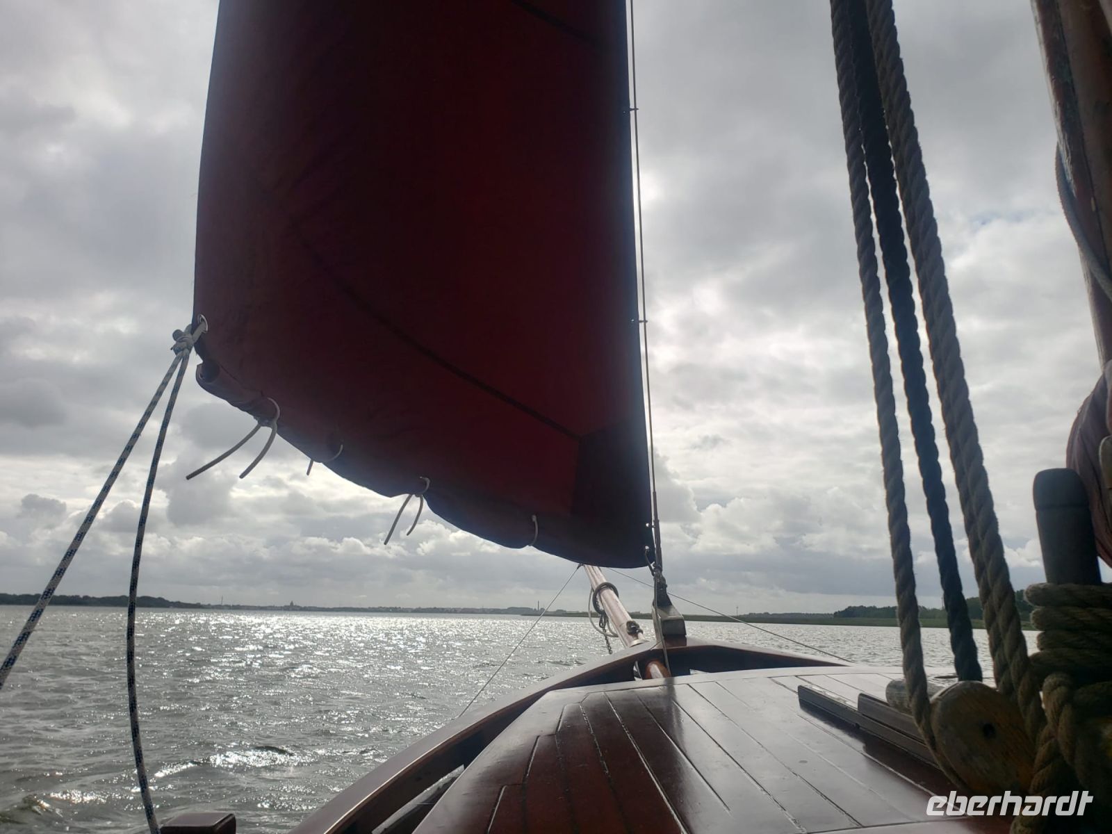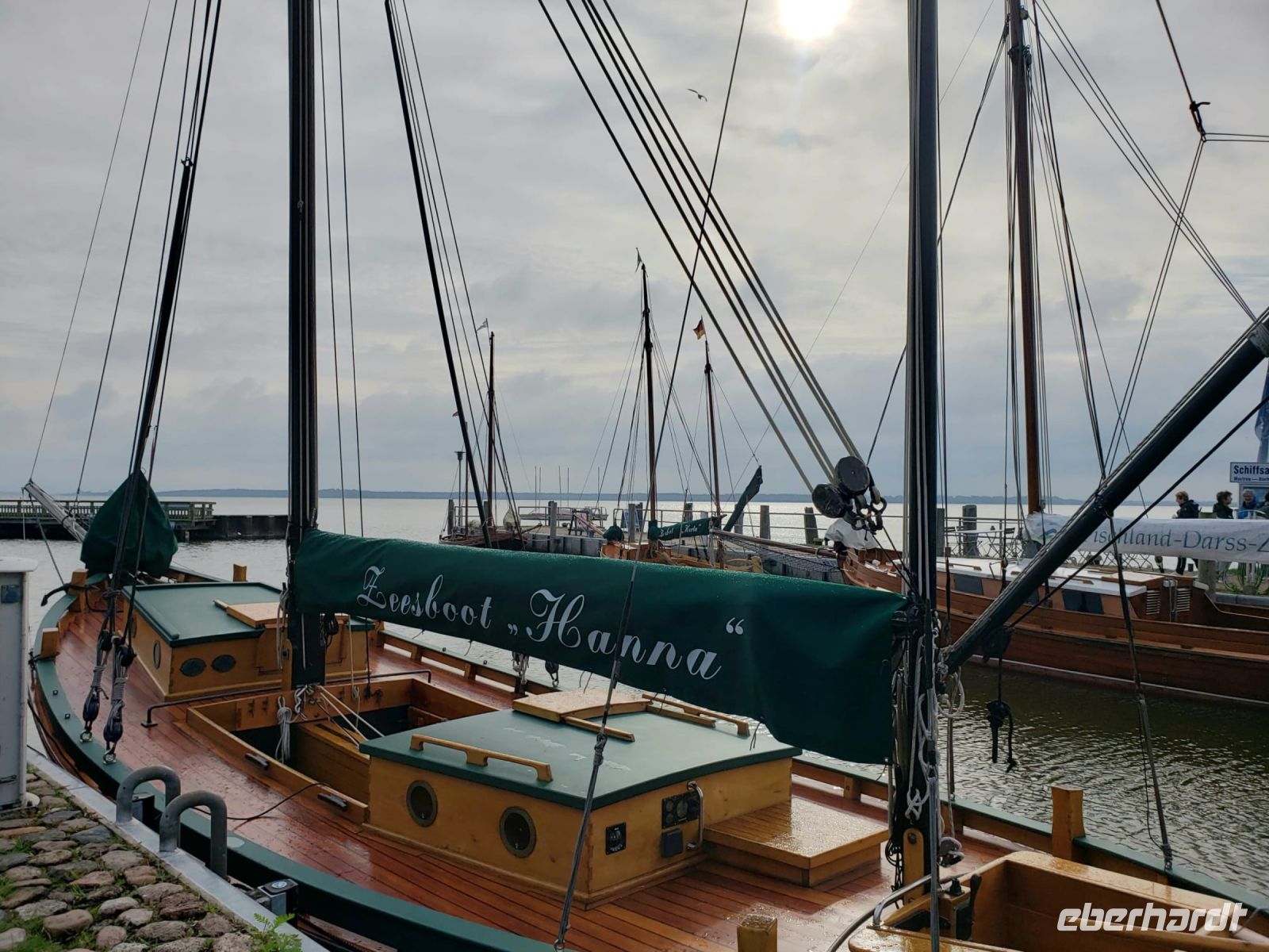 Am Vormittag machen viele von uns eine Zeesenbootfahrt. Kapitän Rainer weiss viel zu erzählen. Zur Gemütlichkeit trinken wir ein Glas Sanddornwein. Es ist wunderschön auf dem Saaler Bodden, wir alle genießen den Segelturn sehr.
