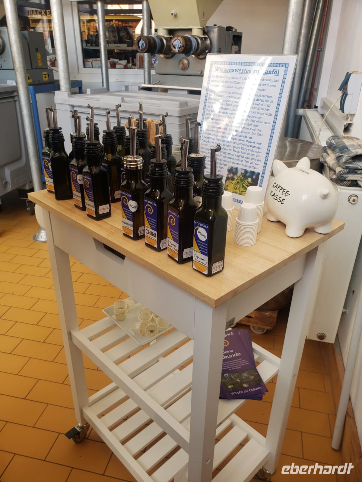 Zuerst besuchen wir die Ostseemühle in Langenhanshagen. Hier werden verschiedene, sehr hochwertige Öle hergestellt. Eine Familie führt diesen Betrieb seit einigen Jahren. Nach einer Führung bekommen wir ein leckeres Mittagessen serviert.