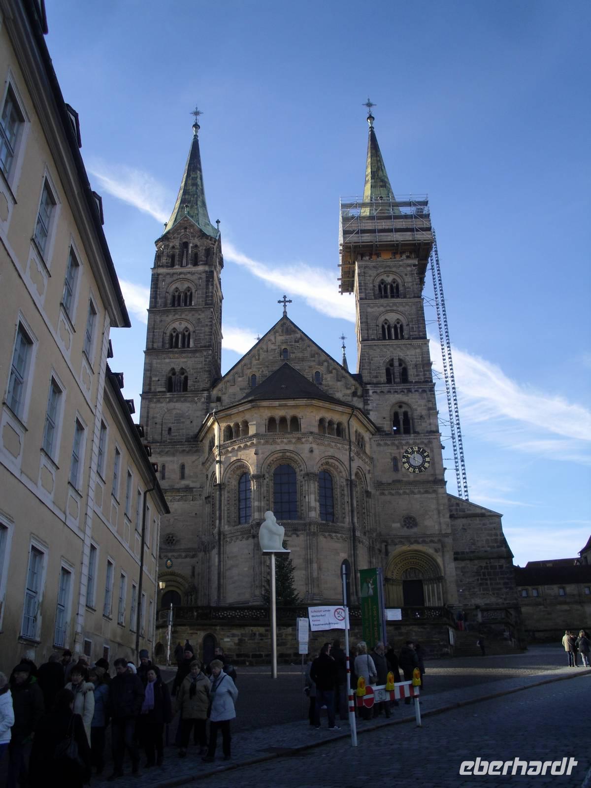 Unser erstes Ziel am heutigen Tag war Bamberg. Während einer Besichtigung erfuhren wir viel Wissenswertes über die Stadt. Besonders sehenswert ist die Altstadt aufgrund ihres einmaligen Stadtensembles, welche im Jahre 1993 auf die UNESCO-Weltkulturerbeliste aufgenommen wurde. Der 4-türmige Kaiserdom auf einem der sieben Hügel Bambergs ist das Herzstück der Stadt und das bedeutendste Kunstwerk im weiten Umkreis. Der Kaiserdom St. Peter und Georg geht auf eine Stiftung von Kaiser Heinrich II. zurück, der Anfang des 11. Jahrhunderts das Bistum Bamberg gründete. Zu den größten Sehenswürdigkeiten zählen das Papstgrab von Clemens II., die einzige vom Vatikan anerkannte Grablege eines Papstes nördlich der Alpen, und der Bamberger Reiter. Im Anschluss an den geführten Stadtrundgang hatten wir noch etwas Freizeit, bevor wir weiter nach Ebermannstadt fuhren. Im Ortsteil Moggast erreichten wir gegen 14 Uhr schließlich die Brennerei der Familie Kormann und erhielten dort erst einmal eine "Fränkische Brotzeit" mit viel Wurst und Käse - einfach köstlich! Wir hörten außerdem viel Wissenswertes über die Tradition des Brennens, denn schließlich befanden wir uns hier im "Land der Brenner und Brauer". Überall sieht man Obstplantagen, unter anderem gibt es hier die größten Süßkirschenplantagen Deutschlands. Nach der Verkostung von vier Schnäpsen und drei Likören waren alle Gäste ziemlich gut drauf und beschwingt fuhren wir über Gößweinstein und anschließend durch das Wiesenttal zu unserem Hotel "Zur Post" in Waischenfeld zurück.