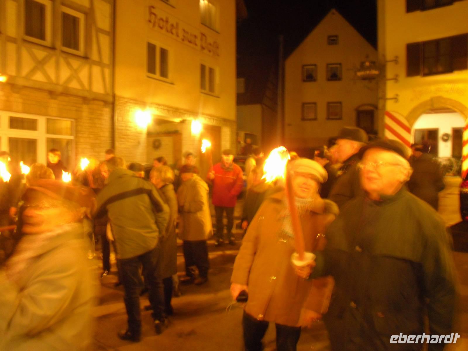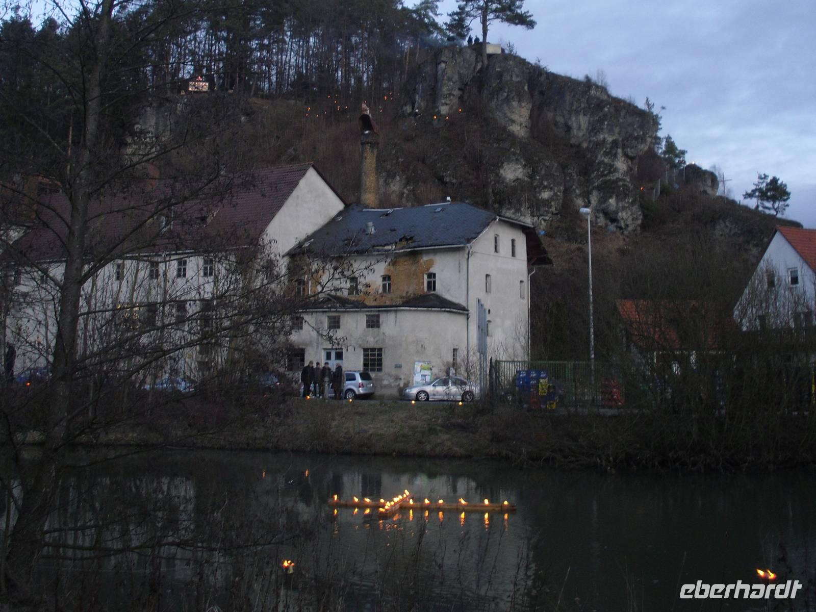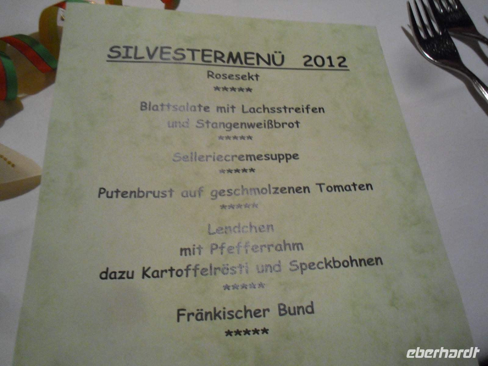 Der letzte Tag des Jahres begann für die meisten unserer Gäste mit einer leichten Wanderung entlang der Wiesent. An einer Schutzhütte angekommen, gab es einen kleinen Schnaps und Gebäck zur Stärkung - lecker! Im Hotel wurden wir anschließend zum fränkischen Eintopfessen erwartet. Danach hatten wir etwas Zeit, um ein kleines Mittagsschläfchen zu halten, bevor am späten Nachmittag eine Fahrt mit unserem Bus in das benachbarte Nankendorf anstand. Hier findet alljährlich traditionell am Silvestertag ein Lichterfest statt. Die traditionellen Lichterfeste mit dem Beschluss der Ewigen Anbetung locken jedes Jahr tausende Besucher in die weihnachtliche Fränkische Schweiz. Pünktlich am späten Silvesternachmittag müssen in Nankendorf bei der Prozession zur Ewigen Anbetung rund 5.000 Lichter - davon 3.000 Wachslichter - rund um die Hänge sowie am Wiesentufer brennen, ein gigantisches Spektakel! Tief beeindruckt waren wir gegen 18 Uhr im Hotel zurück, denn wir mussten uns ja auch noch auf die Silvesterfeier vorbereiten. Wir erhielten heute Abend ein festliches bzw. schmackhaftes 5-Gänge-Menü und der Alleinunterhalter Helmut spielte stimmungsvolle Live-Musik. Viele unserer Gäste nutzten natürlich diese Gelegenheit, um ein Tänzchen zu wagen... Es herrschte ausgelassene Stimmung und beschwingt begannen wir das Neue Jahr - na dann mal "Prosit Neujahr"!