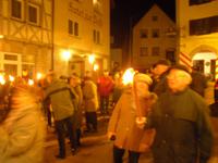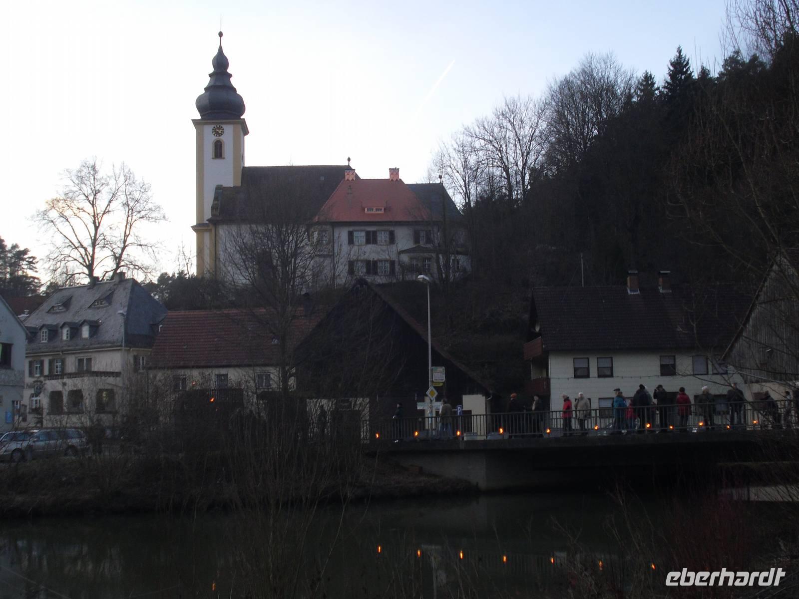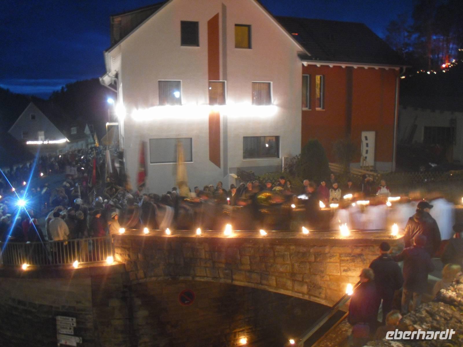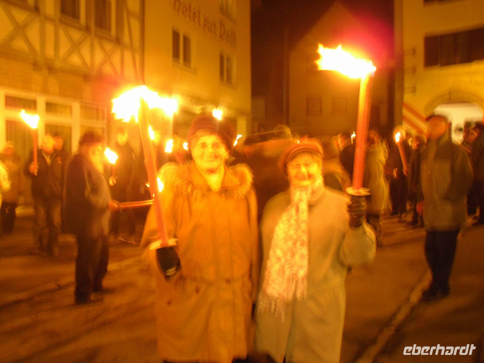 Der letzte Tag des Jahres begann für die meisten unserer Gäste mit einer leichten Wanderung entlang der Wiesent. An einer Schutzhütte angekommen, gab es einen kleinen Schnaps und Gebäck zur Stärkung - lecker! Im Hotel wurden wir anschließend zum fränkischen Eintopfessen erwartet. Danach hatten wir etwas Zeit, um ein kleines Mittagsschläfchen zu halten, bevor am späten Nachmittag eine Fahrt mit unserem Bus in das benachbarte Nankendorf anstand. Hier findet alljährlich traditionell am Silvestertag ein Lichterfest statt. Die traditionellen Lichterfeste mit dem Beschluss der Ewigen Anbetung locken jedes Jahr tausende Besucher in die weihnachtliche Fränkische Schweiz. Pünktlich am späten Silvesternachmittag müssen in Nankendorf bei der Prozession zur Ewigen Anbetung rund 5.000 Lichter - davon 3.000 Wachslichter - rund um die Hänge sowie am Wiesentufer brennen, ein gigantisches Spektakel! Tief beeindruckt waren wir gegen 18 Uhr im Hotel zurück, denn wir mussten uns ja auch noch auf die Silvesterfeier vorbereiten. Wir erhielten heute Abend ein festliches bzw. schmackhaftes 5-Gänge-Menü und der Alleinunterhalter Helmut spielte stimmungsvolle Live-Musik. Viele unserer Gäste nutzten natürlich diese Gelegenheit, um ein Tänzchen zu wagen... Es herrschte ausgelassene Stimmung und beschwingt begannen wir das Neue Jahr - na dann mal "Prosit Neujahr"!