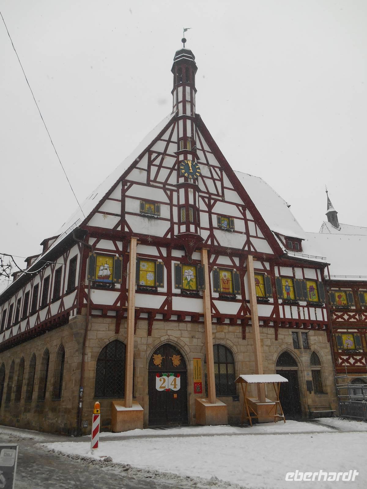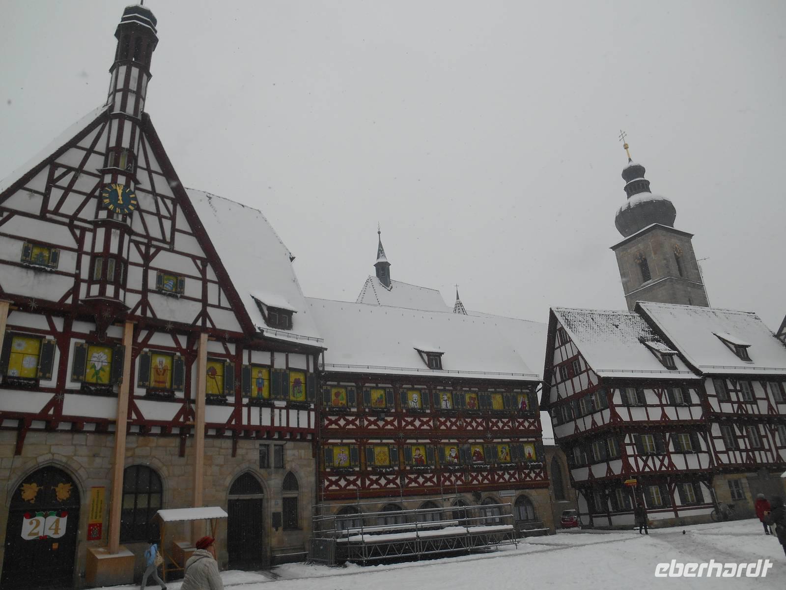 Nach dem - wie bereits gewohnt - reichhaltigen Frühstücksbuffet besuchten wir am Vormittag die Wallfahrtskirche „Vierzehnheiligen". Dieses von Balthasar Neumann geschaffene Bauwerk ist ein architektonischer Höhepunkt im Obermaingebiet und der gilt als der künstlerisch gelungenste Sakralbau des deutschen Barock. Die Innenausstattung ist überwältigend und während einer sehr informativen Führung erhielten wir detaillierte Informationen über diesen Wallfahrtsort. Vom 15. Jahrhundert bis heute streben nämlich Wallfahrer nach Vierzehnheiligen, um den Schutz der 14 Nothelfer zu erbitten. Der „Gnadenort Vierzehnheiligen" - auf einer Wiese hatte vor über 500 Jahren ein Schäfer eine Erscheinung, die der Grundstein für eine der bekanntesten Wallfahrtskirchen Bayerns werden sollte. Die Basilika wurde dann Ende des 18. Jahrhunderts gebaut und liegt am berühmten Jakobsweg, dem Pilgerweg zum Grab des Apostels Jakobus in Santiago de Compostela in Spanien. Mit vielen tollen Eindrücken setzten wir unsere Fahrt fort und legten anschließend einen kurzen Aufenthalt in Forchheim, dem sogenannten „westlichen Tor zur Fränkischen Schweiz", ein. Hier gibt es nämlich zur Weihnachtszeit etwas ganz Besonderes zu sehen und das wollten wir uns natürlich nicht entgehen lassen! Wir unternahmen einen gemütlichen Spaziergang zum Forchheimer Rathaus mit seiner wunderschönen Fachwerkfassade aus dem 15. Jahrhundert, wo jedes Jahr der schönste Adventskalender der Welt zu bestaunen ist - das Forchheimer Rathaus wird hier selbst zum Kalender! Die Fenster werden mit eigens dafür angefertigten Fensterläden versehen, hinter denen sich weihnachtliche Motive verbergen - absolut sehenswert! So langsam nahte die Mittagszeit und wir bekamen etwas Hunger! Dem musste natürlich Abhilfe geschafft werden und so fuhren wir in Richtung Ebermannstadt weiter. Im Ortsteil Moggast erreichten wir gegen 13 Uhr schließlich die Brennerei der Familie Kormann und erhielten dort erst einmal eine „Fränkische Brotzeit" mit viel Wurst und Käse, dazu hausgebackenes Brot - einfach köstlich! Wir hörten außerdem viel Wissenswertes über die Tradition des Brennens, denn schließlich befanden wir uns hier im „Land der Brenner und Brauer". Überall sieht man Obstplantagen, unter anderem gibt es hier die größten Süßkirschen-Plantagen Deutschlands. Nach der Verkostung von vier Schnäpsen und drei Likören waren alle Gäste ziemlich gut drauf und beschwingt fuhren wir über Gößweinstein und anschließend durch das Wiesenttal zu unserem Hotel in Wernsdorf zurück.
