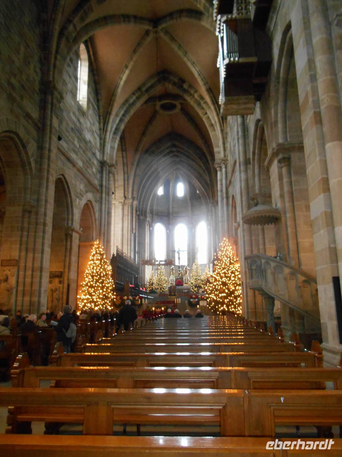 Am letzten Tag des Jahres statteten wir der Stadt Bamberg einen Besuch ab. Während eines geführten Rundganges erfuhren wir viel Wissenswertes über die Stadt. Besonders sehenswert ist die Altstadt aufgrund ihres einmaligen Stadtensembles, welche im Jahre 1993 auf die UNESCO-Weltkulturerbe-Liste aufgenommen wurde. Der 4-türmige Kaiserdom auf einem der sieben Hügel Bambergs ist das Herzstück der Stadt und das bedeutendste Kunstwerk im weiten Umkreis. Der Kaiserdom St. Peter und Georg geht auf eine Stiftung von Kaiser Heinrich II. zurück, der Anfang des 11. Jahrhunderts das Bistum Bamberg gründete. Zu den größten Sehenswürdigkeiten zählen das Papstgrab von Clemens II., die einzige vom Vatikan anerkannte Grablege eines Papstes nördlich der Alpen, und der Bamberger Reiter. Im Anschluss an die sehr informative Führung hatten wir noch etwas Freizeit, bevor wir nach Wernsdorf zurück fuhren, um uns noch etwas Ruhe zu gönnen - denn erfahrungsgemäß sollte es ja heute ein langer Abend werden! Manch einer nutzte die Zeit, um ein Mittagsschläfchen zu halten. Eigentlich sollte es nämlich am Nachmittag in das im Wiesenttal gelegene Nankendorf gehen - leider mussten wir aufgrund einer Unwetterwarnung mit Glatteis- bzw. Blitzeisgefahr dieses traditionell am Silvestertag in Nankendorf stattfindende Lichterfest absagen; unser Buschauffeur Frank konnte es nicht verantworten und die Sicherheit unserer Fahrgäste geht bekanntlich vor...! Die traditionellen Lichterfeste mit dem Beschluss der Ewigen Anbetung locken übrigens jedes Jahr tausende Besucher in die weihnachtliche Fränkische Schweiz. Pünktlich am späten Silvesternachmittag müssen in Nankendorf bei der Prozession zur Ewigen Anbetung rund 5.000 Lichter - davon 3.000 Wachslichter - rund um die Hänge sowie am Wiesentufer brennen, ein gigantisches Spektakel! Es hat in diesem Jahr nicht sollen sein, schade! Naja, jetzt hatten wir uns ja auch noch auf die Silvesterfeier vorzubereiten. Wir erhielten heute Abend ein festliches bzw. schmackhaftes 3-Gänge-Menü und der Alleinunterhalter Werner spielte stimmungsvolle Live-Musik. Viele unserer Gäste nutzten natürlich diese Gelegenheit, um ein Tänzchen zu wagen... Es herrschte ausgelassene Stimmung und beschwingt begannen wir das Neue Jahr - na dann mal „Prosit Neujahr!".