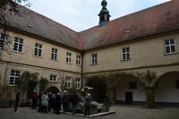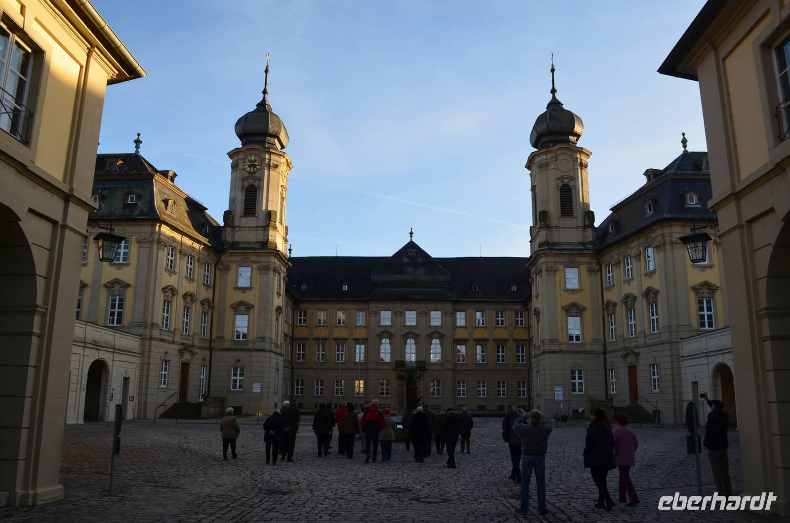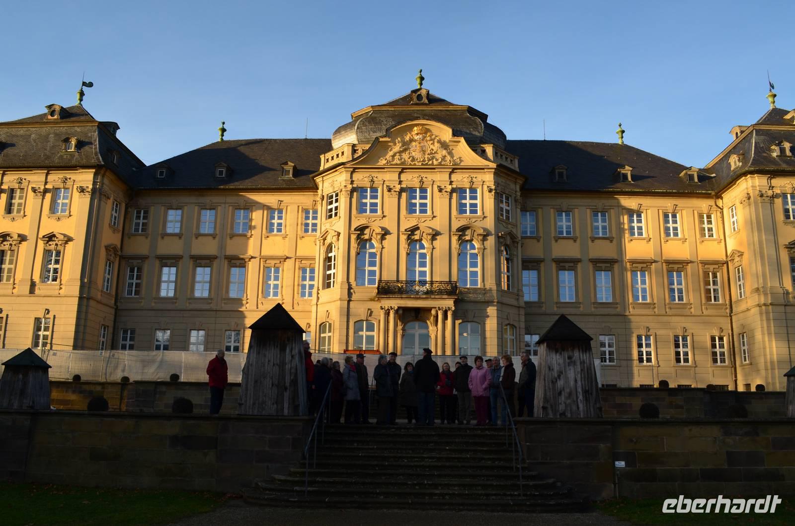 Unternehmungslustige waren von 15:00 bis 16:00 Uhr zu einem Spaziergang rund um das Barockschloss Werneck eingeladen, wo uns Herr Wegscheid (Senior) die wichtigsten Eckpunkte der Geschichte und der Nutzung des Schlosses heute erklärte. Dabei hatten wir auch Gelegenheit die barocke „Baltasar Neumann Kapelle" im Schloss zu besichtigten.