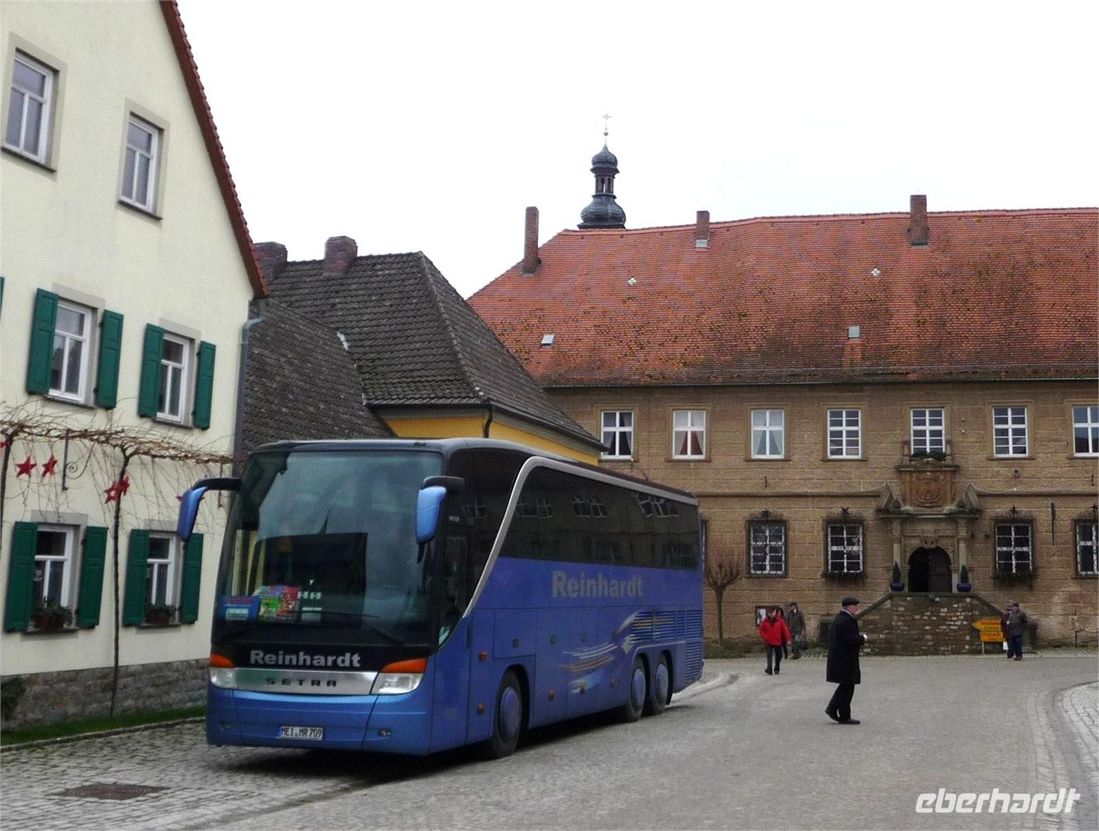 Vom alten Bahnhof in Volkach brachte uns unser Bus danach nach Zeilitzheim, wo wir am Schloss Zeilitzheim durch die Besitzerin, Frau von Halem, herzlich begrüßt wurden.