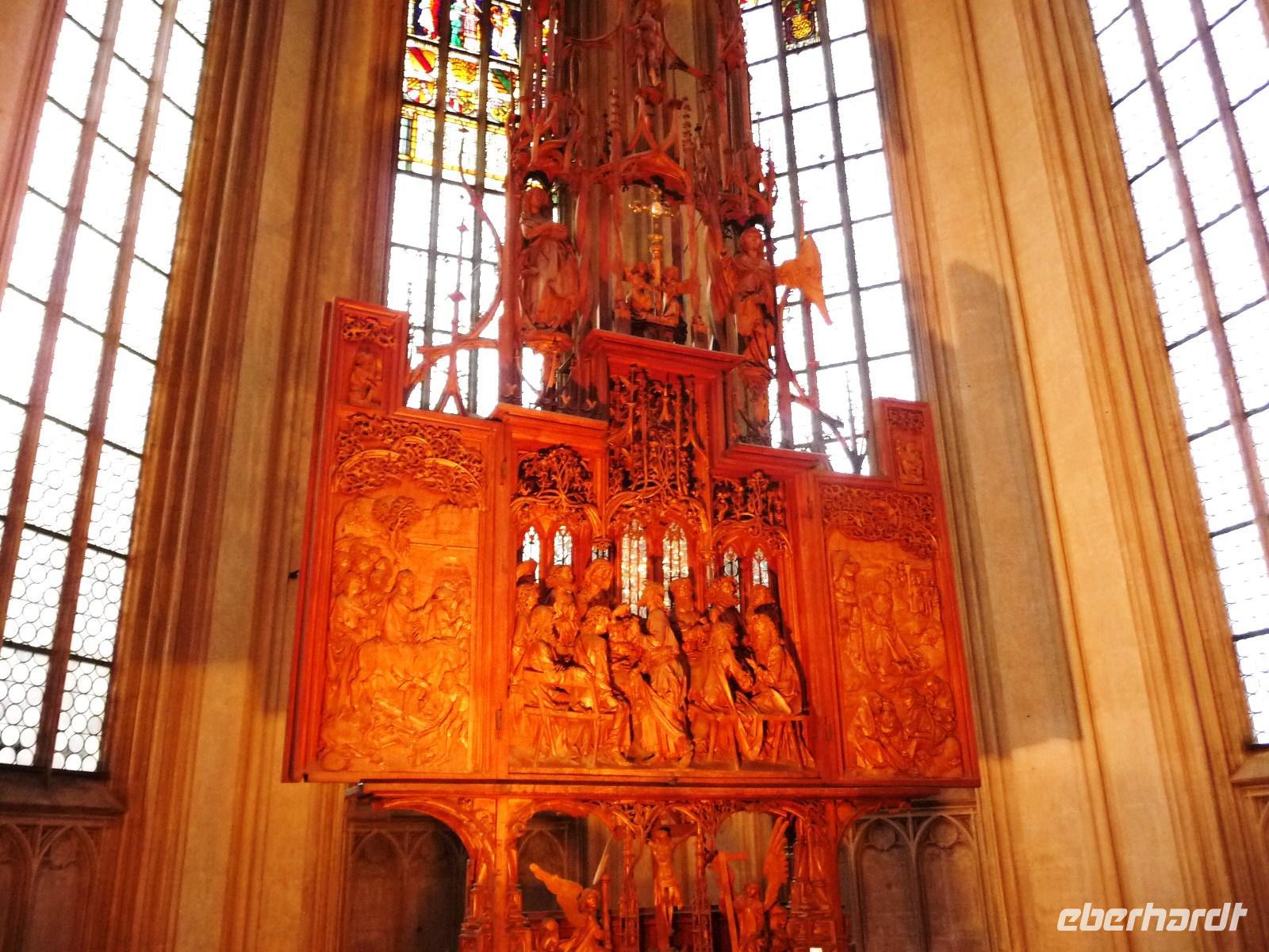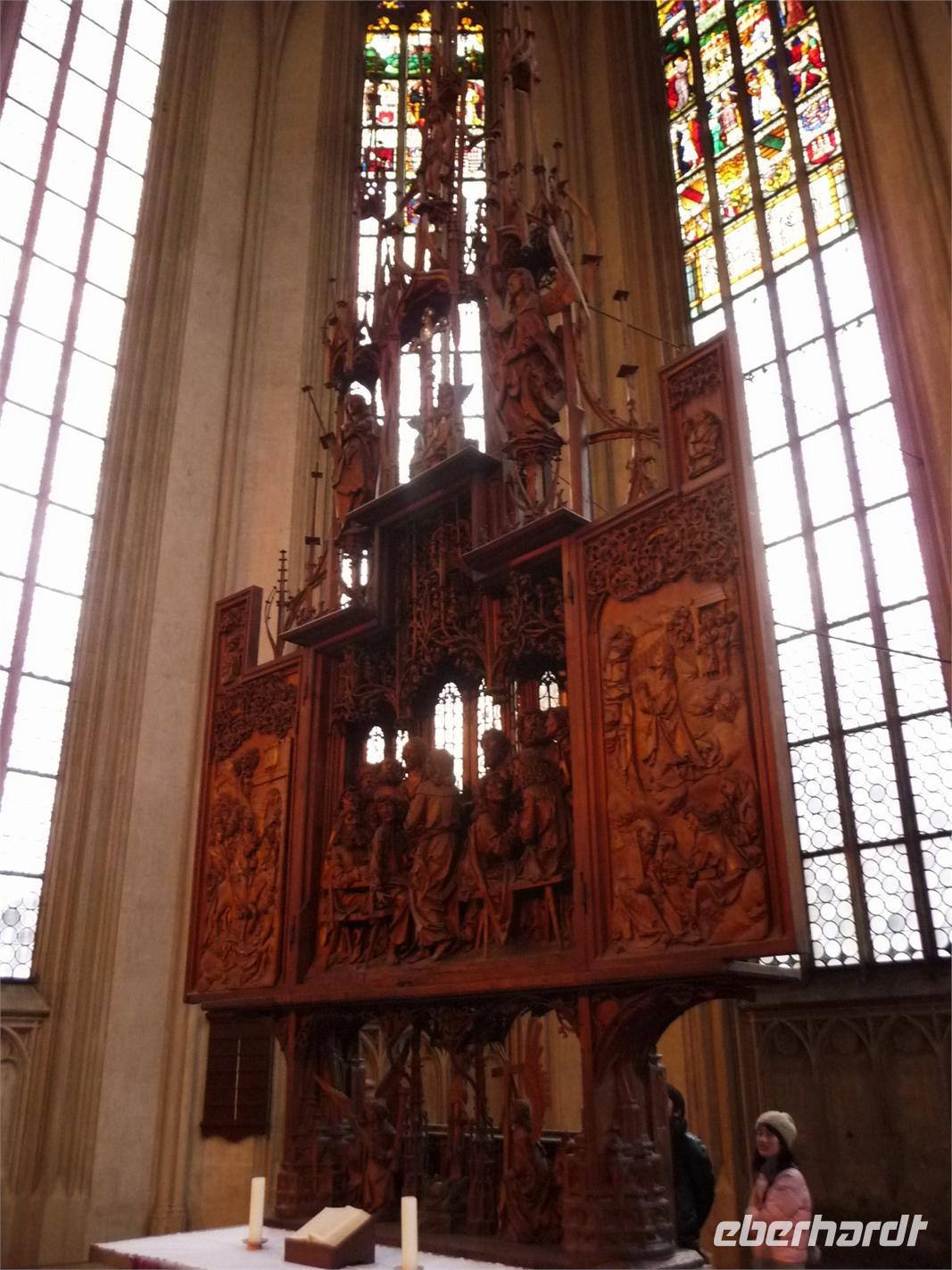 Der weitere gemeinsame Fußweg führte uns zur St.-Jacobs-Kirche, als eberhardt-Wow besichtigten wir diese schöne Kirche mit ihren weltberühmten Altären. Den „Zwölfbotenaltar“ von schwäbischen Meistern und den „Heilig-Blut-Altar“ von Tilman Riemenschneider erklärte uns die freundliche Kirchenführerin.