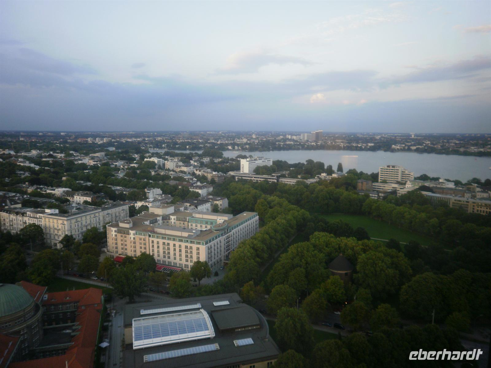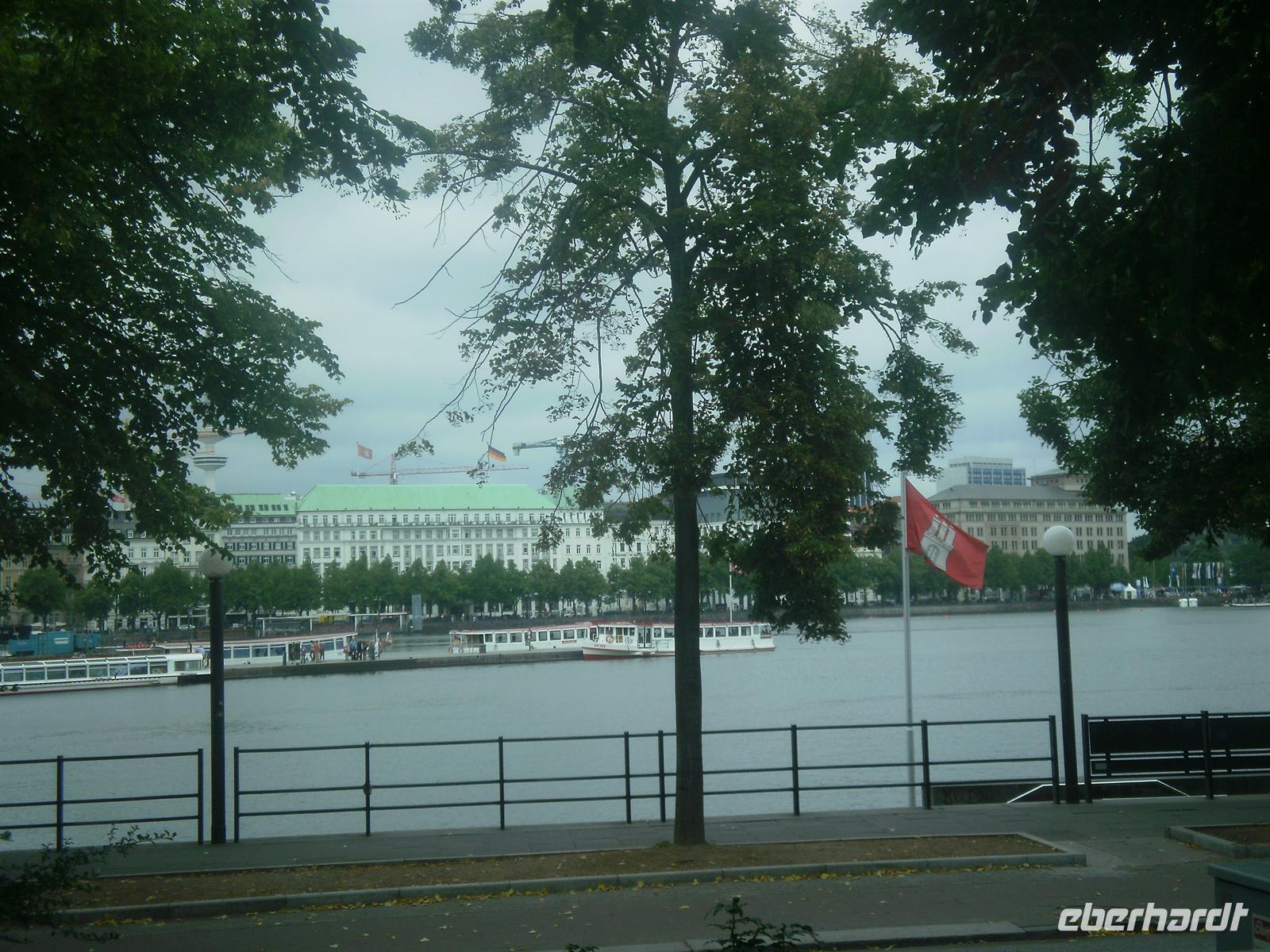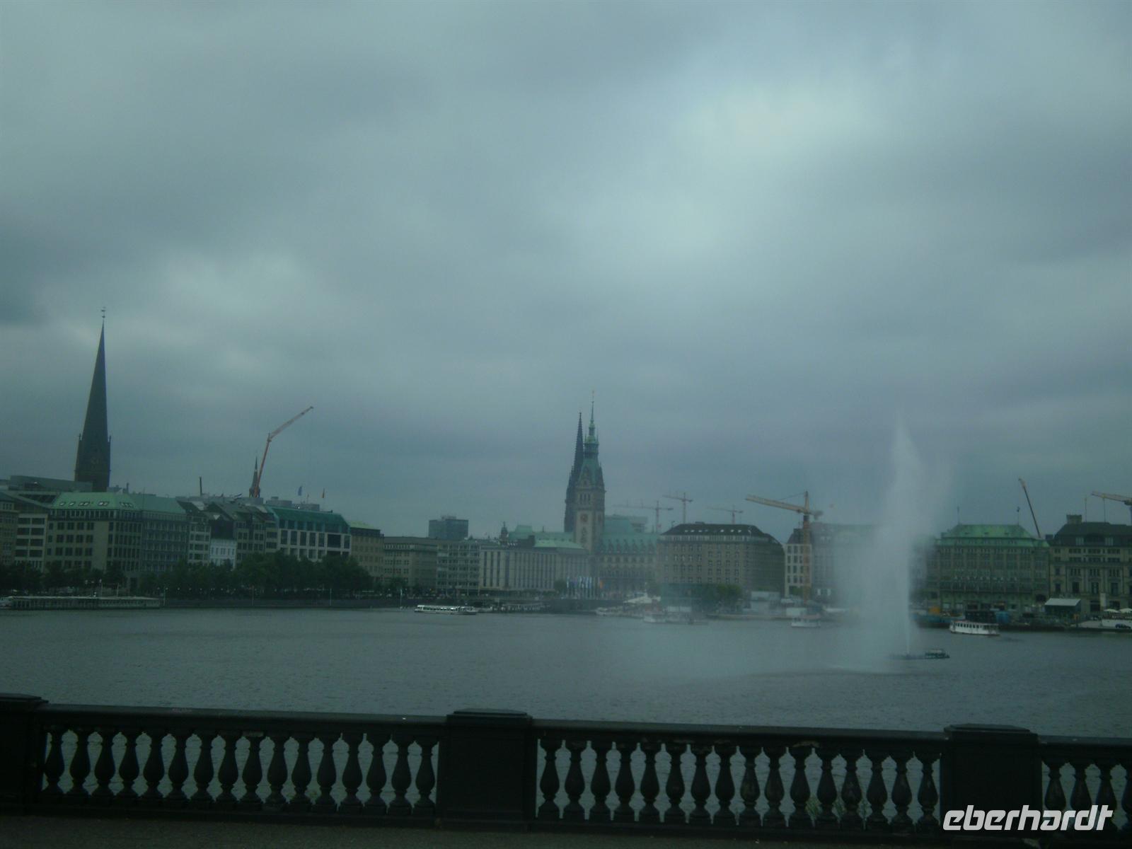 Einige Gäste von uns nutzten die Gelegenheit und fuhren gleich früh am Morgen zum St. Pauli-Fischmarkt - diese trafen wir später wieder. Nach einem reichhaltigen Frühstücksbuffet ging es für unsere "Langschläfer" kurz nach 9 Uhr los und letztendlich war unsere Gruppe an den St. Pauli-Landungsbrücken beziehungsweise mit Beginn der Stadtrundfahrt wieder komplett. Zuerst ging es zum Wahrzeichen Hamburgs, dem "Michel". Die evangelische Hauptkirche "Sankt Michaelis" ist die bekannteste Kirche Hamburgs, da sie von Seeleuten auf einlaufenden Schiffen gut sichtbar ist. Sie gilt als bedeutendste Barockkirche Norddeutschlands und ist dem Erzengel Michael geweiht, der als große Bronzestatue über dem Hauptportal hängt. Danach ging es zur Außenalster - nur in Hamburg findet man schließlich einen See mitten in der Großstadt! Wir fuhren mit unserem Bus einmal um die Außenalster, dort säümten viele prachtvolle Villen die Straße. Natürlich legten wir hier einen kurzen Stop ein und genossen die herrliche Atmosphäre an der Alster.