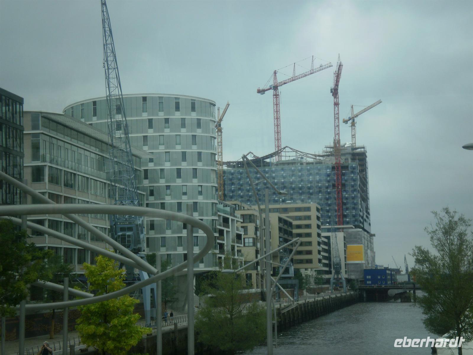 Danach führte uns der Weg in die Speicherstadt. Die heute denkmalgeschützte, von Fleeten durchzogene Speicherstadt entstand gegen Ende des 19. Jahrhunderts in eindrucksvoller Backsteinbauweise. An der Stelle eines malerischen Barockviertels mit Kaufmannsgrachten und winkligen Fachwerkgassen errichteten die Hamburger Kaufleute ihre Lager. Durch den Ausbau des Freihafens sicherten sie ihre Handelsmacht, nachdem Hamburg 1888 ins Deutsche Zollgebiet eingegliedert worden war. Vieles hat sich im Laufe der Jahre am Bild der Speicherstadt verändert, trotzdem ist das ganz spezielle Flair erhalten geblieben. Noch heute lagern in der Speicherstadt Unmengen von Teppichen, Gewürzen und Tee. Auf dem Weg zum Kreuzfahrt-Terminal waren wir nun auf einer riesigen Baustelle angekommen, hier entsteht nämlich Hamburgs bedeutendstes städtebauliches Projekt - die Hafen-City. Man kann auch sagen, eine neue Stadt mitten in Hamburg mit unter anderem modern Wohnhäusern, Bürokomplexen und der neuen Elbphilharmonie. Schließlich erreichten wir den Hamburger Hafen - von der imposanten Köhlbrandbrücke hat man übrigens den besten Blick über dieses riesige Areal. Der Hamburger Hafen ist schließlich der größte deutsche Seehafen und gehört zur Spitzengruppe der europäischen Umschlagplätze. Gegen Ende der Stadtrundfahrt fuhren wir durch den Neuen Elbtunnel und danach entlang der prächtigen Elbchausee zum Ausgangspunkt unserer Tour, den St. Pauli-Landungsbrücken, zurück.