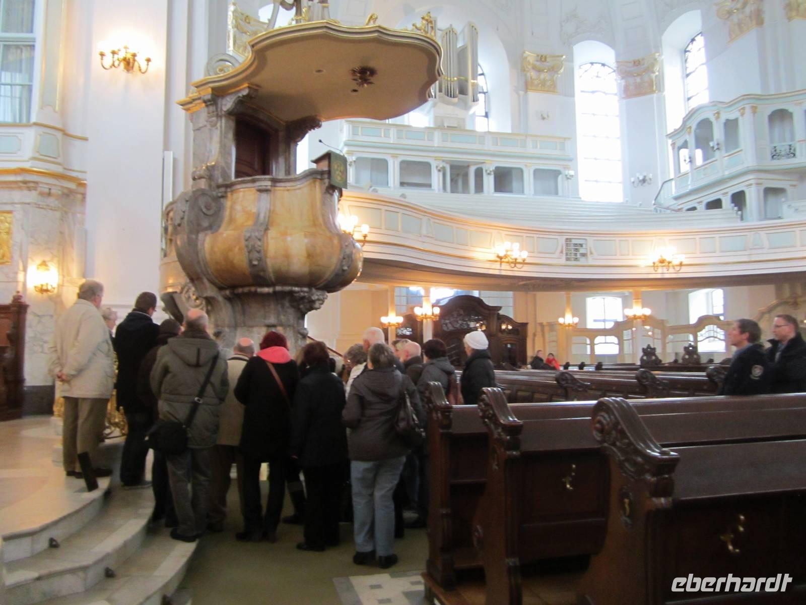 erklärt er uns sehr unterhaltsam ganz Hamburg. Unsere Fahrt geht entlang des Hafenviertels, über die Köhlbrandbrücke (eins der Wahrzeichen von Hamburg) durch den Elbtunnel zur Reeperbahn, dann zum "Michel"(St.Michaeliskirche) dem berühmten Wahrzeichen der Stadt. Am Turm sieht man Deutschlands größte Kirchturmuhr. Im Inneren der Kirche beeindruckt vor allem die große Empore. Nach unserem kurzen Stopp fahren wir zum Jungfernstieg (Hamburgs beliebteste Flaniermeile), der Binnen -u. Außenalster, entlang der Geschäftsstraßen, vorbei am Hauptbahnhof, zum Rathausmarkt. Eine kurze Pause erlaubt einen Blick in das Innere des prunkvollen Rathauses. An den Landungsbrücken verabschieden wir unseren Stadtführer und planen unsere Freizeit. Für einige von uns ist es das Miniatur Wunderland mit der größten Modellbahnausstellung der Welt, für die anderen der Jungfernstieg und Rathausplatz.Am Abend fährt ein weitererTeil der Gruppe zu den Musicals und der Kiezführung.