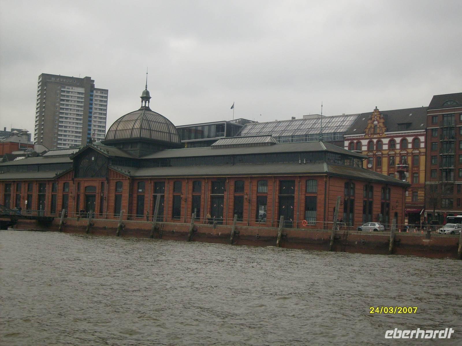 Nach dem Frühstück und dem Kofferladen fuhren wir ein letztes Mal zu den Landungsbrücken. Unsere Fischmarkt-Besucher erwarteten uns bereits, schließlich mußten ja die reichlich gekauften Waren im Bus verstaut werden.