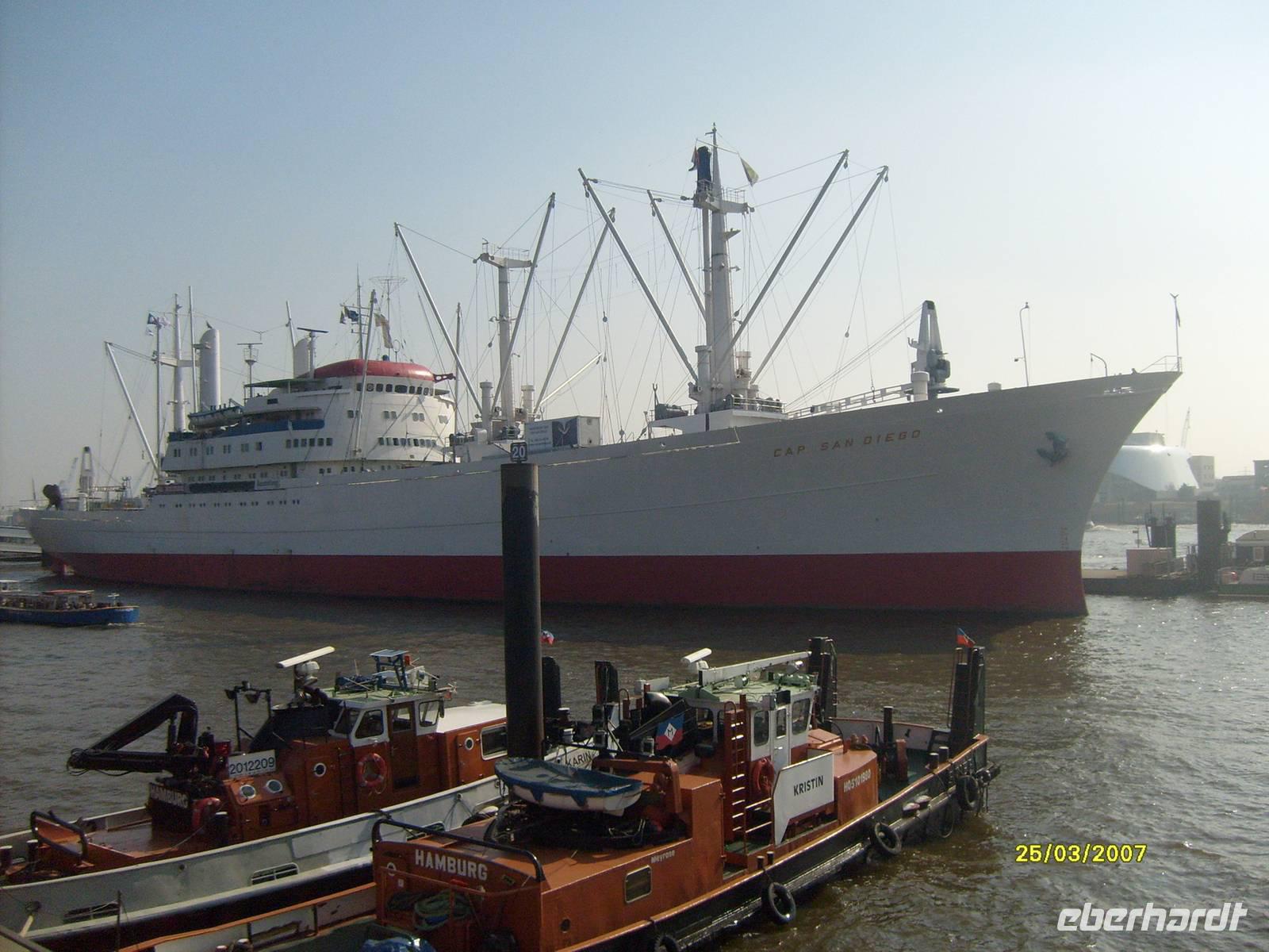 Es gibt immer wieder Neues und Interessantes zu entdecken: vorbei am Fischmarkt, sehen wir die Köhlbrandbrücke, das gewaltige Containerschiff "COSCO", Theater "König der Löwen", die noch im Bau befindliche Elbphilharmonie in der Speicherstadt, der weiße Schwan "Cap San Diego" und der Zweimaster "Rickmer Rickmers".