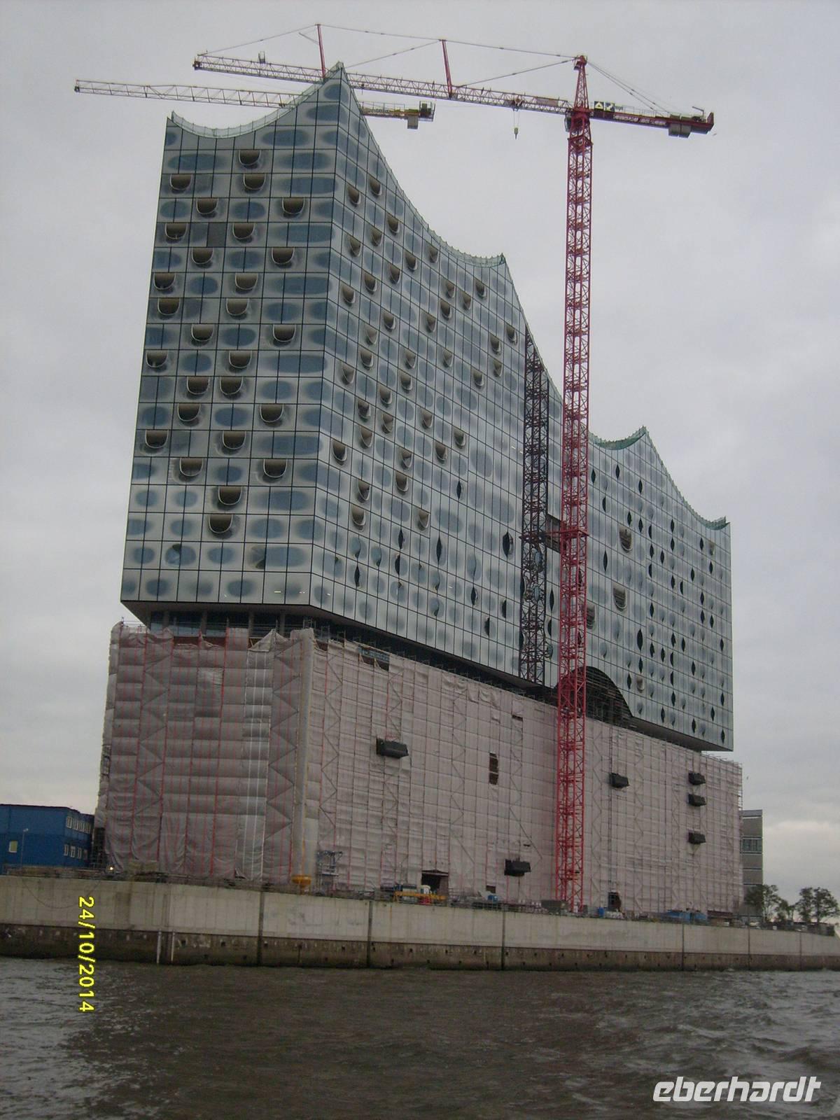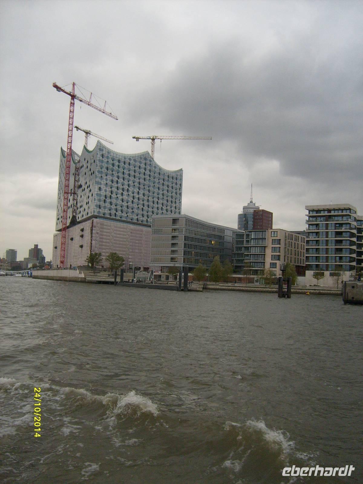Es gibt ja immer wieder Neues und Interessantes zu entdecken: vorbei am Fischmarkt, sehen wir die Köhlbrandbrücke, gewaltige Containerschiffe, Theater "König der Löwen" + das neugebaute Theater für das Musical "Das Wunder von Bern", die noch im Bau befindliche Elbphilharmonie in der Speicherstadt, der weiße Schwan "Cap San Diego" und der Zweimaster "Rickmer Rickmers".