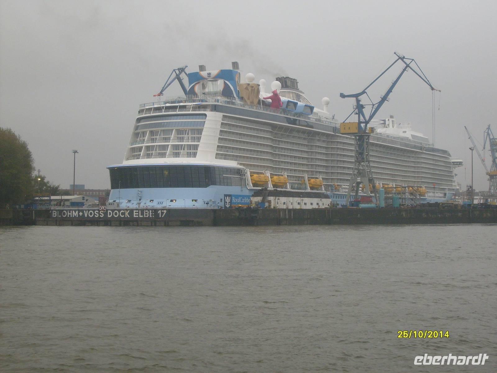 Für Inspektionsarbeiten lag das drittgrößte Kreuzfahrtschiff der Welt bei Blohm & Voss im Hamburger Hafen.