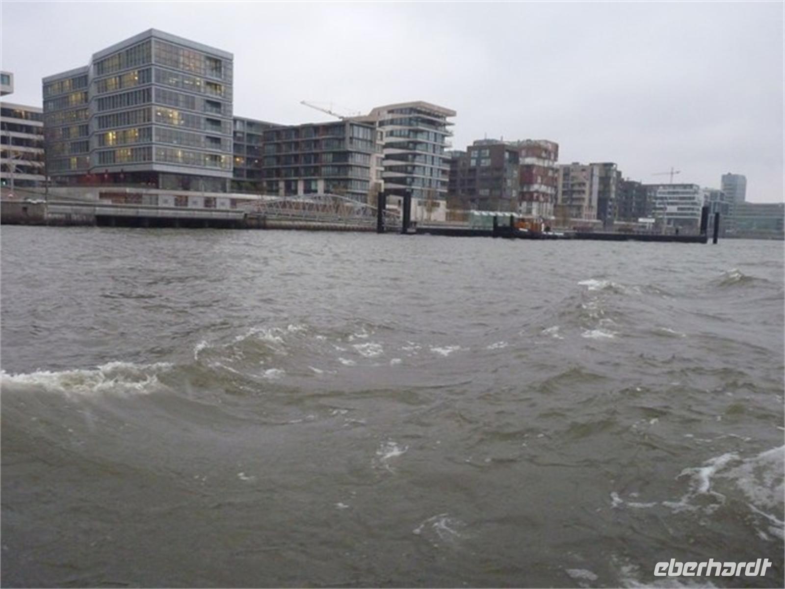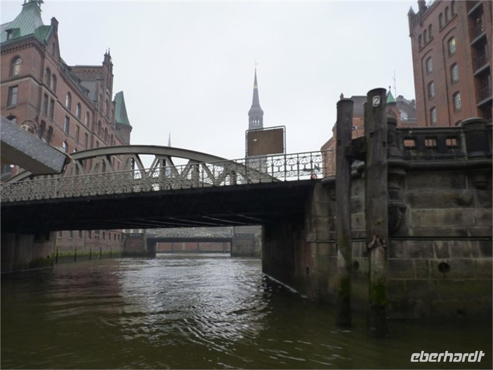 Unser Kapitän erklärte uns humorvoll das Hafenviertel mit der Speicherstadt und lotste uns unter manch kleiner Brücke hindurch.