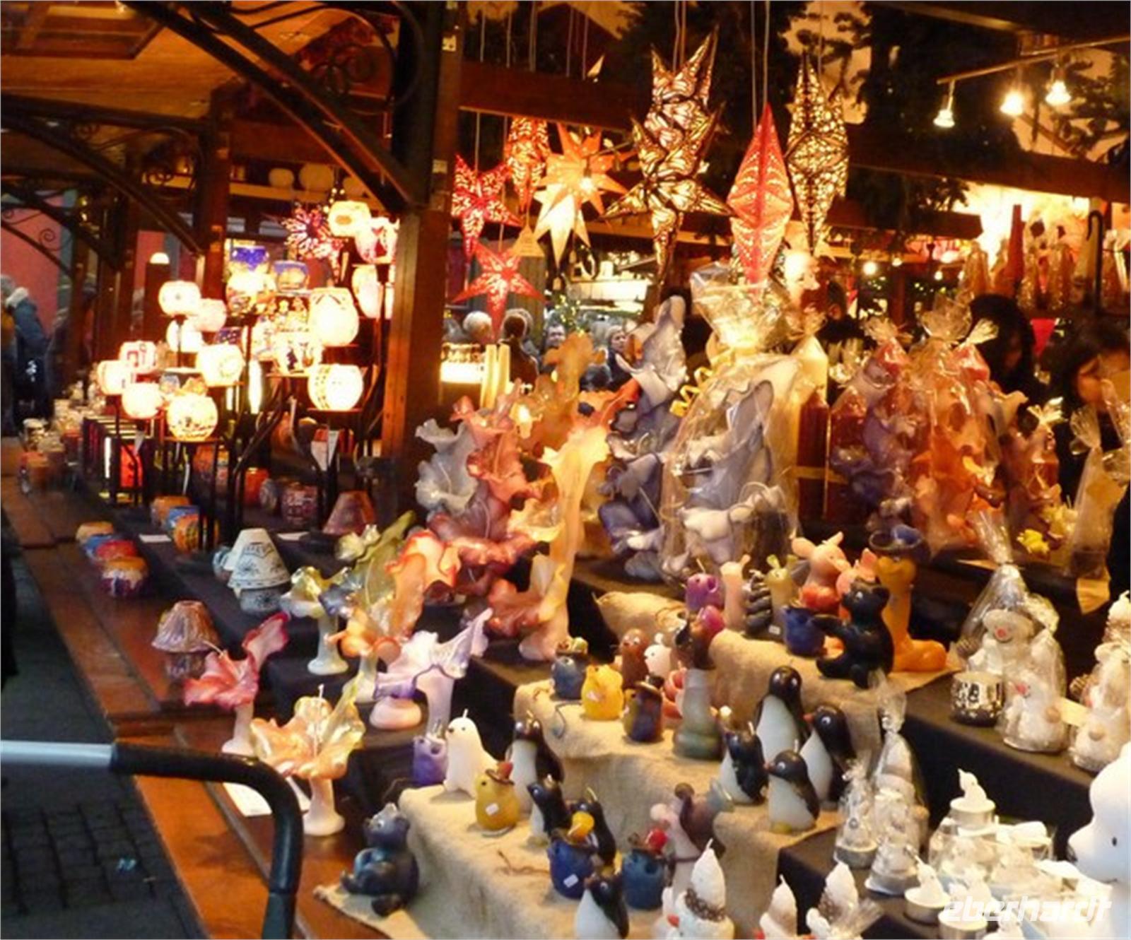 An den Ständen verführte man uns mit Glühwein, Feuerzangenbowle, Eierpunsch, Fleischspießen, Bratwürstchen, Fischbrötchen, Kandierte Mandeln und vielen mehr.