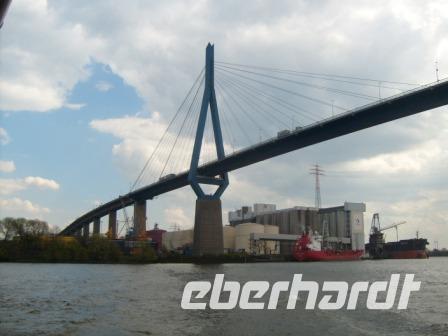 Wir fuhren über die Köhlbrandbrücke, welche 1974 nach 4 Jahren Bauzeit eröffnet wurde. Mit ihrer markanten Bauweise ist sie zu einem Wahrzeichen des modernen Hamburg geworden. Von der Köhlbrandbrücke hat man einen grandiosen Ausblick auf Hafen, Stadt und Elbtal. Unser Ziel an diesem frühen Nachmittag waren die Landungsbrücken in St. Pauli.