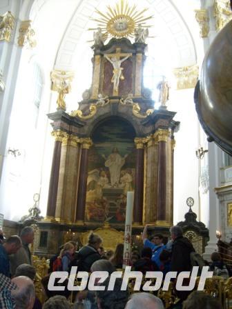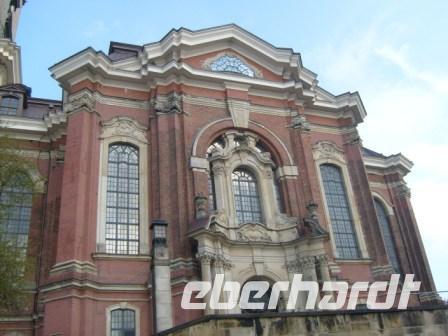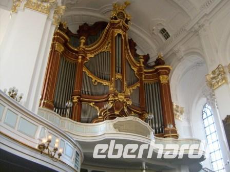 Nach einem ausgiebigen und sehr abwechslungsreichen Frühstück starteten wir zu den Landungsbrücken. Unser örtlicher Stadtführer erwartete uns bereits zu einer Stadtrundfahrt. Wir fuhren über die Reeperbahn zur St. Michaelis Kirche, dem Wahrzeichen der Hansestadt. Von den Hamburgern auch liebevoll „Michel“ genannt. Geweiht ist sie dem Erzengel Michael, der als große Bronzefigur über dem Hauptportal steht. Für viele Architekturfreunde zählt die Barockkirche mit der markanten Haube zu den schönsten Kirchen Norddeutschlands. 3 Orgeln besitzt die Kirche, wobei die größte aus dem Jahre 1961 stammt und auf stolze 5 Manuale kommt.