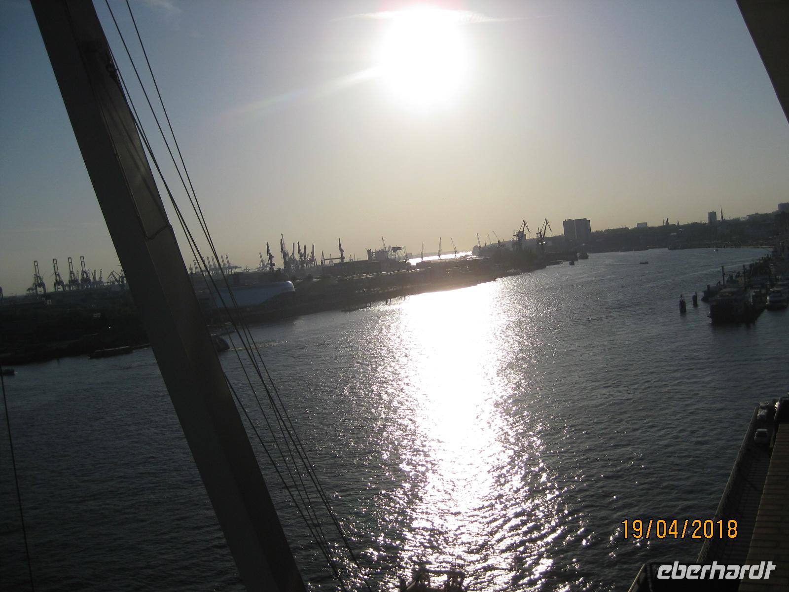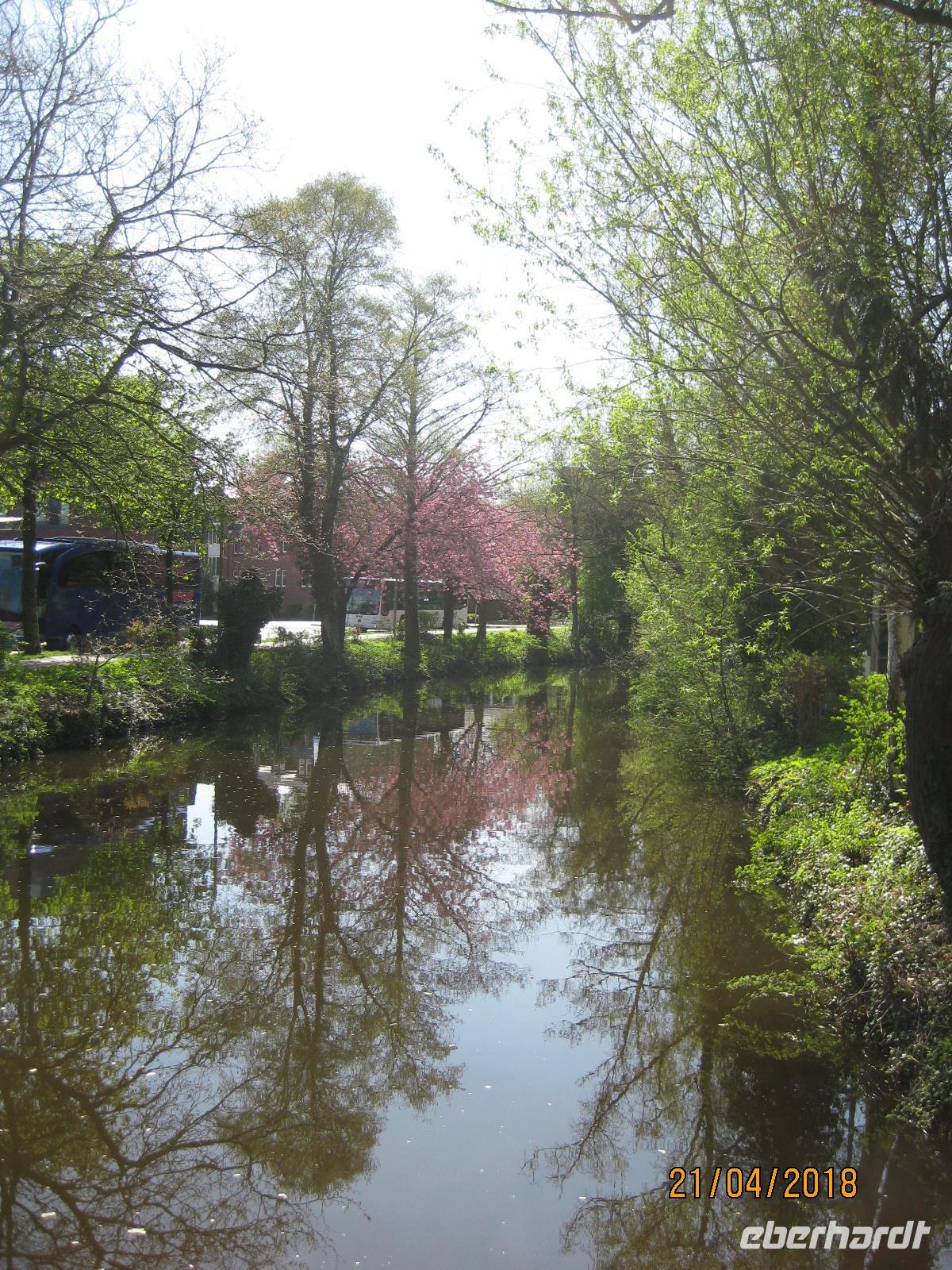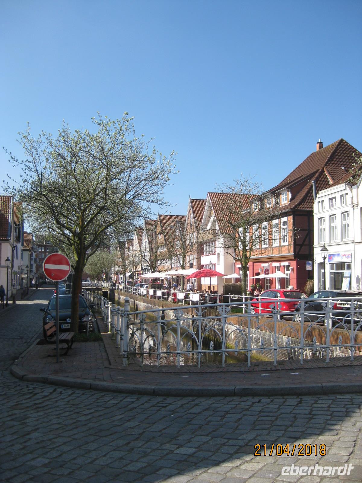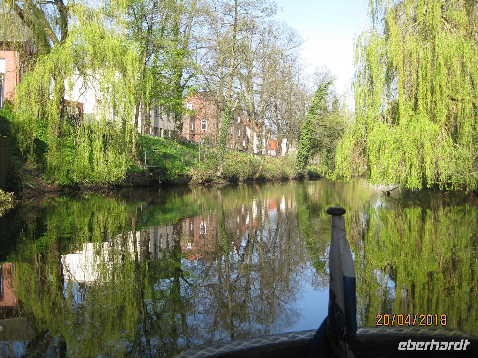 Erneut bei strahlendem Sonnenschein beginnen wir auch den heutigen Tag mit einem ausgiebigen Frühstück. Nach dem Frühstück spazieren wir noch einmal durch Stade zum Holzhafen. Hier erwartet man uns bereits. Zwei Kähne stehen für uns bereit und wir werden heute die Stadt Stade vom Wasser aus kennenlernen. Das herrlich warme Wetter lädt dazu regelrecht ein. Etwa eine Stunde fahren wir rundum der Stadt und erhalten so noch einmal einen ganz anderen Blickwinkel auf die Stadt.