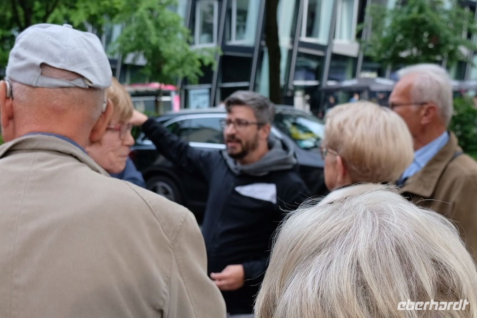 6.00 Uhr starteten wir mit unserem Eberhardt-Reisebus am Flughafen. In Döbeln, Leipzig und Klieken stiegen weitere Gäste zu und komplettierten unsere Reisegruppe von 42 Personen. Das Programm stellte ich im Bus schon einmal vor. Am frühen Nachmittag erreichten wir dann die Landungsbrücken am Hamburger Hafen. Hier wartete schon der Chef der Schifffahrts-Gesellschaft und begrüßt uns ganz zünftig in seiner Stadt und auf seinem Wasser. Wir stiegen auf sein Schiff und dann erlebten wir den Hamburger Hafen vom Wasser aus. Wir passierten die Ellerholz-Schleuse und hatten dann einen tollen Blick auf die Elphi, so wird die Elbphilharmonie liebevoll genannt. Auch Riesen- Containerschiffe laufen Hamburg an, erst wenn man unmittelbar daran entlang fährt bekommt man eine Ahnung von den Dimensionen und dem Ladevolumen dieser Schiffe. Am Elphi-Anleger endete die erste Etappe unserer Hafen-Entdeckungstour. Hier hieß es aussteigen. In 2 Gruppen erkundeten wir nun mit 2 Stadtführern zu Fuß die Hafenstadt.