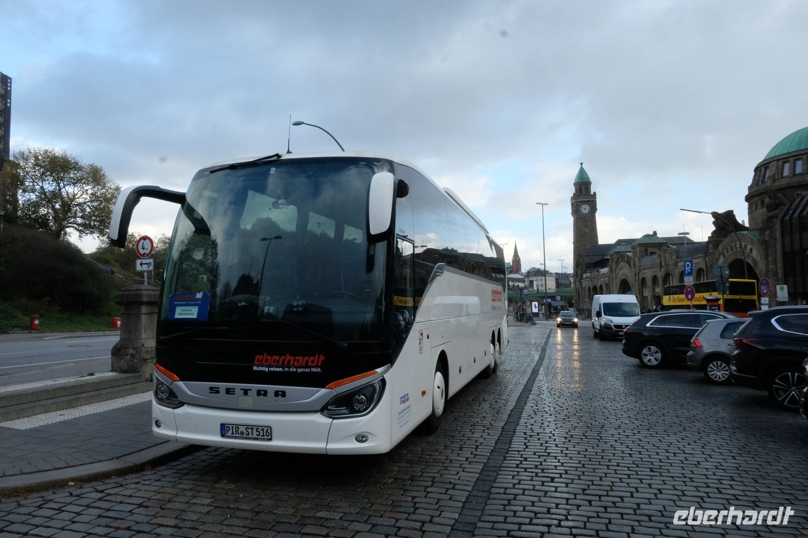 6.00 Uhr starteten wir mit unserem Eberhardt-Reisebus und Maik am Steuer am Flughafen. In Klipphausen, Döbeln, Leipzig und Dessau stiegen weitere Gäste zu und komplettierten unsere Reisegruppe von 30 Personen. Den Programmablauf stellte ich im Bus schon einmal vor. Leider verzögerte sich unsere Ankunft in Hamburg durch viele Staus um 60 Minuten, sodass sich unser Nachmittagsablauf änderte und wir mit 2 Stadtführern zunächst die Speicherstadt erkundeten. Anschließend brachte uns der Bus zu unseren Hotels. Starkes Verkehrsaufkommen verzögerte allerdings auch hier unsere Ankunftszeiten. Das Mövenpick-Hotel ist ein besonderes Hotel, weil es mal ein altes Wasserwerk war. Ein Teil der Gruppe hatte nun Freizeit, und konnte Hamburg auf eigene Faust erleben. Der andere Teil fuhr mit dem Bus auf die Reeperbahn, denn dort erwartete uns eine besondere St. Pauli Kiezführung. Der Guide, selbst im Kiez lebend, führte uns durch den berühmten Stadtteil von Hamburg. Vorbei an der Davidwache und dem Silbersack, der wohl berühmtesten Kneipe auf dem Kiez ging es bis zum Beatles-Platz. Zwischendurch war noch die Möglichkeit einen zünftigen Imbiss einzunehmen. So Vieles erfuhren wir noch, dass die Beatles ihre Karriere in Hamburg begannen, wie der "Silbersack" gerettet wurde und warum Altona diesen Namen hat - "all zu nah" an der begüterten Stadt Hamburg lag dieses Örtchen, das lange zu Dänemark gehörte. Am Beatles-Platz dann verabschieden wir uns herzlich von unseren Guides. Mit Taxen fuhren wir zurück zum Hotel.