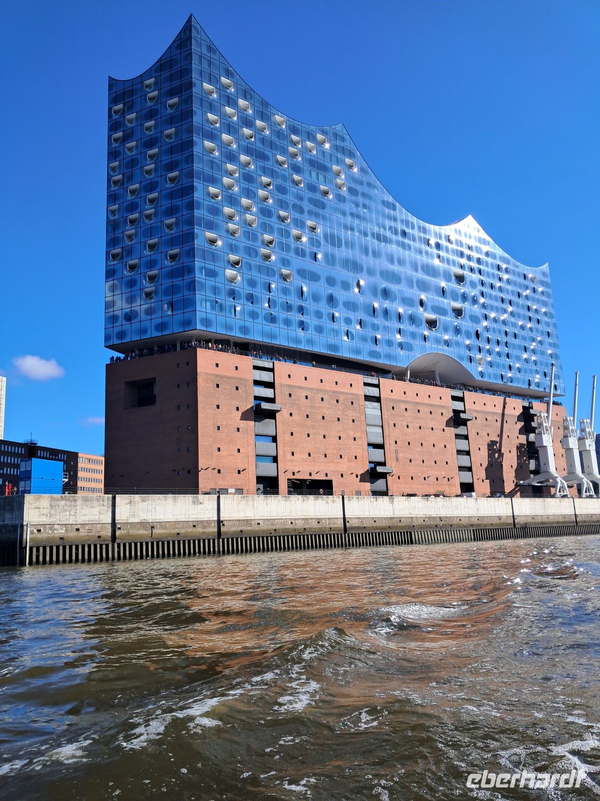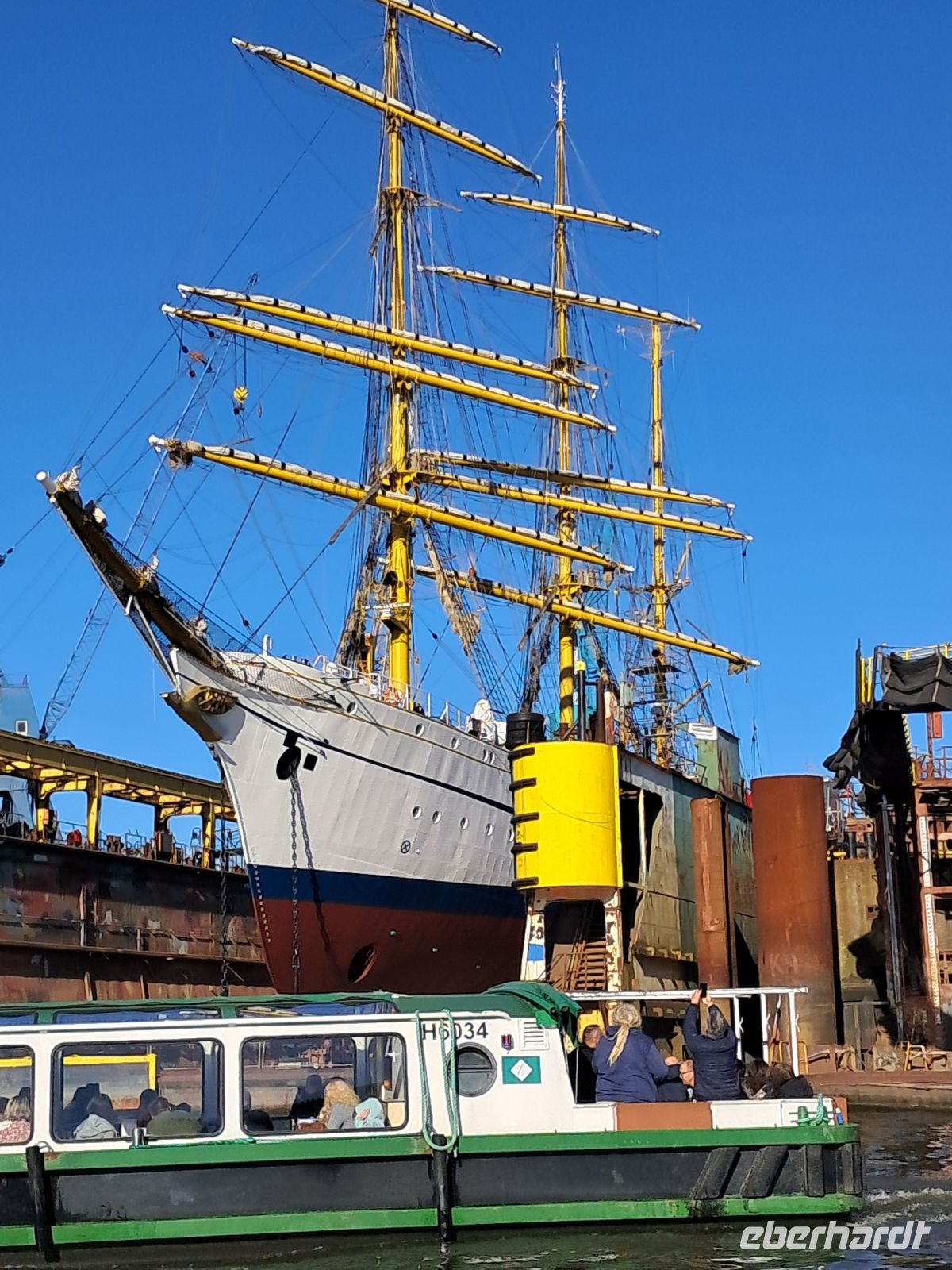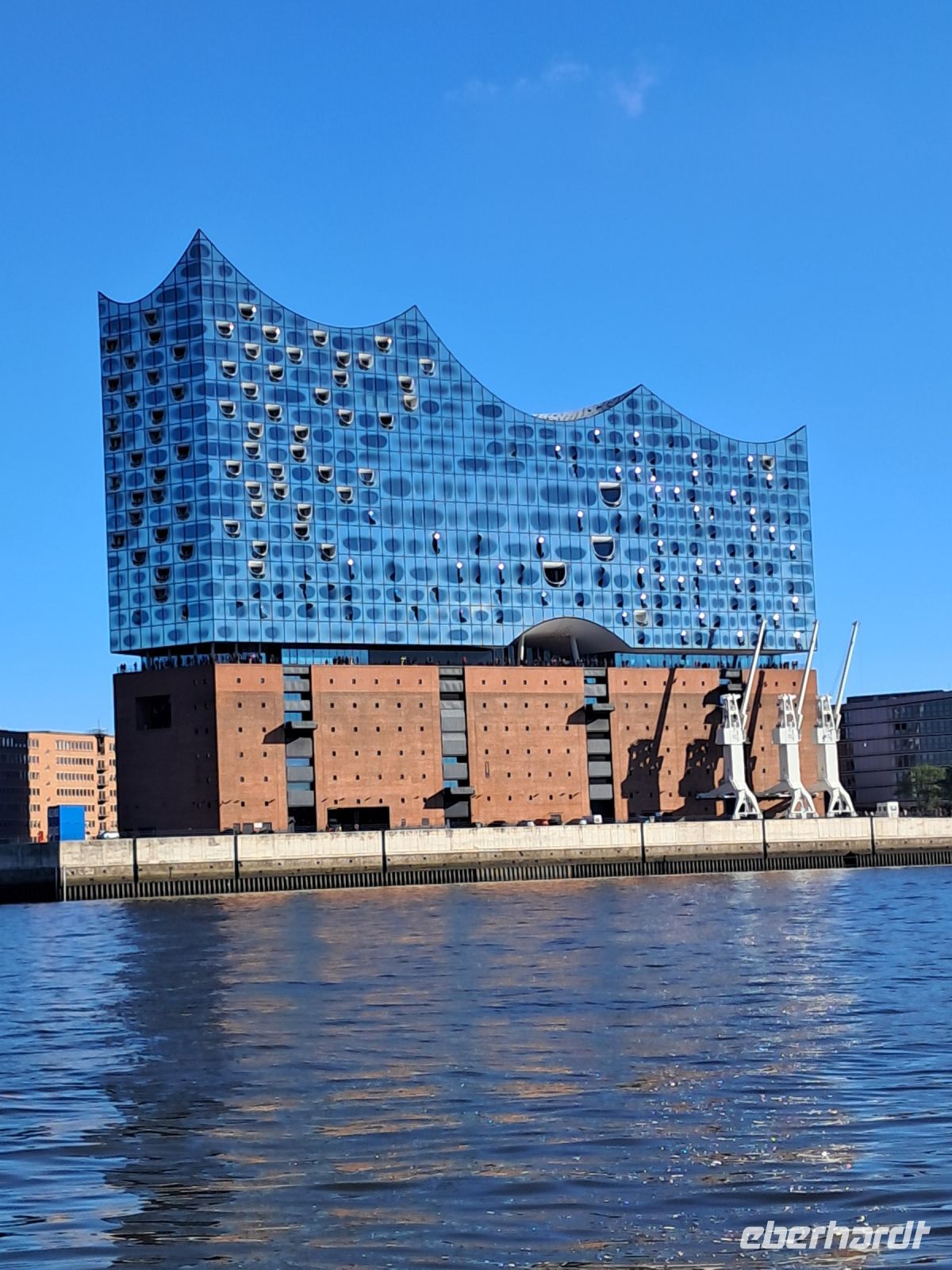 Ohne Hafenrundfahrt darf keine Reise nach Hamburg zu Ende gehen. Und wieder zeigte uns ein Hamburger Original nicht nur, welche Bedeutung dieser Hafen für die Stadt Hamburg hatte und hat, sondern seine Liebe zu diesem Hafen und seiner Arbeit. Und so lief die Barkasse mit uns aus, vorbei an einem Kreuzfahrtschiff, Jachten von Scheichs und Oligarchen, einem riesigen Containerschiff, das gerade entladen wurde und sogar die Gorch-Fock durften wir erblicken, dass Segelschulschiff der Deutschen Marine. Von dort steuerte der Kapitän dann die Speicherstadt ab und erklärte uns, wo noch heute Kaffee, Tee und Orientteppiche gelagert werden. Und zum Abschluss durfte sie noch einmal glänzen, vom Wasser aus, die schillernde Elbphilharmonie bei schönstem blauem Himmel.