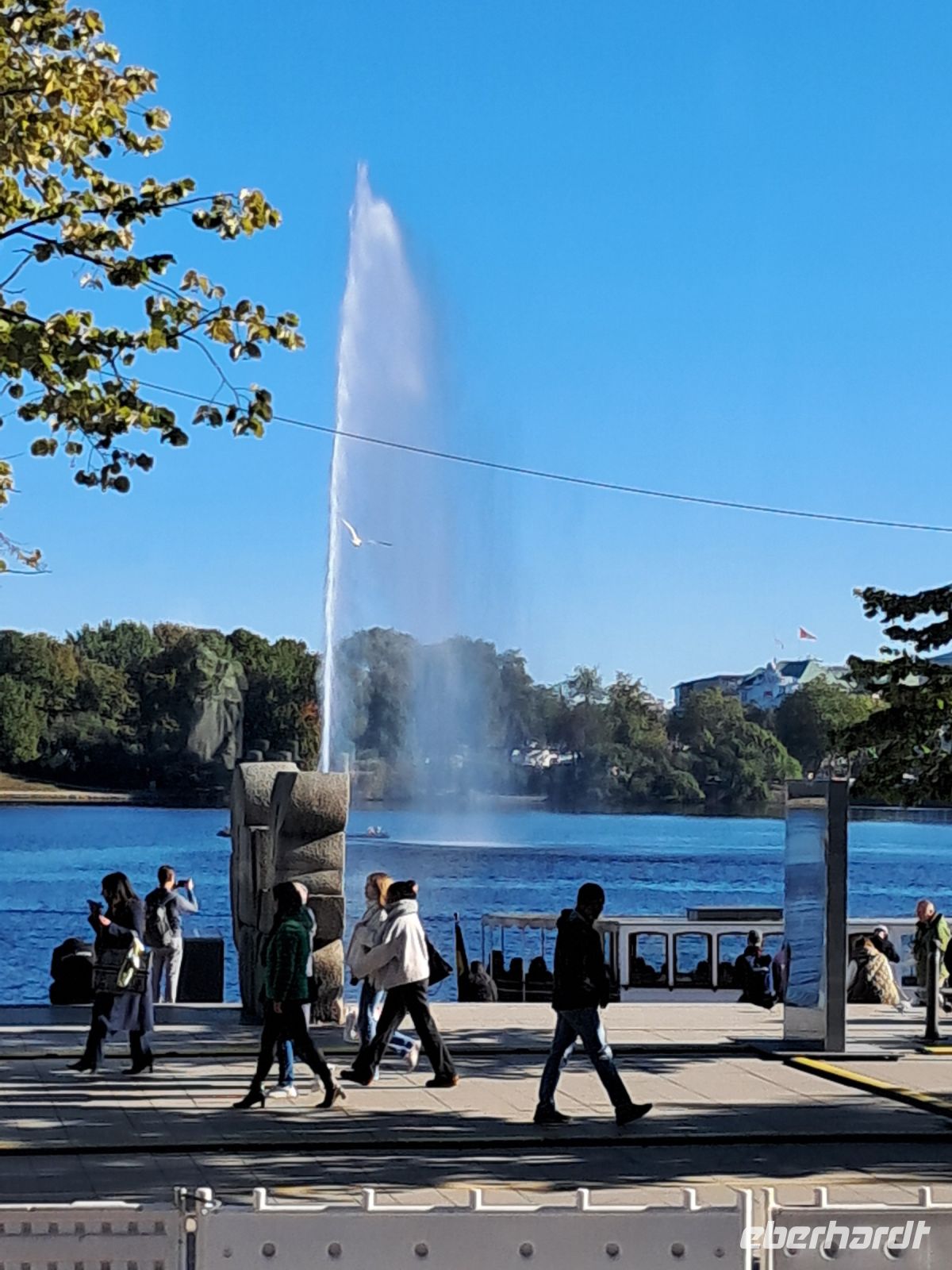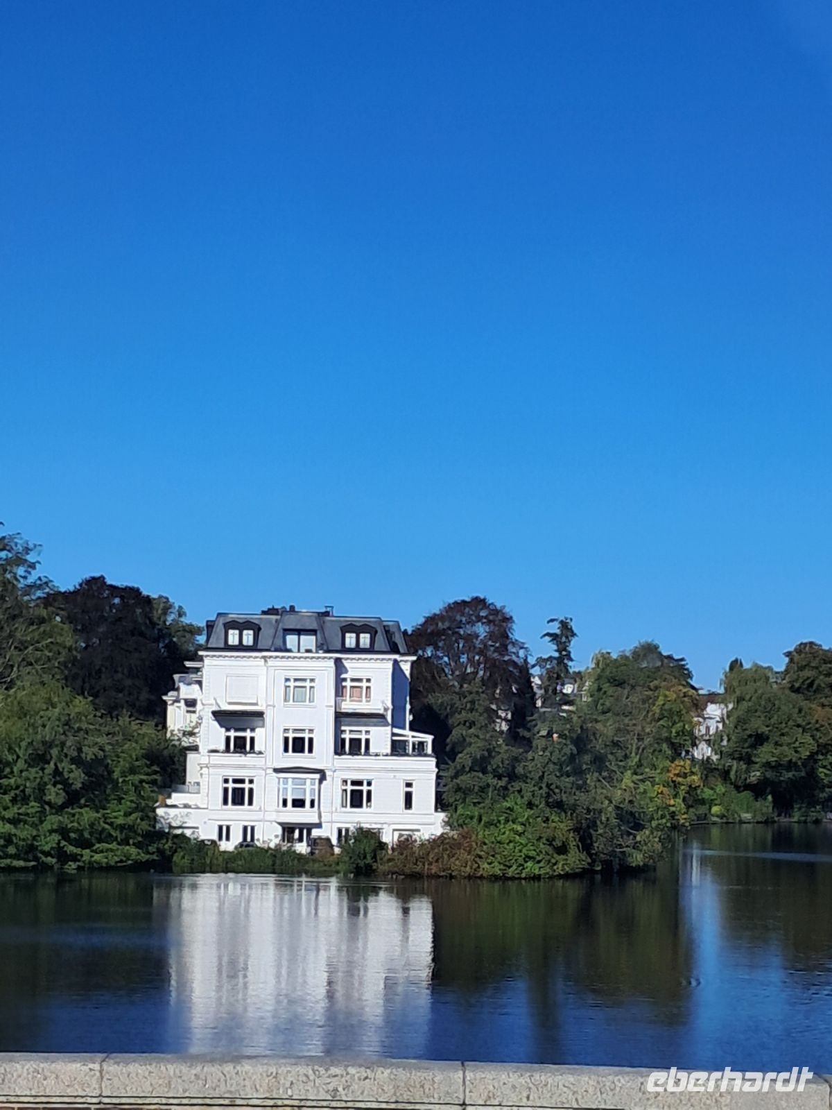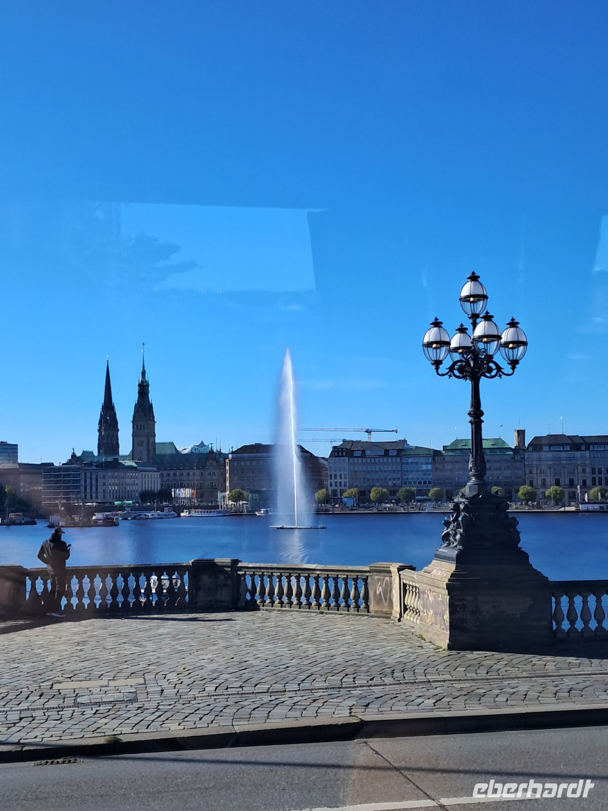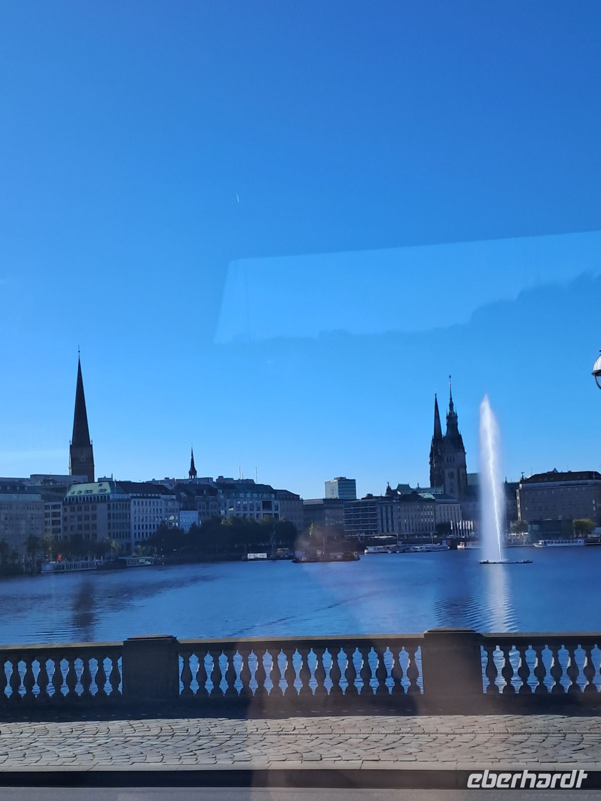 Heute sollte Ares in unser aller Leben treten. Wir holten ihn mit dem Bus an den Landungsbrücken ab und los ging es an der Hauptkirche Sankt Michaelis, von den Hamburgerinnen und Hamburgern liebevoll "Michel" genannt. Dort hielten wir kurz inne an den Gedenktafeln der wohl berühmtesten kürzlich verstorbenen Hamburgern, dem ehemaligen Bundeskanzler Helmut Schmidt und dem Schauspieler Jan Fedder. Weiter fuhr der Bus über den Neuen Wall und eine der ältesten Brücken Hamburgs in Richtung Binnenalster, wo altehrwürdige Hamburger Reedereien, Kaufhäuser und Hotels vom alten und neuen Reichtum der Stadt künden. Nicht minder gut betucht müssen die Bewohnerinnen und Bewohner der Stadthäuser, Villen und schicken Wohnungen an der Außenalster sein. Segeln, Rudern, Schwimmen, dazu wird die Außenalster auch gebraucht und manchmal kann es dort auf dem Wasser durchaus eng werden.